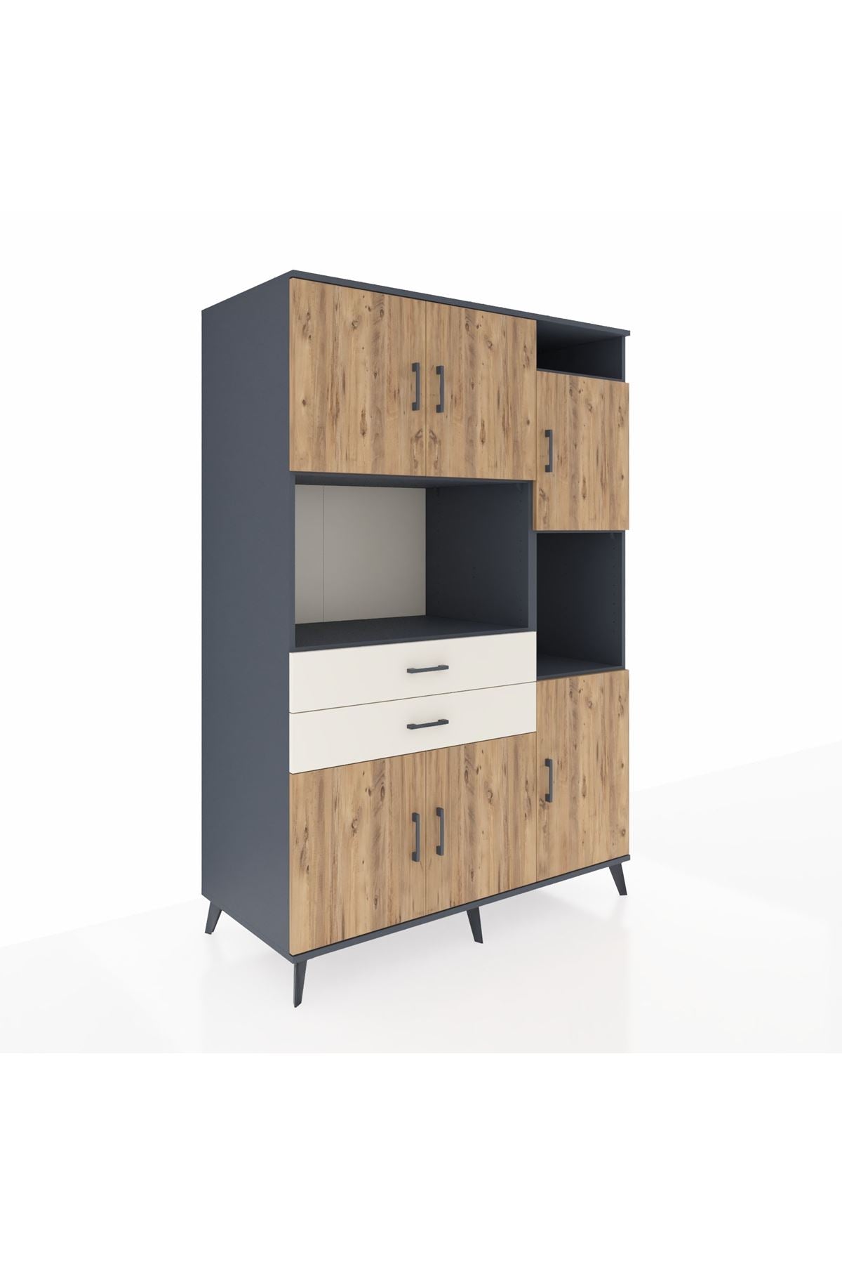 Zamanın zarafetini yansıtan Artemis Koleksiyonu’nun “Kronos – Zaman” serisiyle, alan yönetiminde yeni bir çağa adım atın! 132x59x195 cm ebatlarındaki bu çok amaçlı dolap; antrasit, atlas çam ve aytaşı renk kombinasyonu sayesinde yaşam alanlarınıza modern ve doğal bir dokunuş katar.