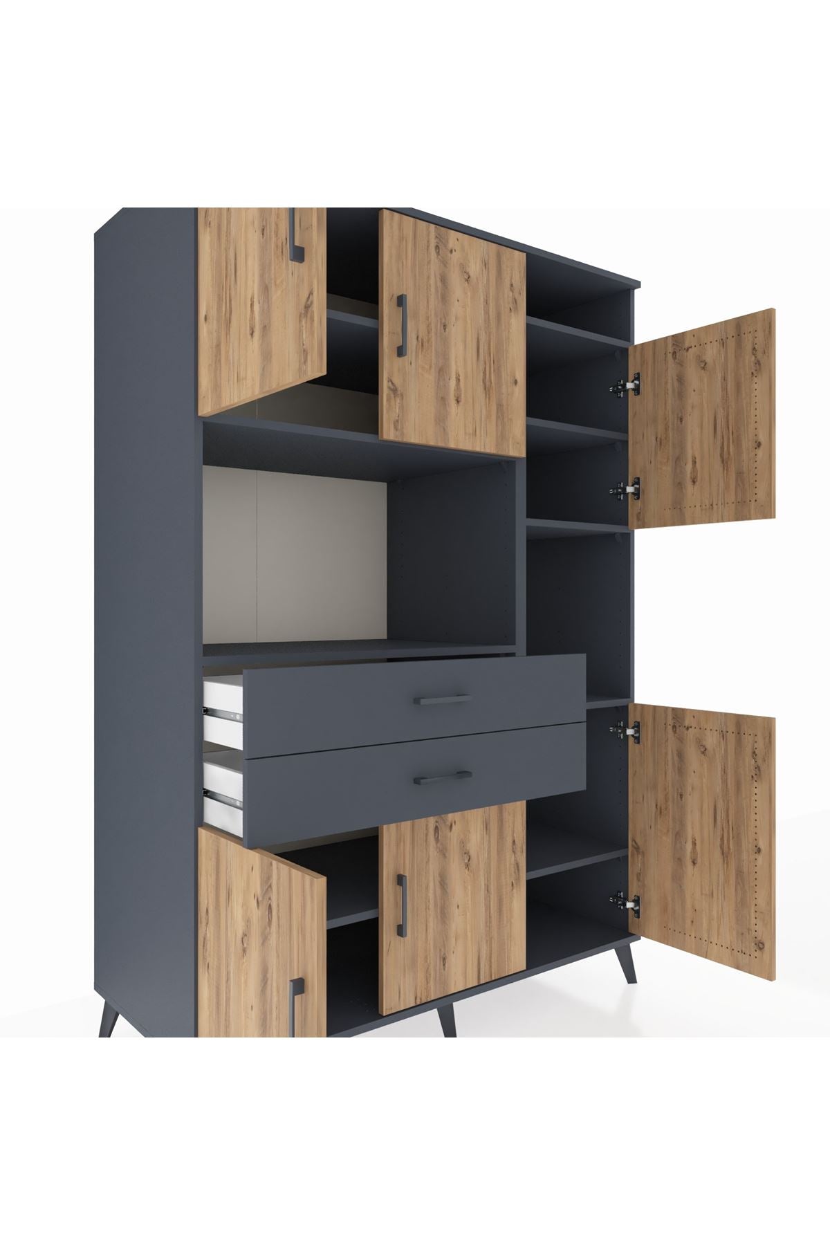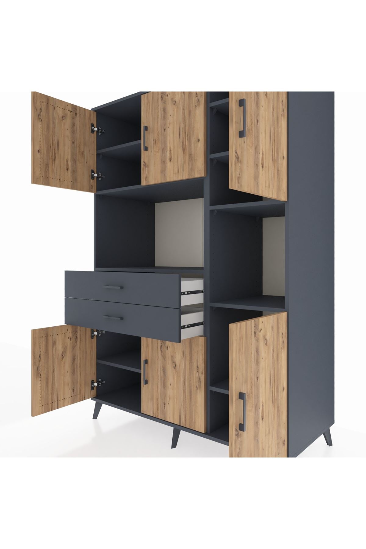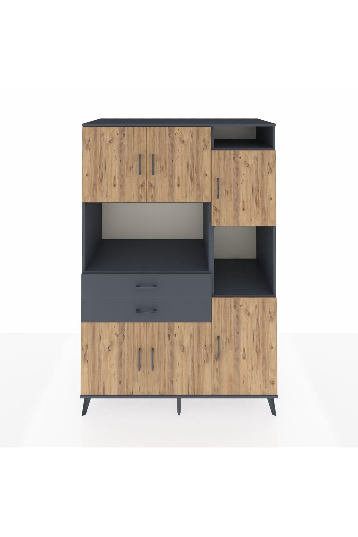 Kronos Dolap 9 Raflı 2 Çekmeceli 6 Kapaklı 132x59x195 Antrasit-Çam/Antrasit