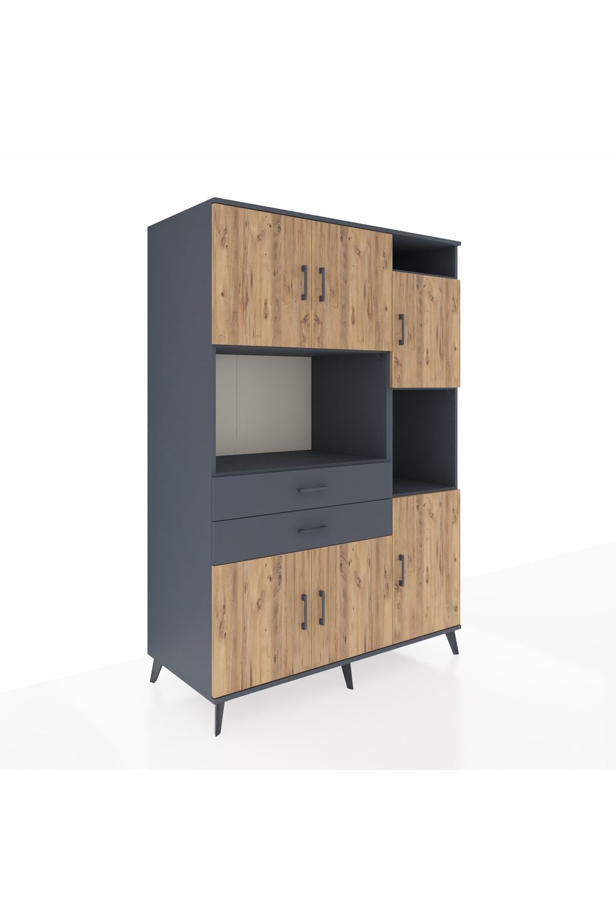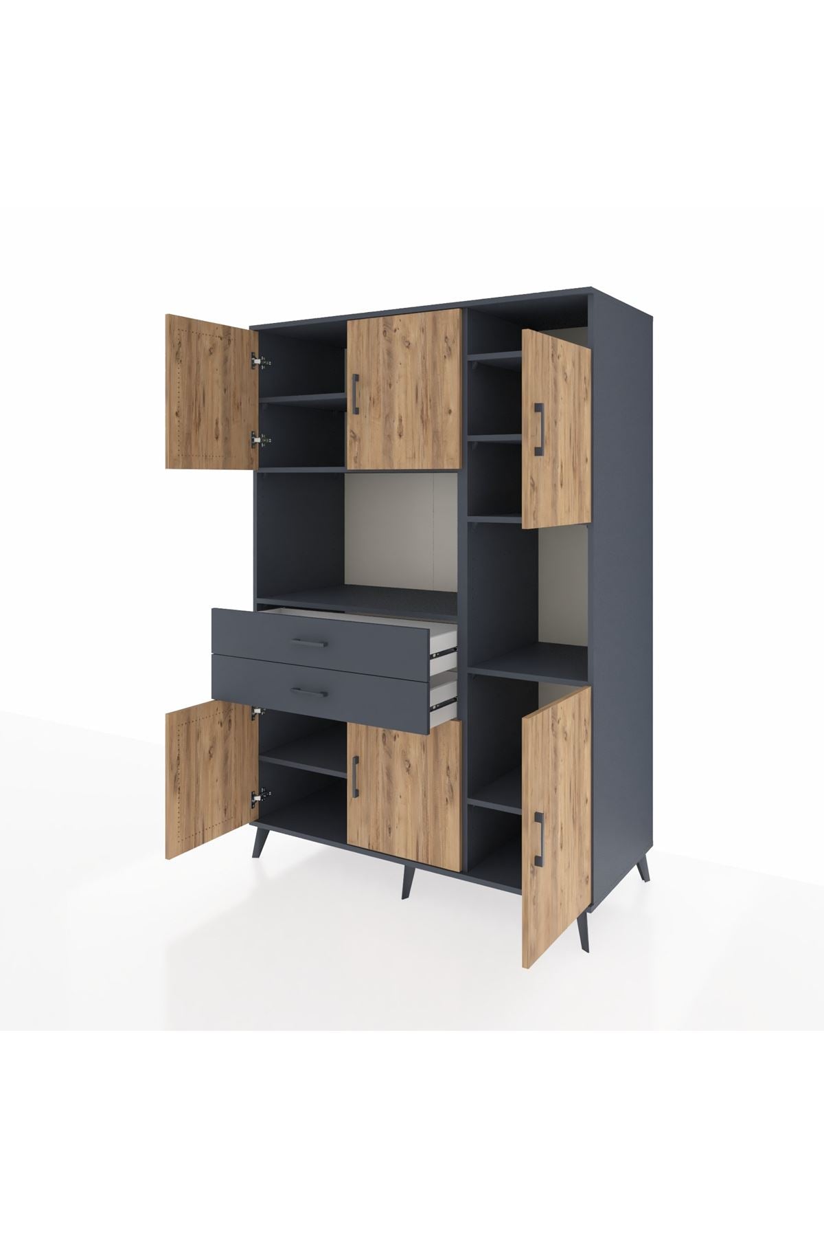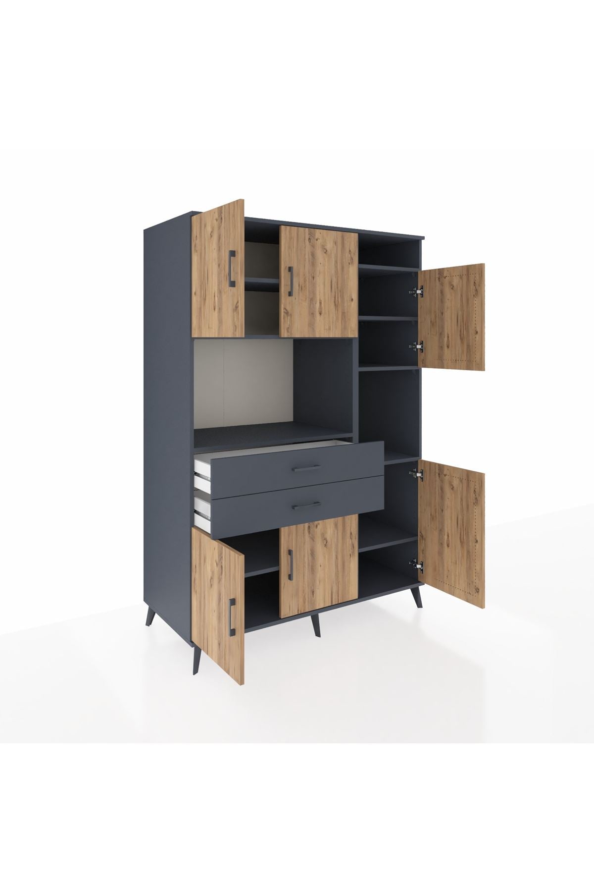 Kronos Dolap 9 Raflı 2 Çekmeceli 6 Kapaklı 132x59x195 Antrasit-Çam/Antrasit