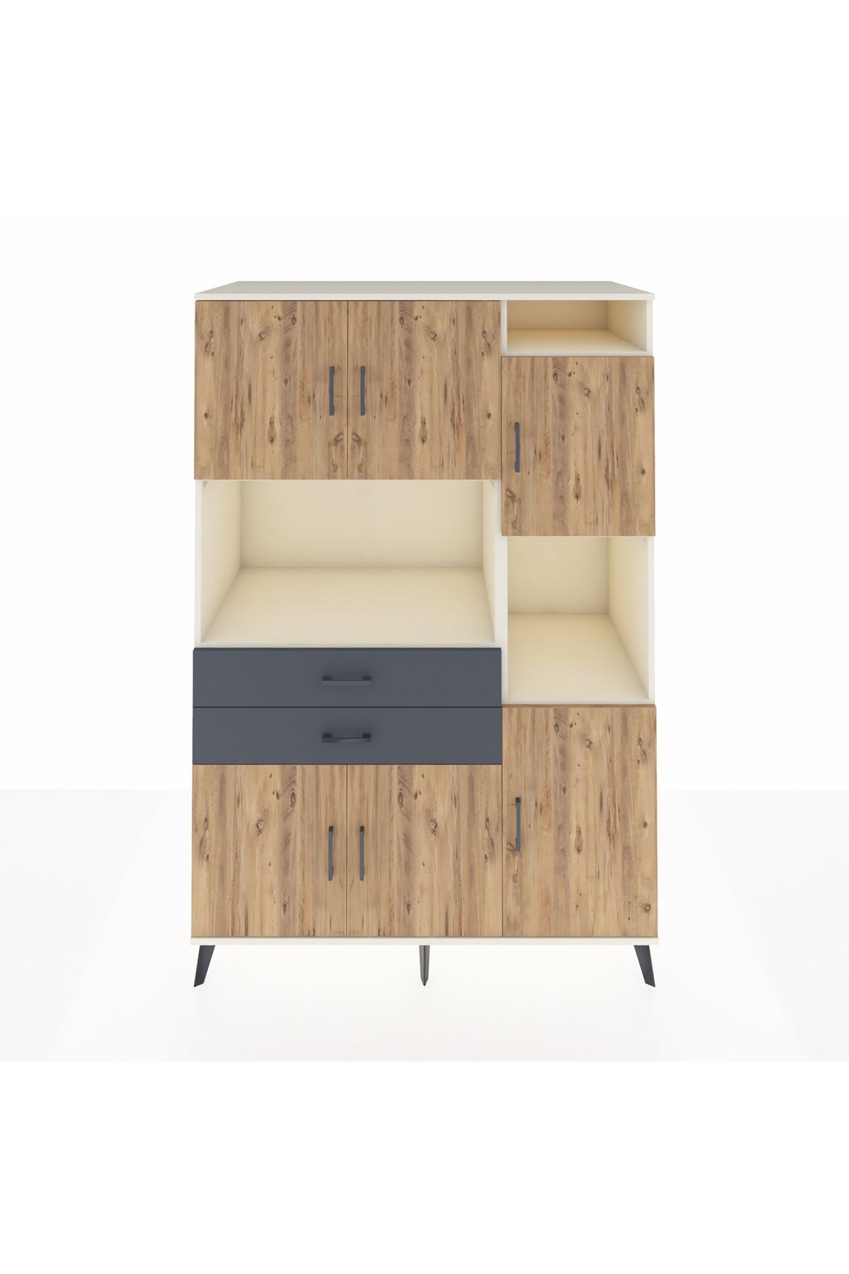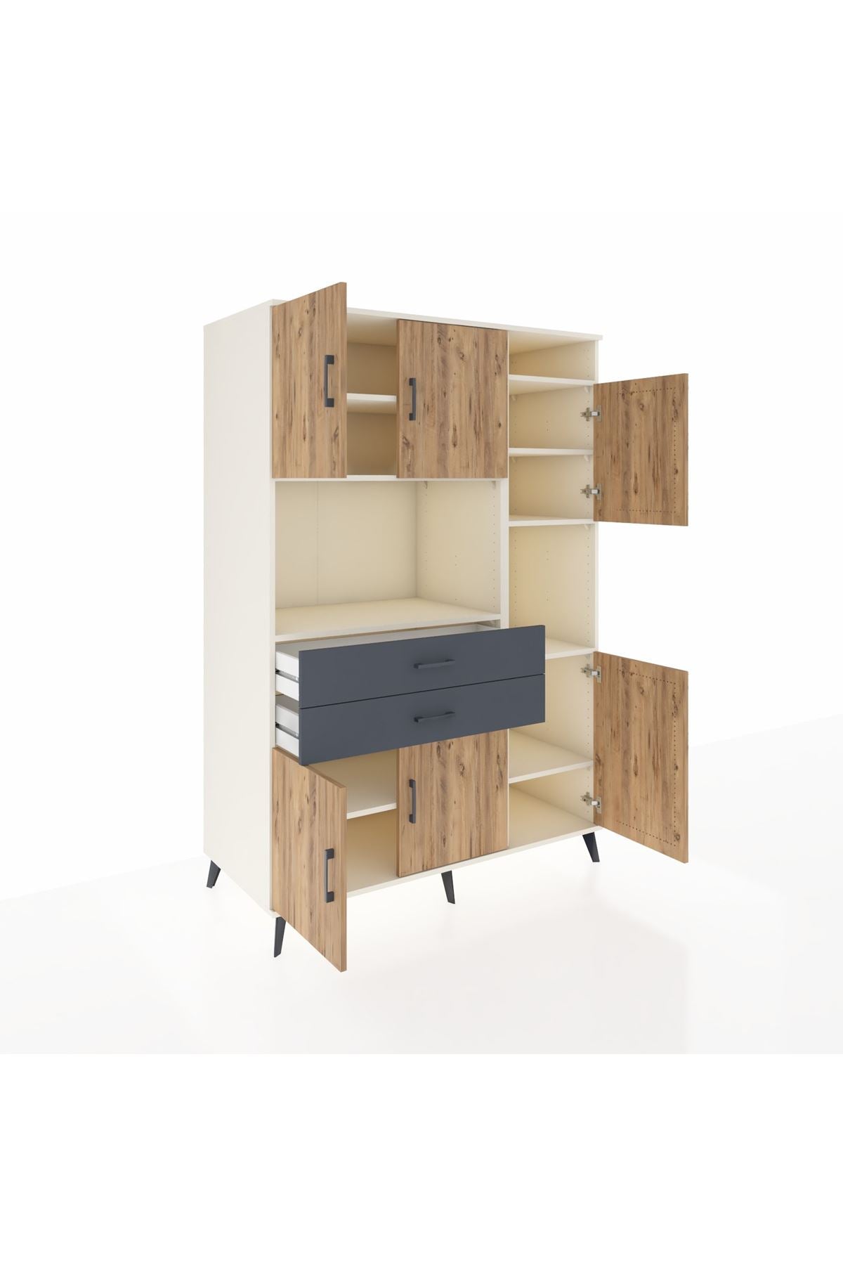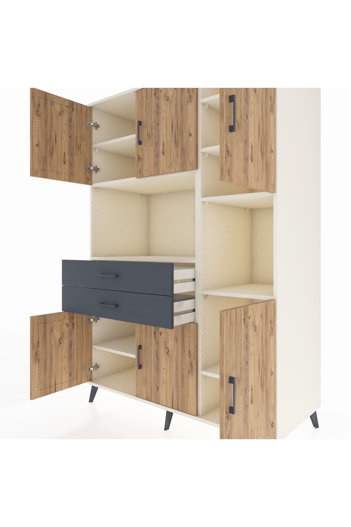 Kronos Dolap 9 Raflı 2 Çekmeceli 6 Kapaklı 132x59x195 Aytaşı-Çam/Antrasit