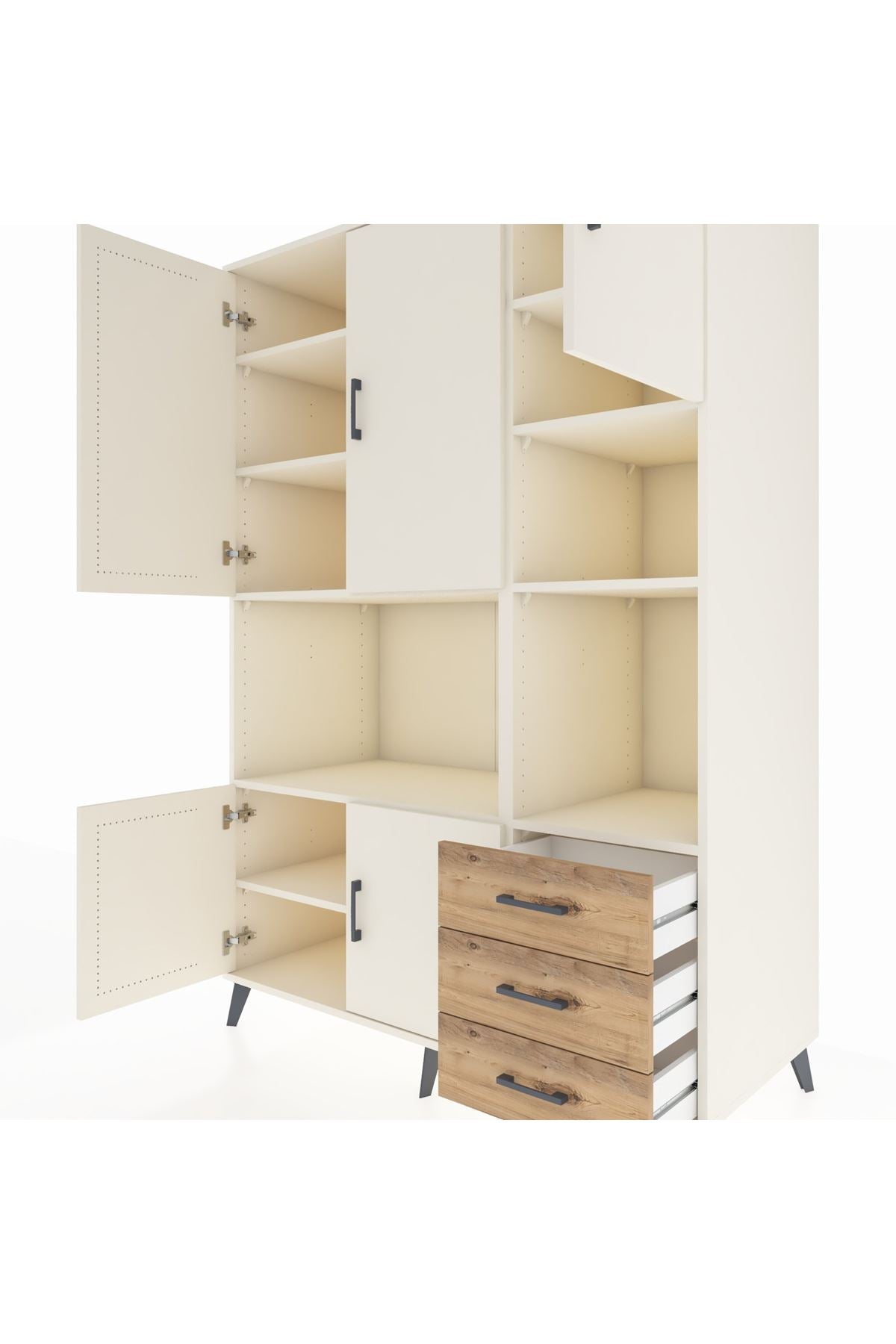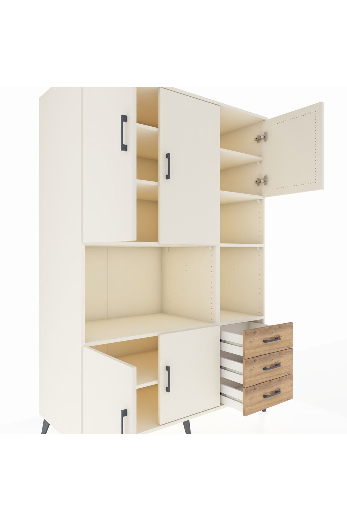 • 🗄️ 9 raflı, 3 çekmeceli, 5 kapaklı