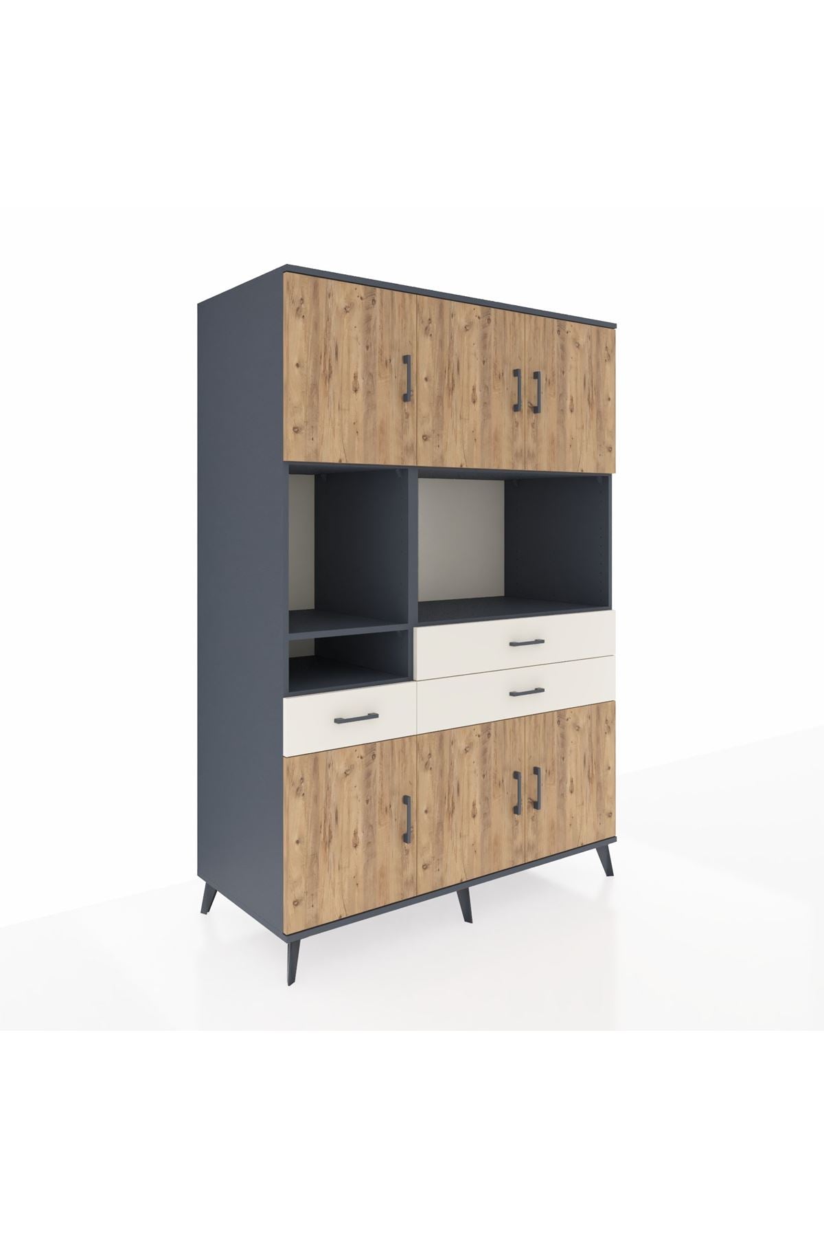 Dienni Mobilya’nın Artemis Koleksiyonu’nun ‘Kronos – Zaman’ serisinden ilham alınarak tasarlanan bu model, zamana meydan okuyan modern çizgileriyle yaşam alanınıza değer katıyor. Evinizin her köşesine uyum sağlayan 9 raf, 3 çekmece ve 6 kapaklı yapısı ile düzeni kolayca sağlayabilirsiniz. Antrasit-Çam ve Aytaşı renk kombinasyonu, dekorasyonunuza güçlü ve sıcak bir dokunuş katar.