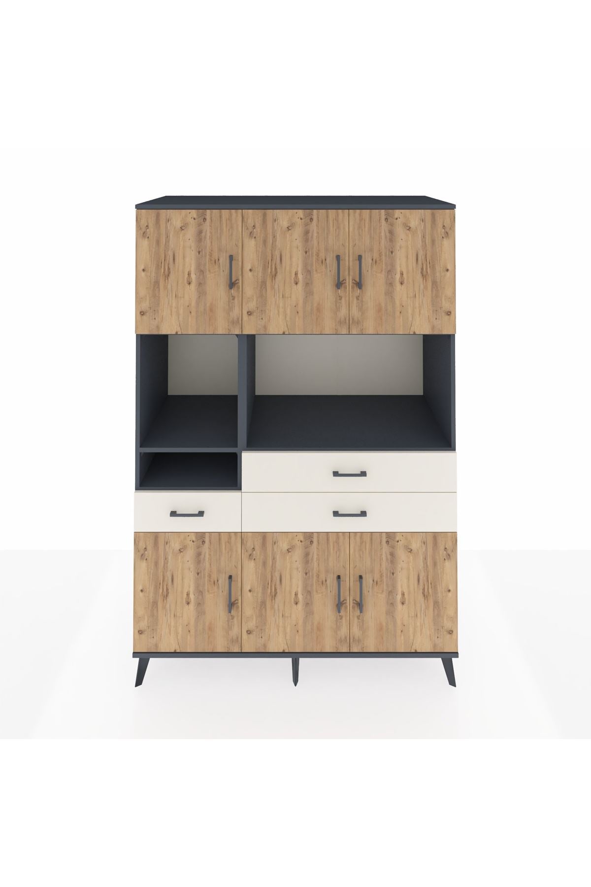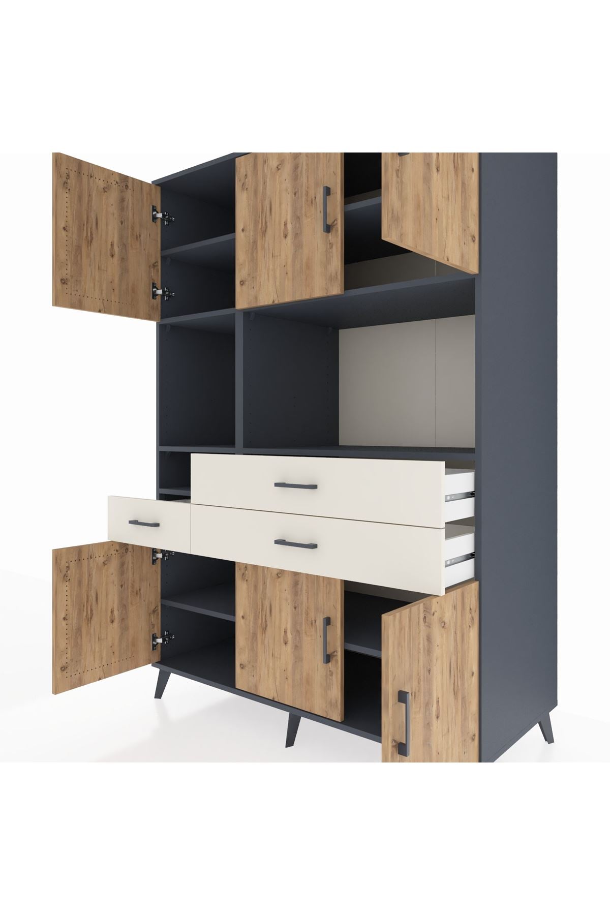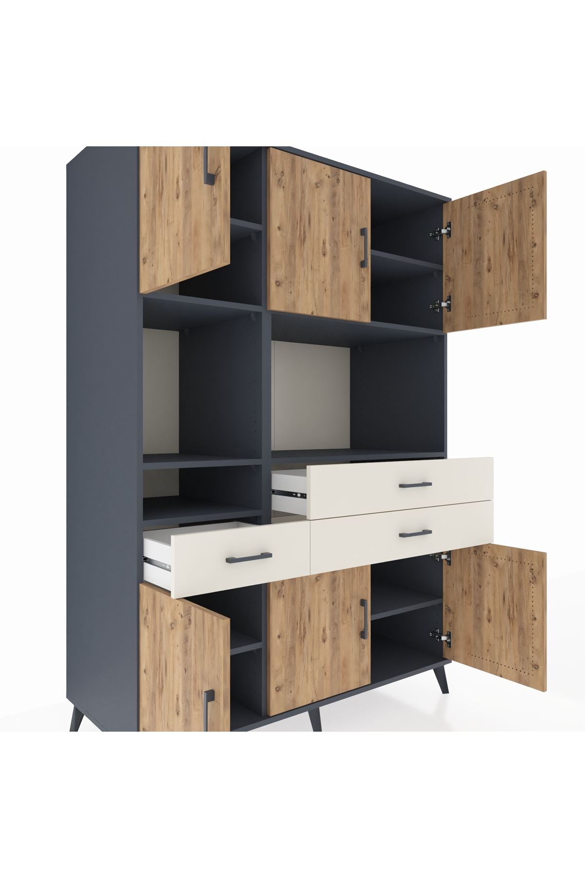 Kronos Dolap 9 Raflı 3 Çekmeceli 6 Kapaklı 132x59x195 Antrasit-Çam/Aytaşı