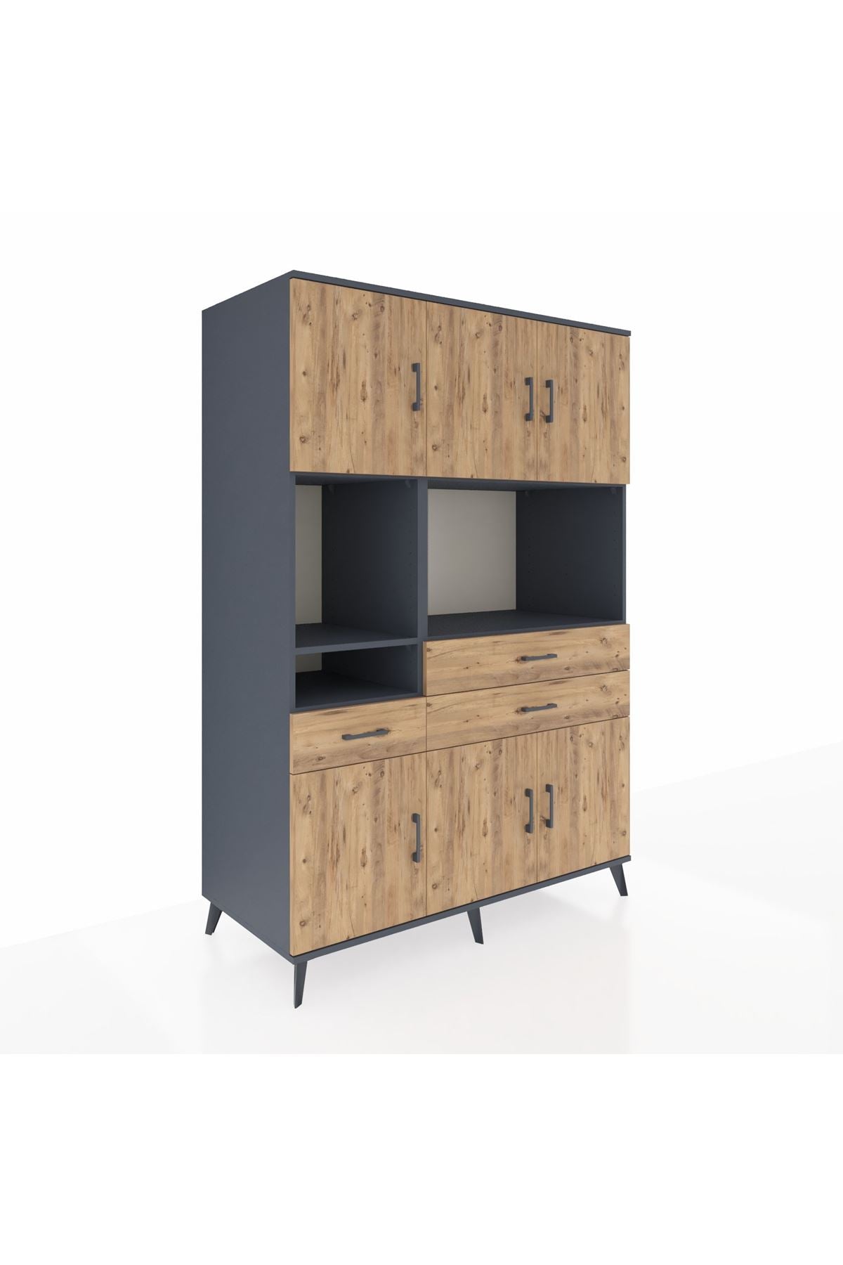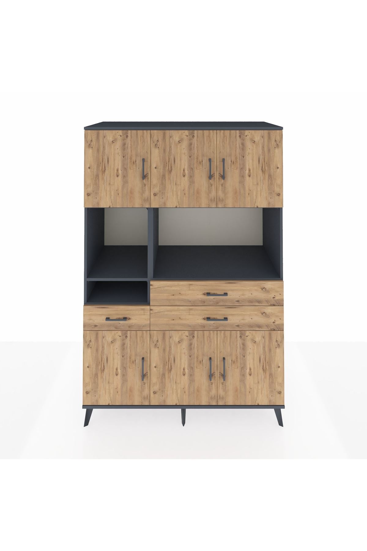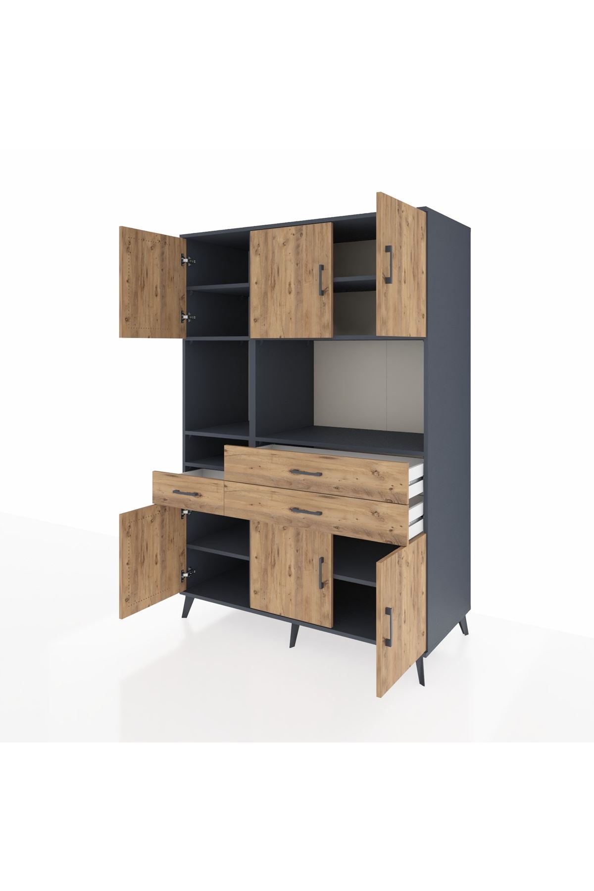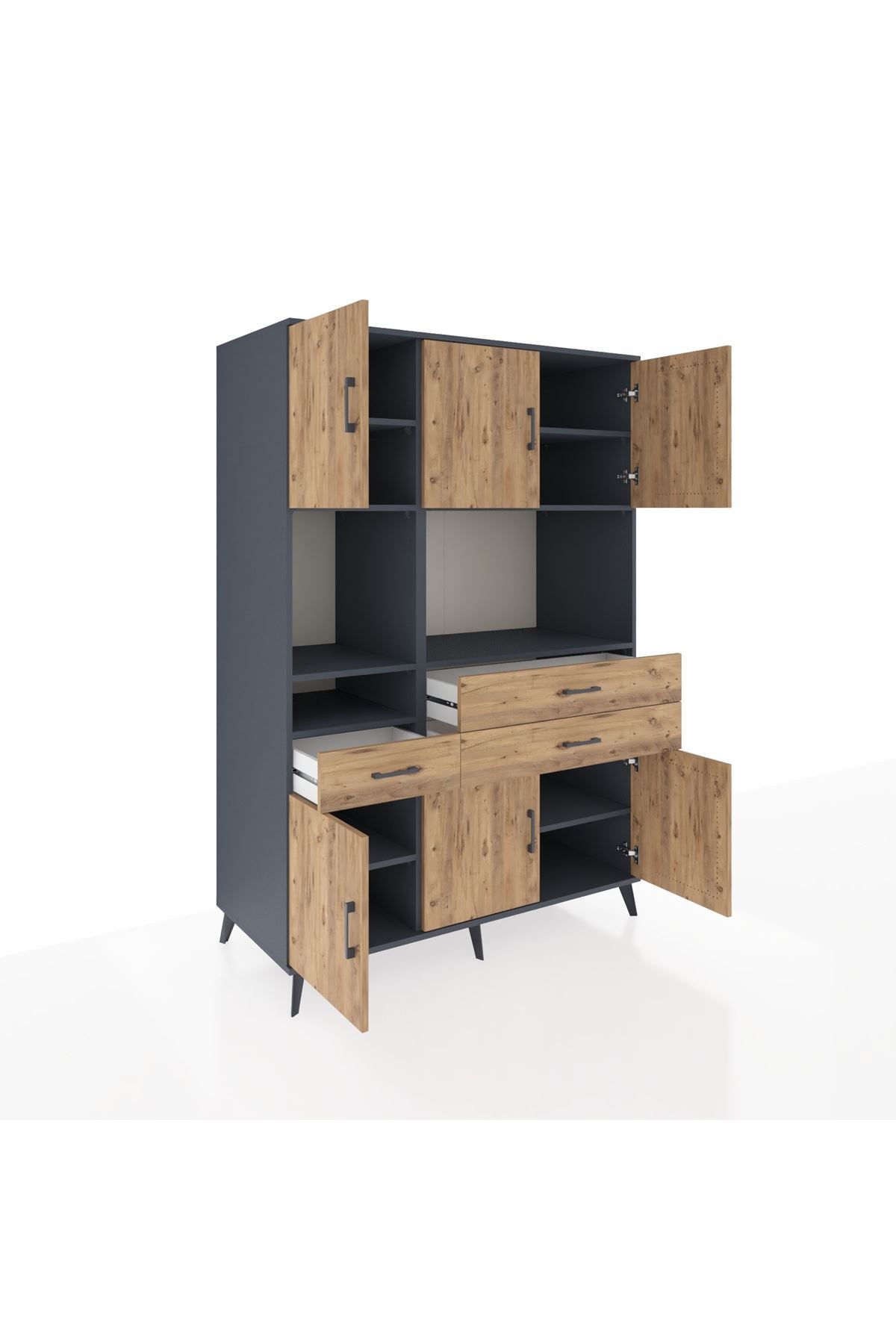 Kronos Dolap 9 Raflı 3 Çekmeceli 6 Kapaklı 132x59x195 Antrasit-Çam/Çam