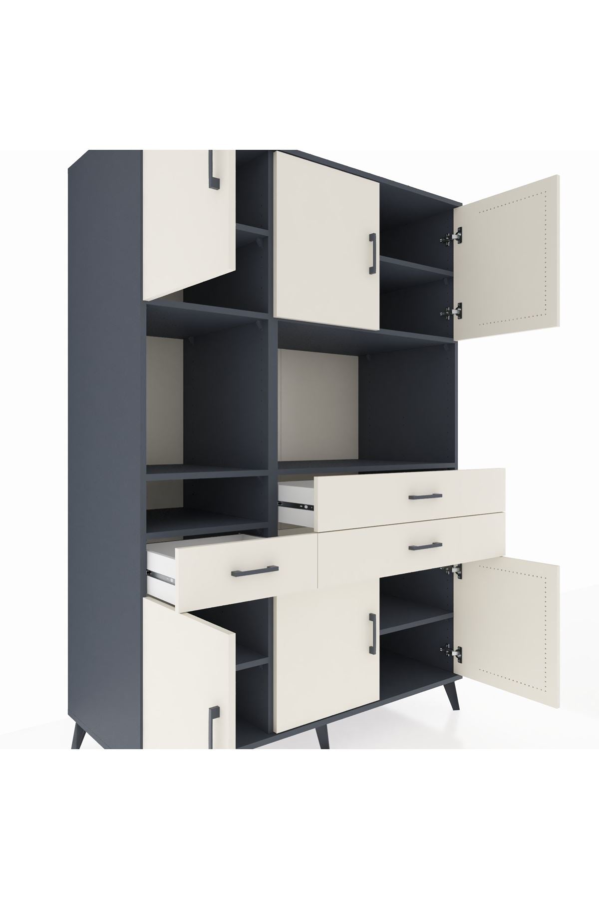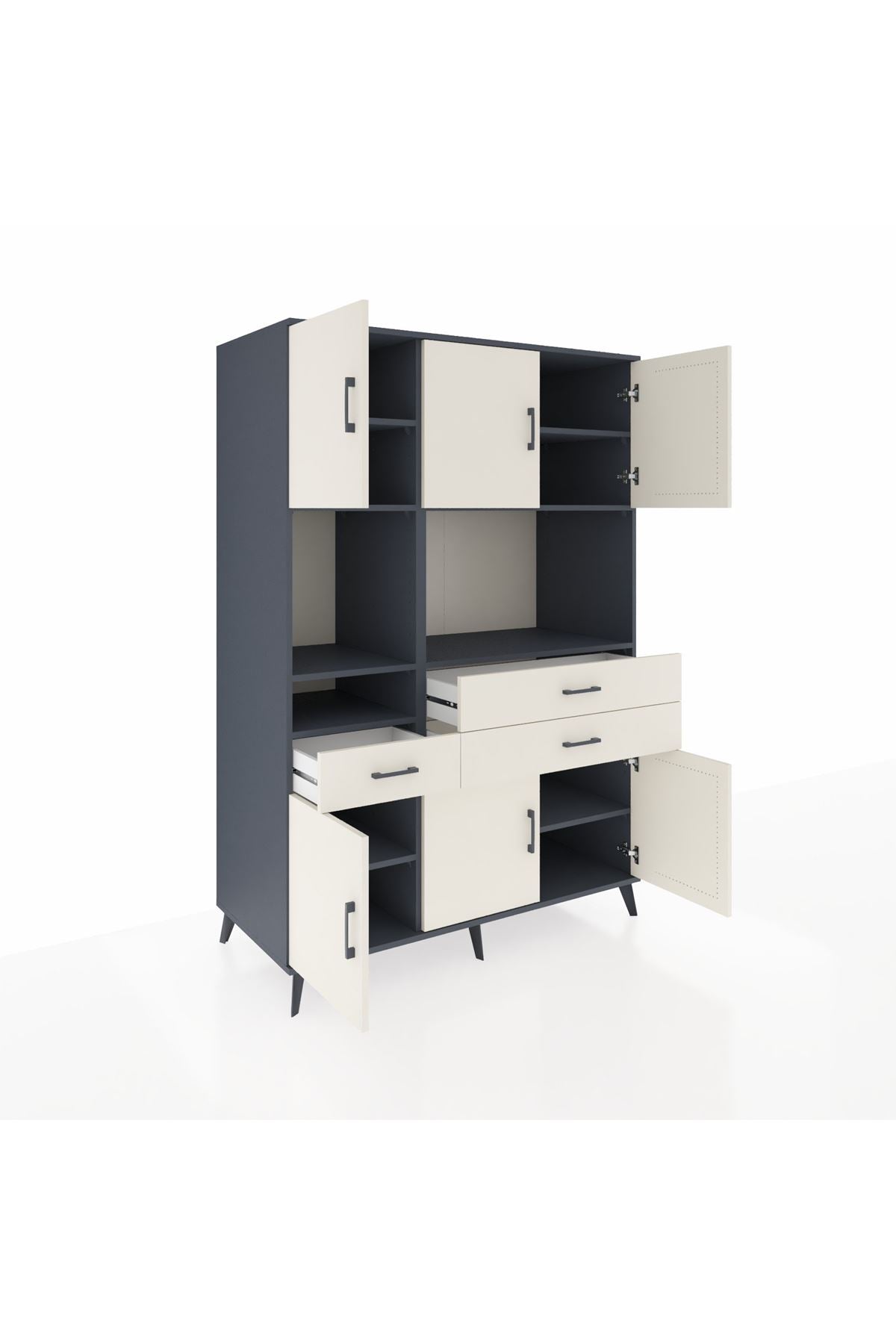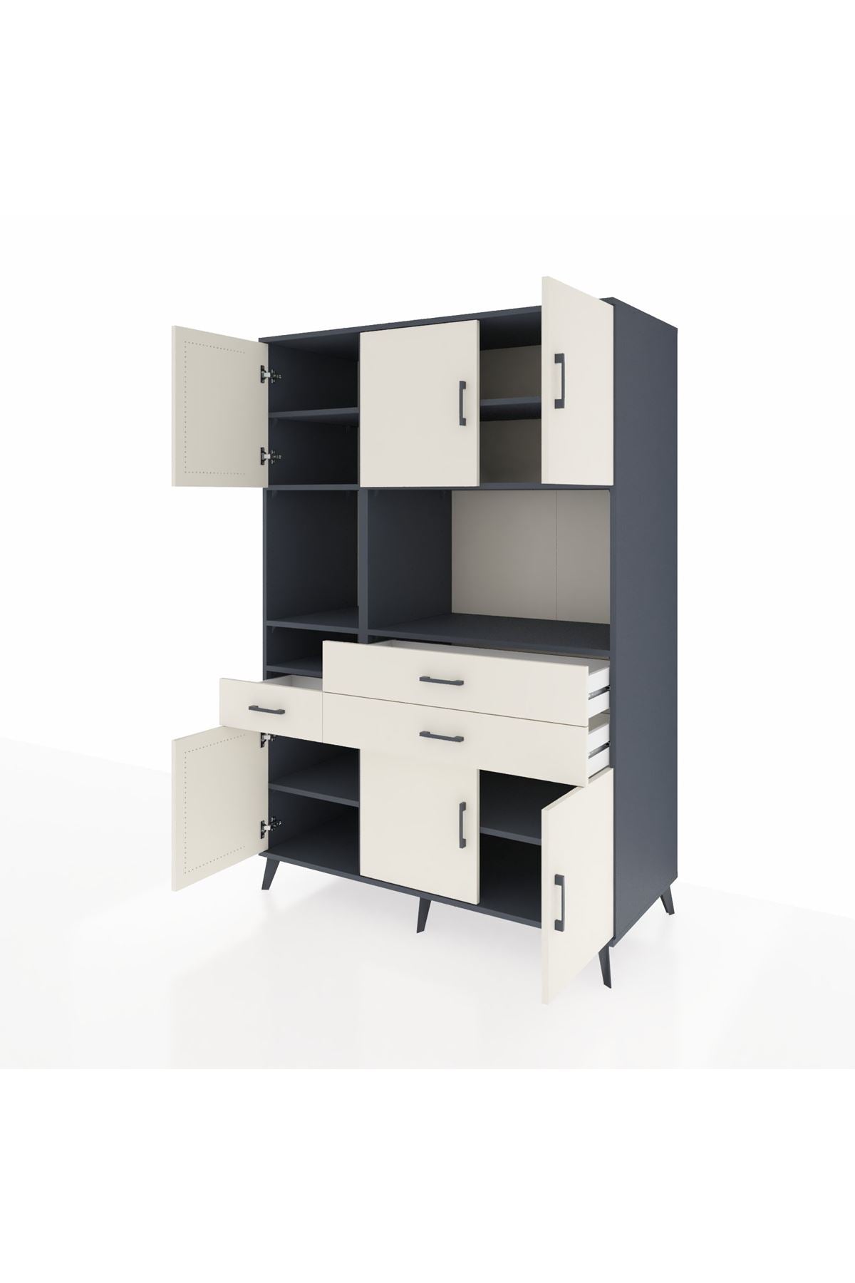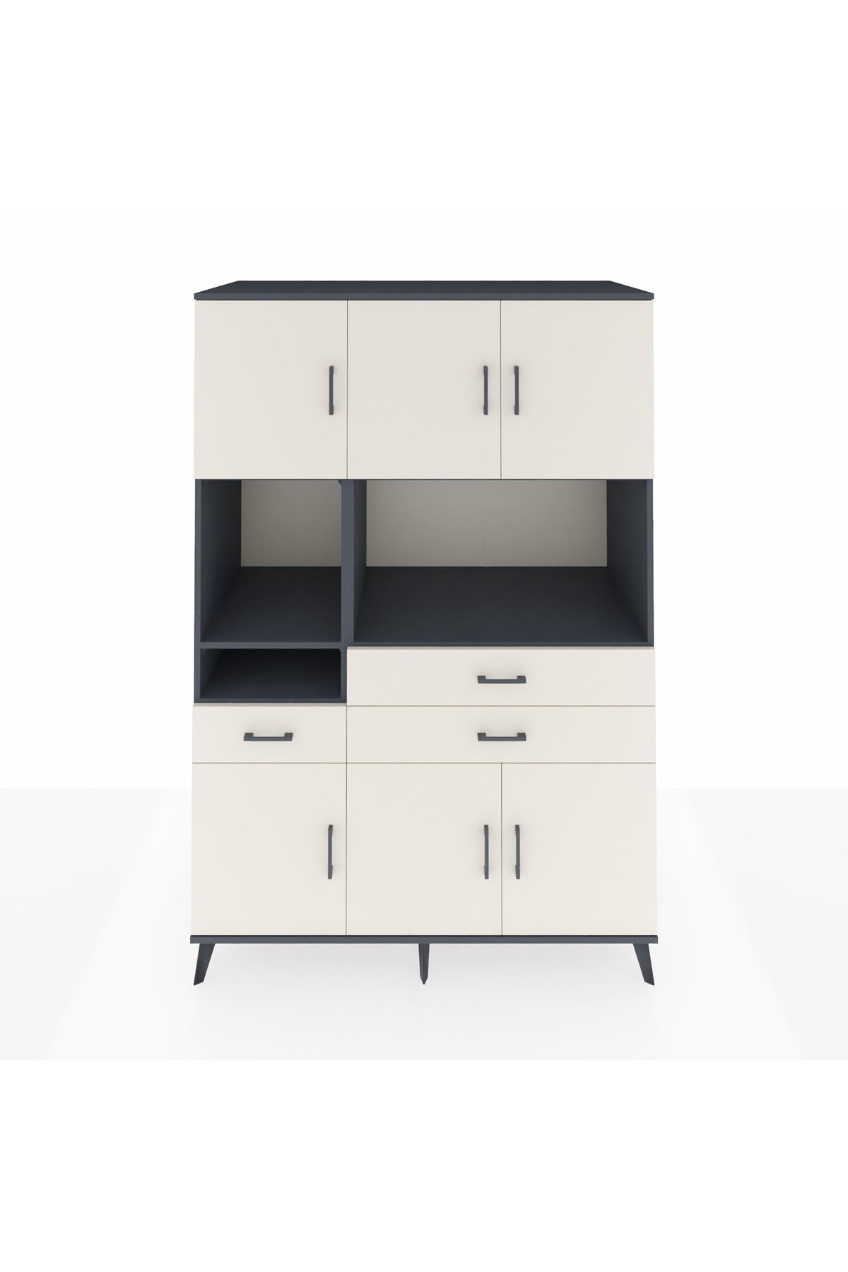 🌟 Kronos Dolap 9 Raflı 3 Çekmeceli 6 Kapaklı 132x59x195 Antrasit-Aytaşı/Aytaşı