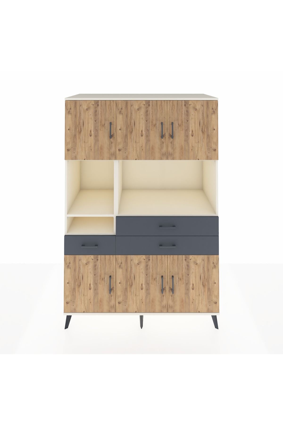 Kronos Dolap 9 Raflı 3 Çekmeceli 6 Kapaklı 132x59x195 Aytaşı-Çam/Antrasit