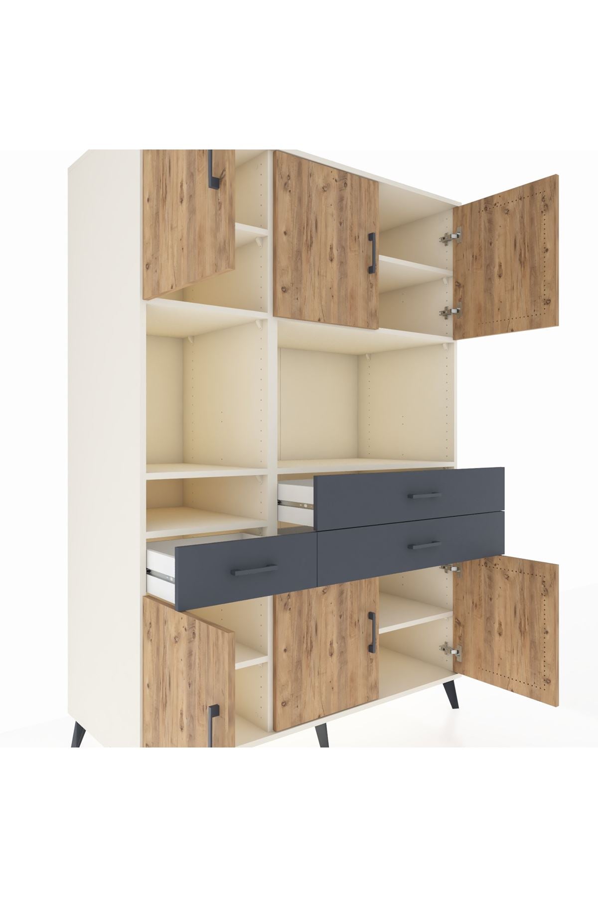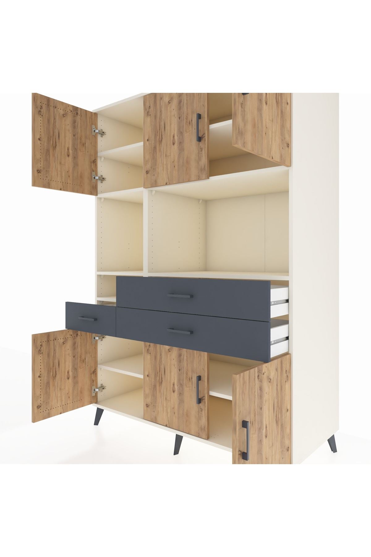 🌞 Kronos Dolap 9 Raflı 3 Çekmeceli 6 Kapaklı 132x59x195 Aytaşı-Çam/Antrasit