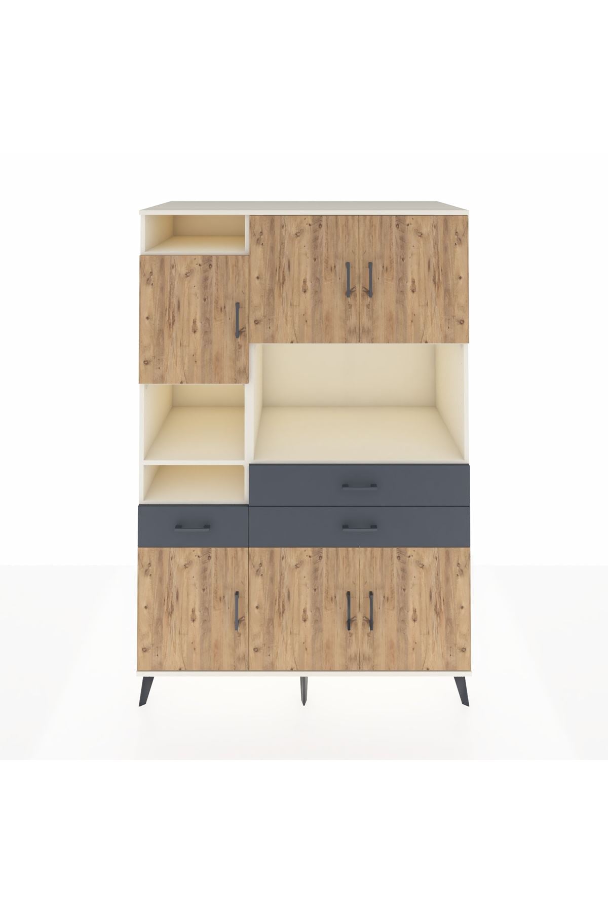 Kronos Dolap 9 Raflı 3 Çekmeceli 6 Kapaklı 132x59x195 Aytaşı-Çam/Antrasit
