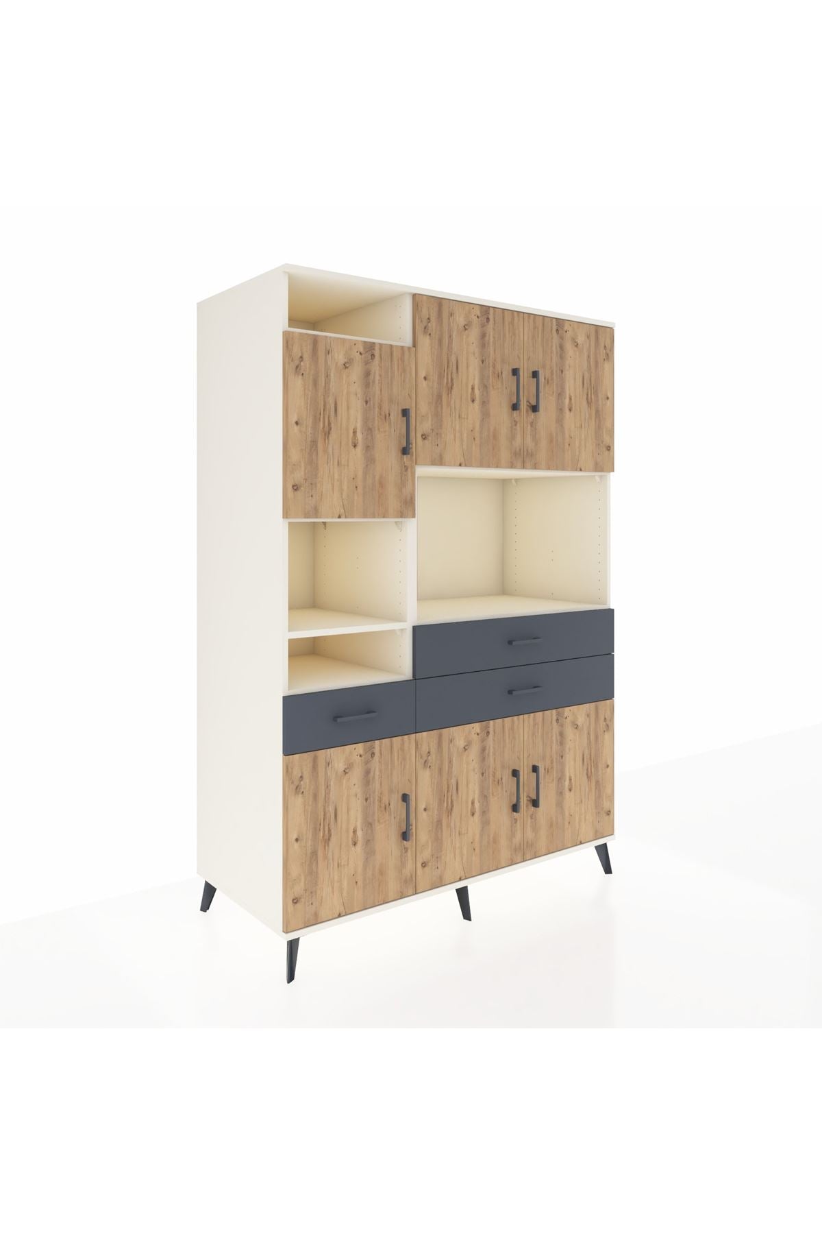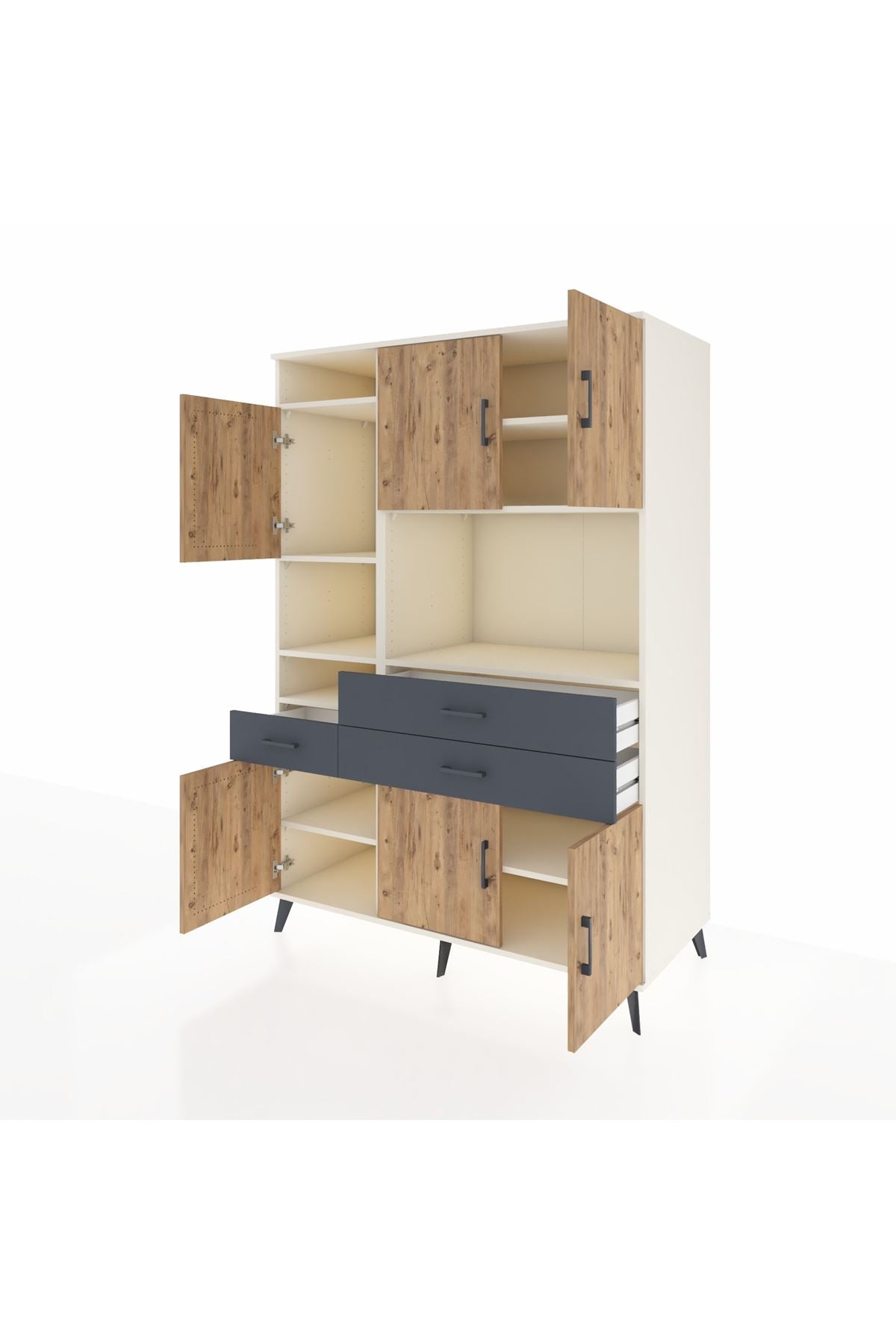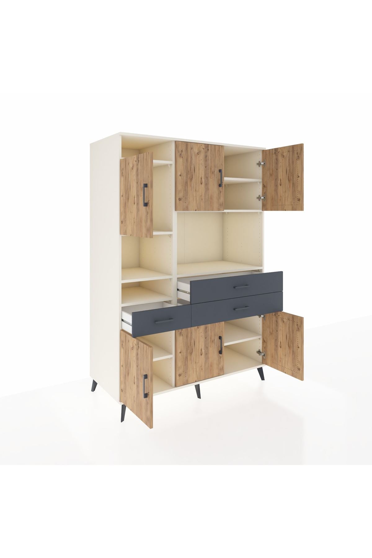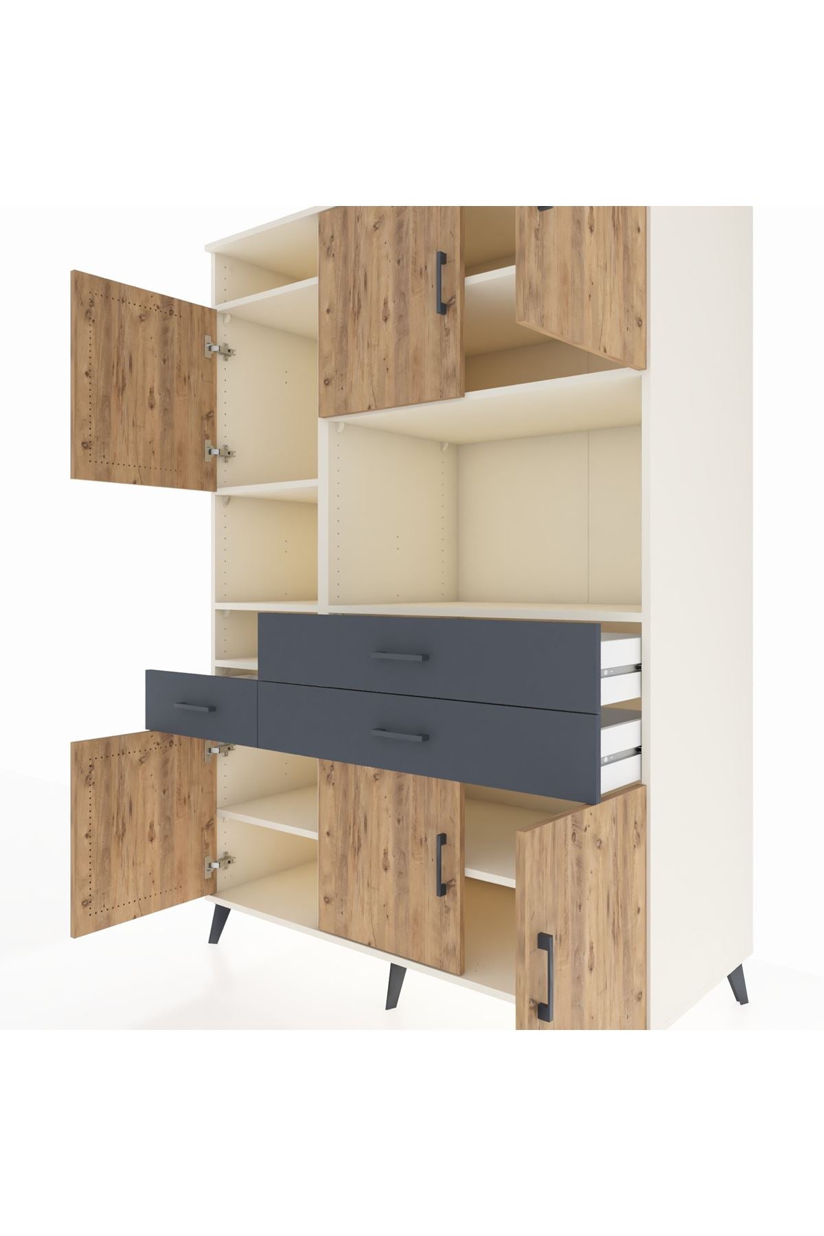 🕰️ Kronos Dolap 9 Raflı 3 Çekmeceli 6 Kapaklı 132x59x195 Aytaşı-Çam/Antrasit