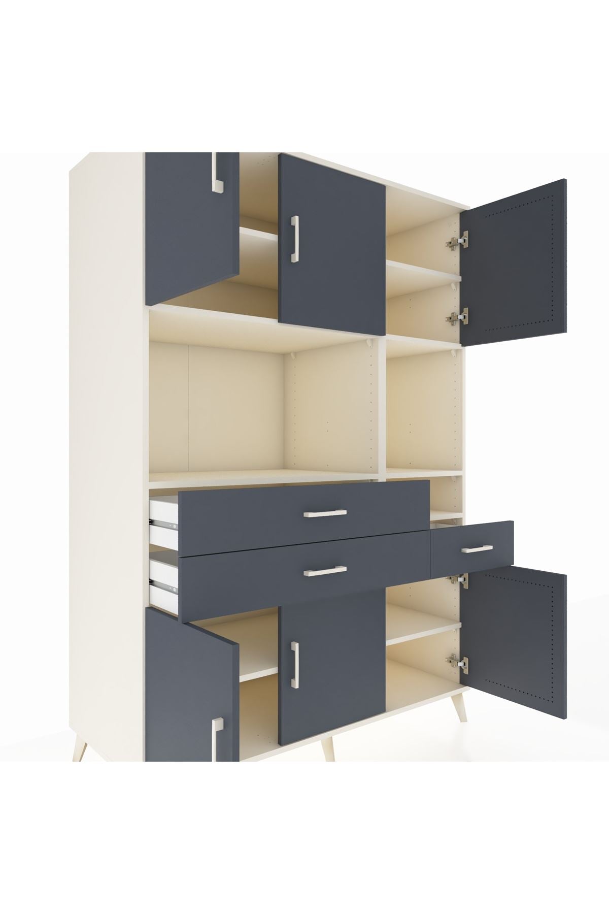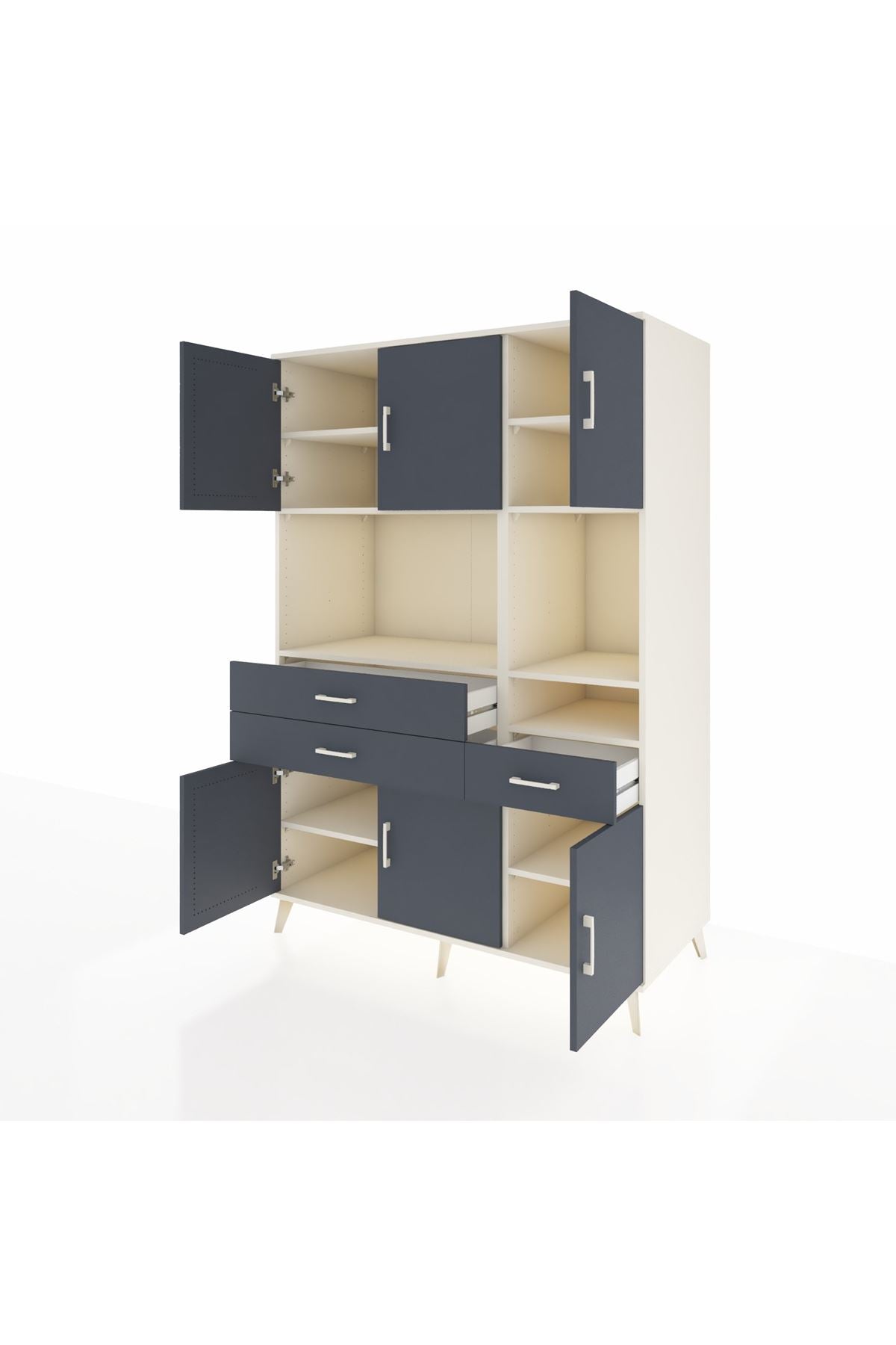 Kronos Dolap 9 Raflı 3 Çekmeceli 6 Kapaklı 132x59x195 Aytaşı-Antrasit/Antrasit