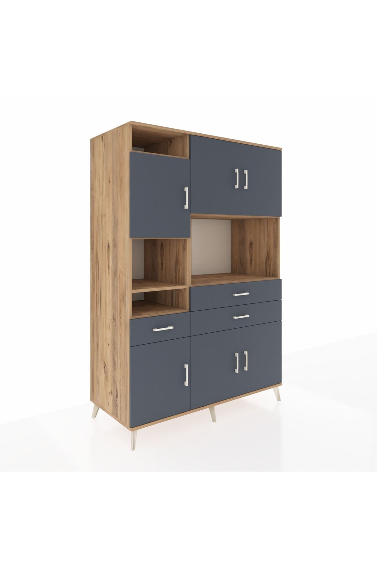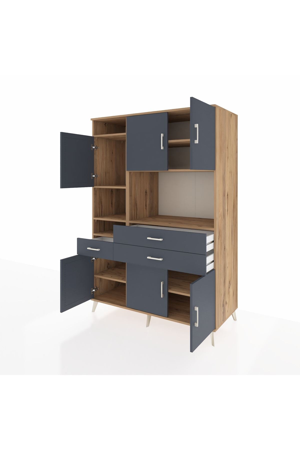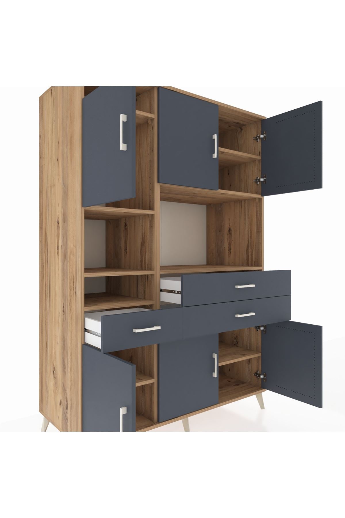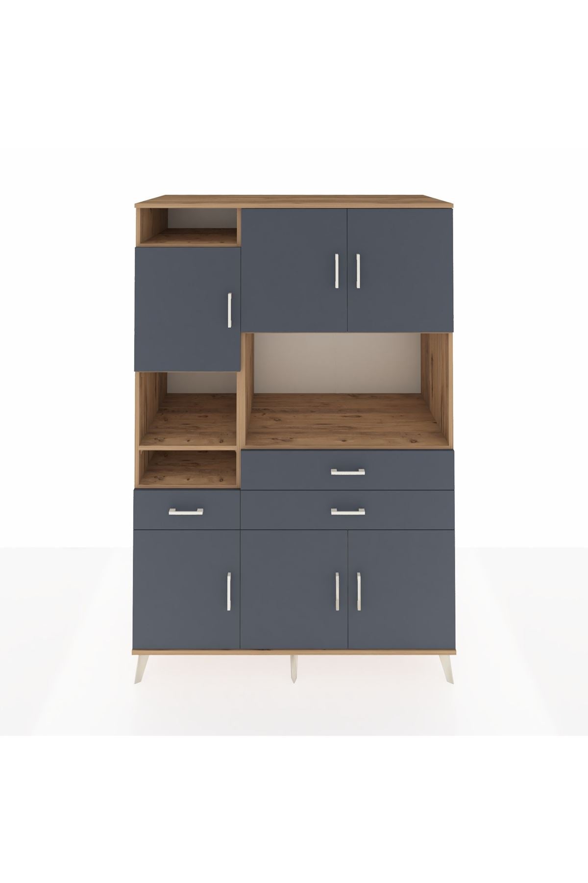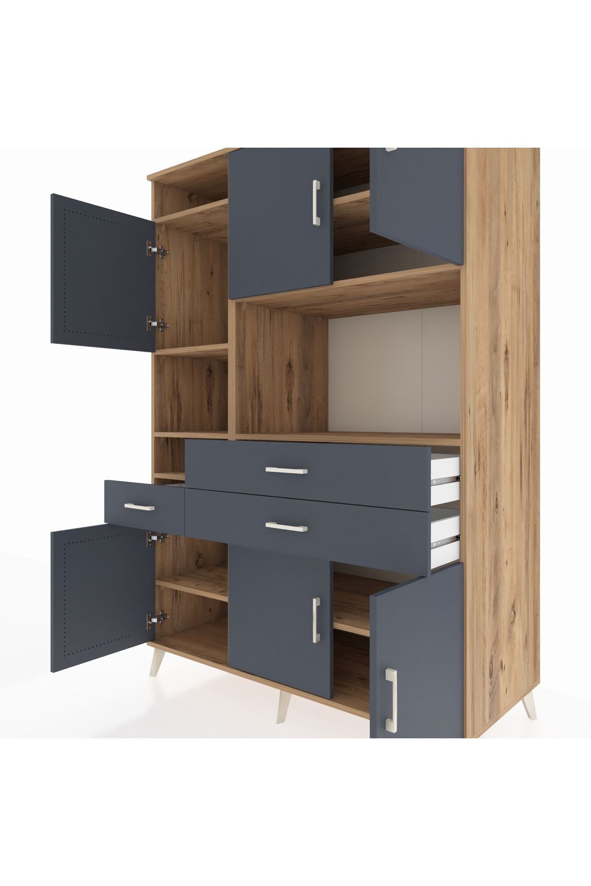 Kronos Dolap 9 Raflı 3 Çekmeceli 6 Kapaklı 132x59x195 Çam-Antrasit/Antrasit