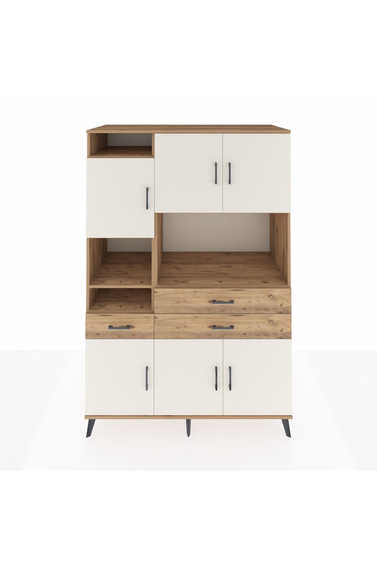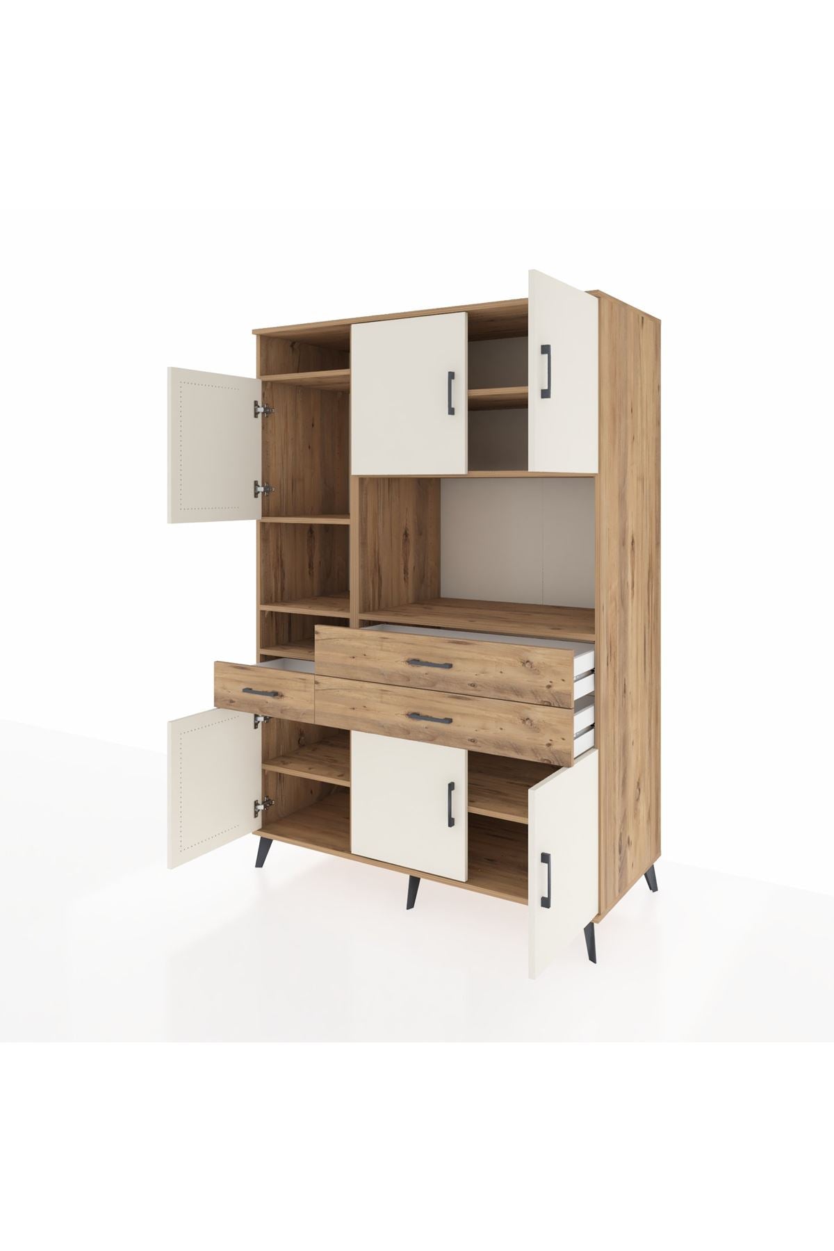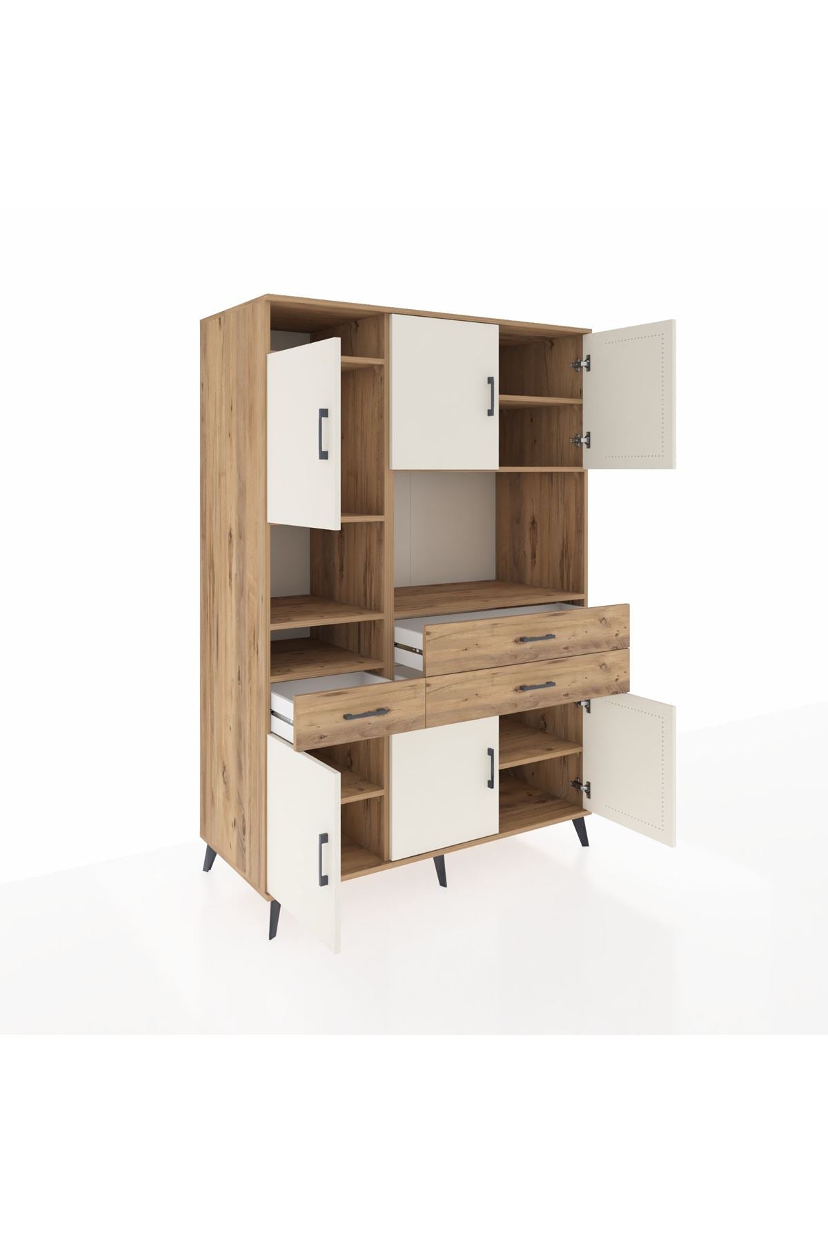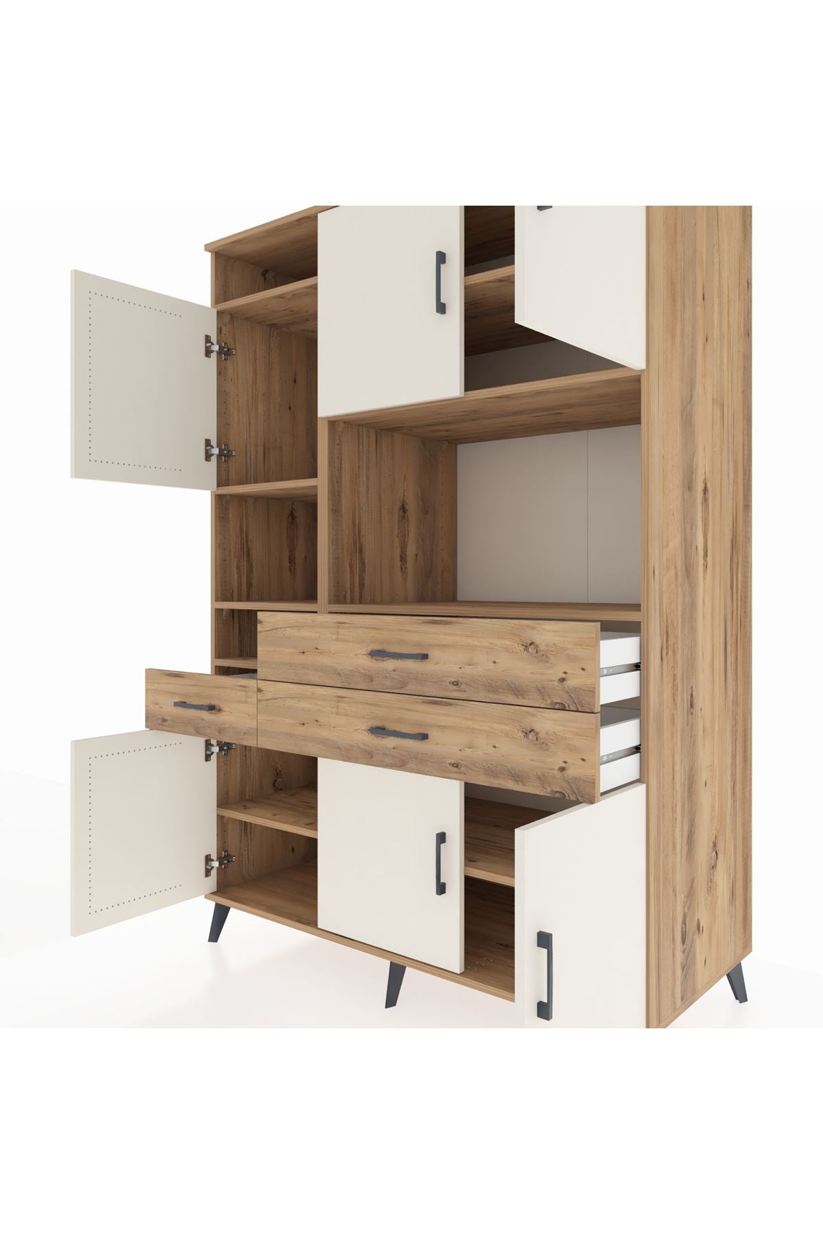Kronos Dolap 9 Raflı 3 Çekmeceli 6 Kapaklı 132x59x195 Çam-Aytaşı/Çam
