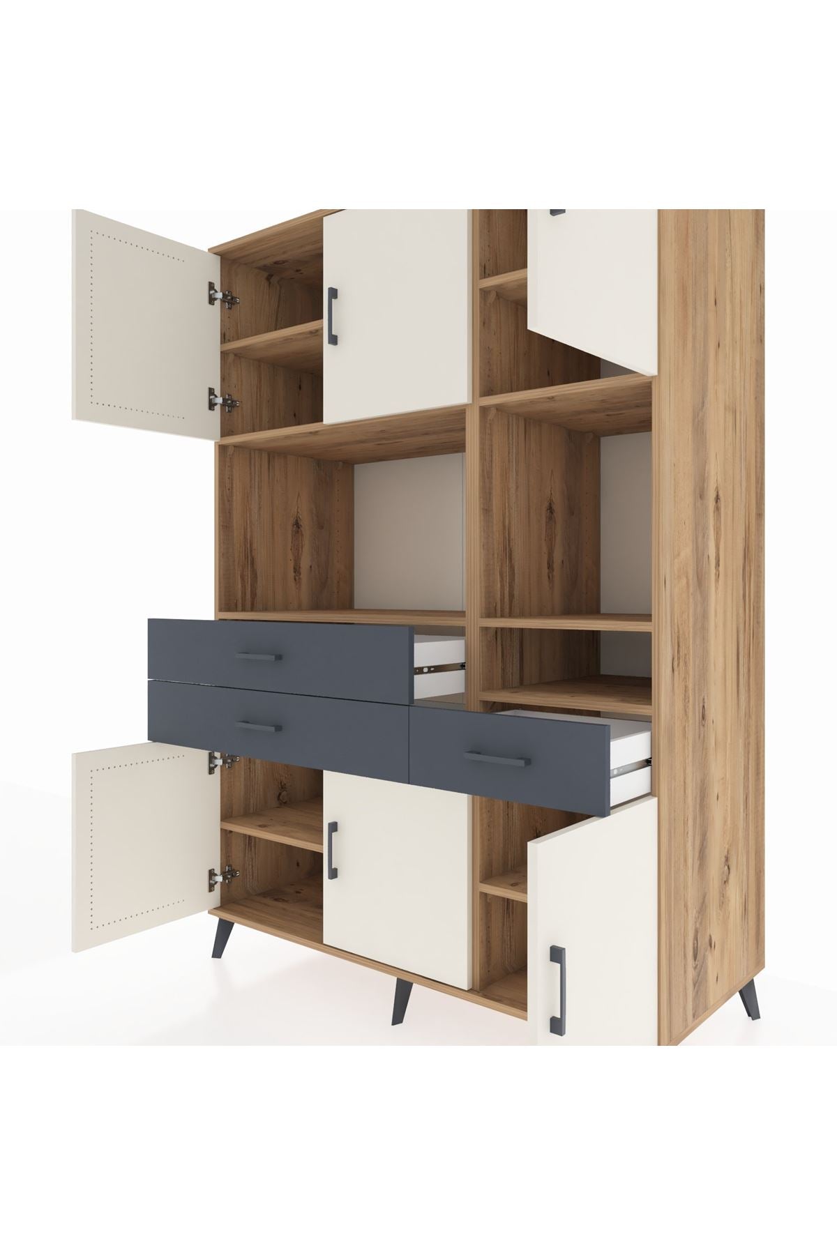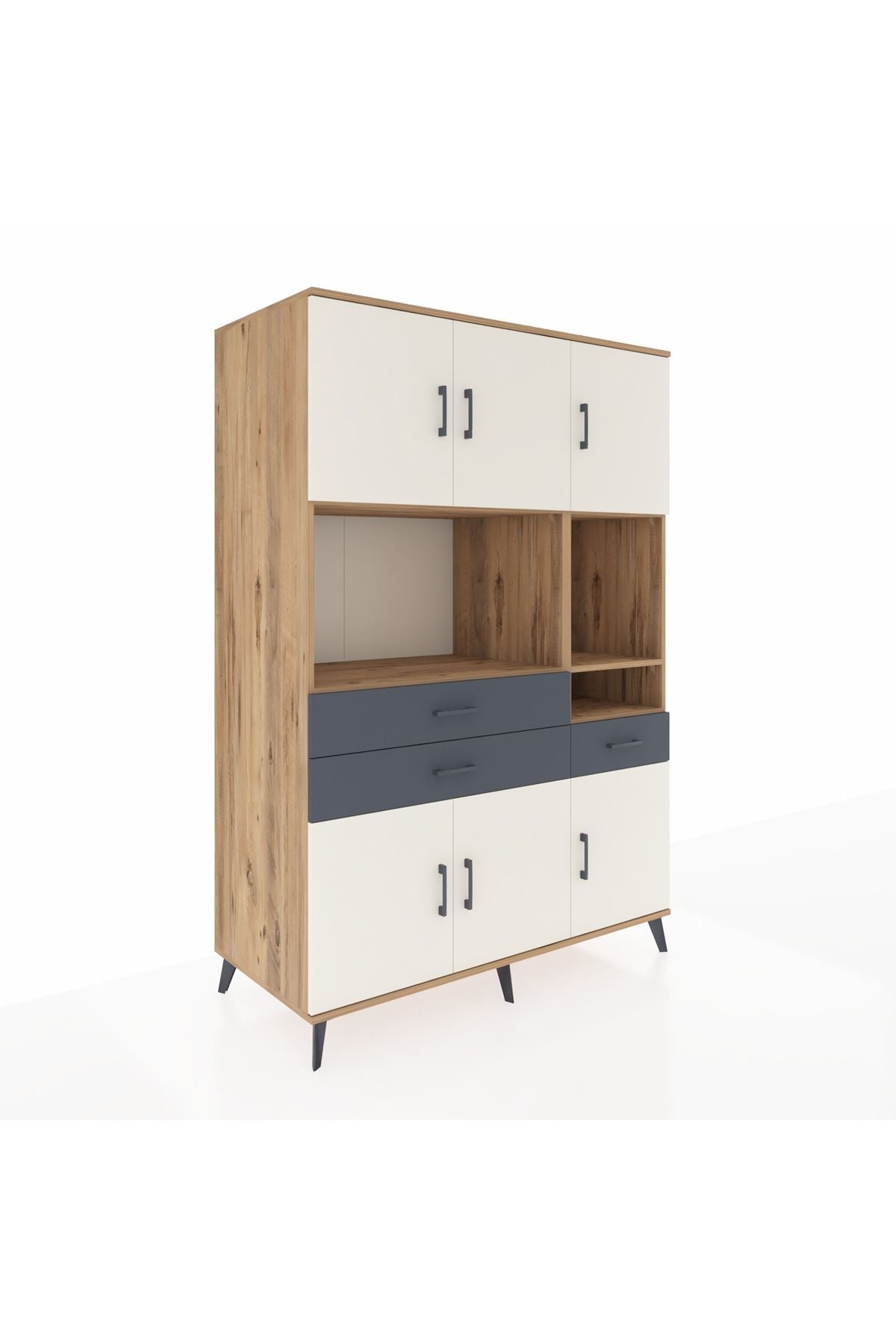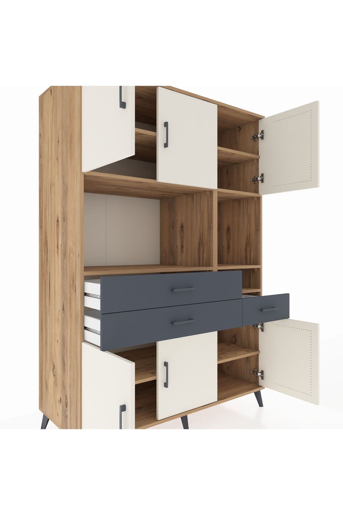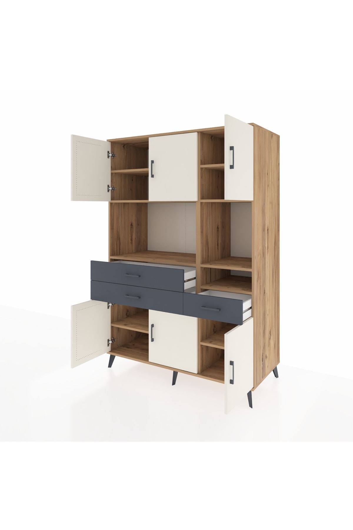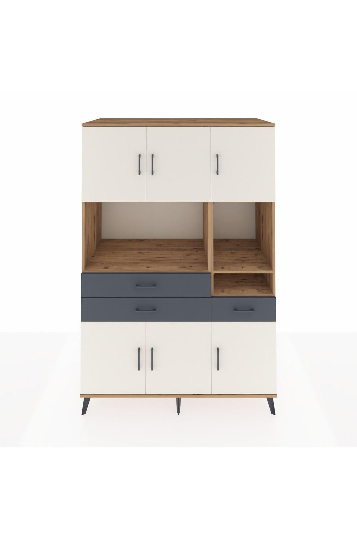 Kronos Dolap 9 Raflı 3 Çekmeceli 6 Kapaklı 132x59x195 Çam-Aytaşı/Antrasit