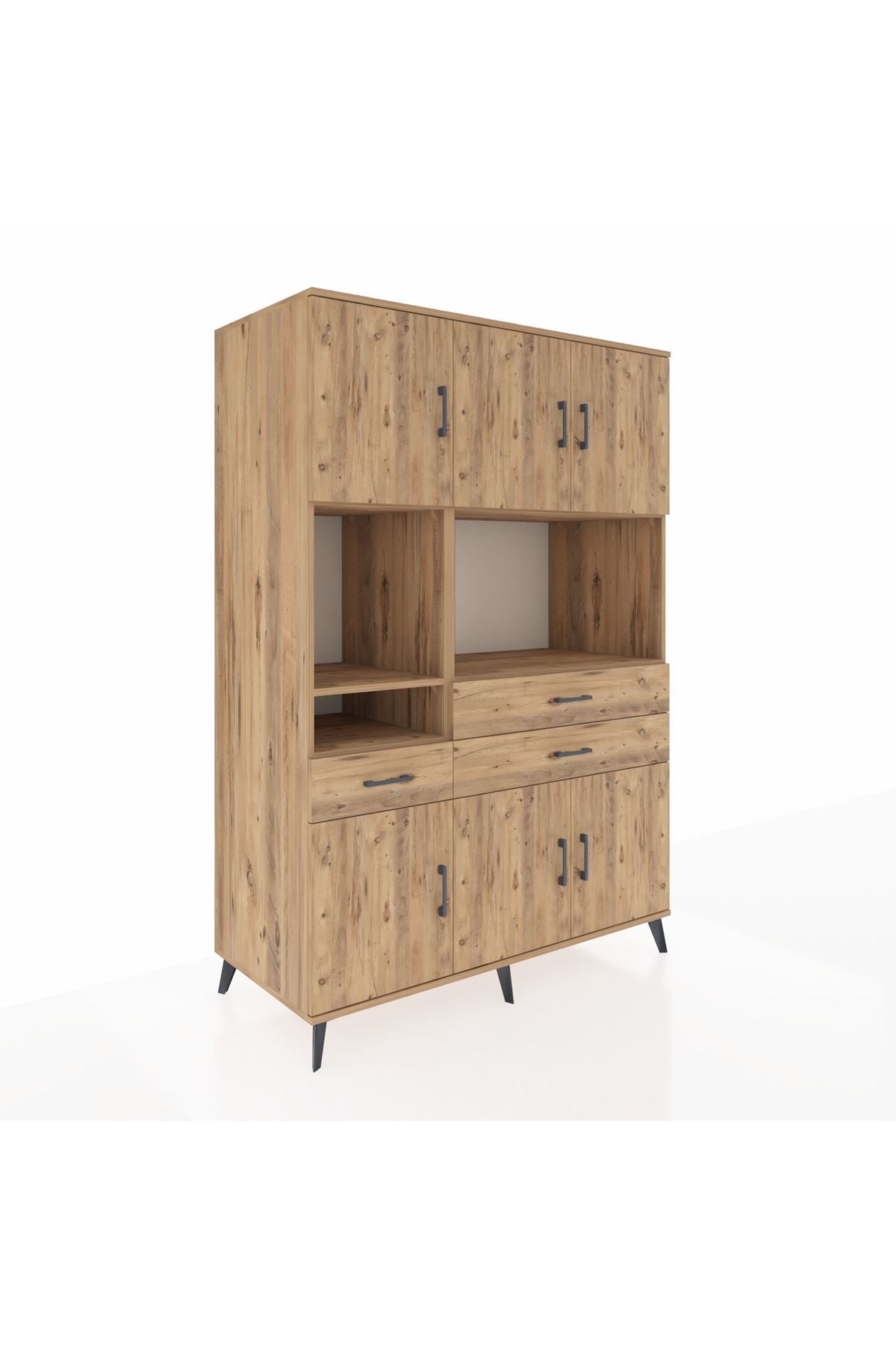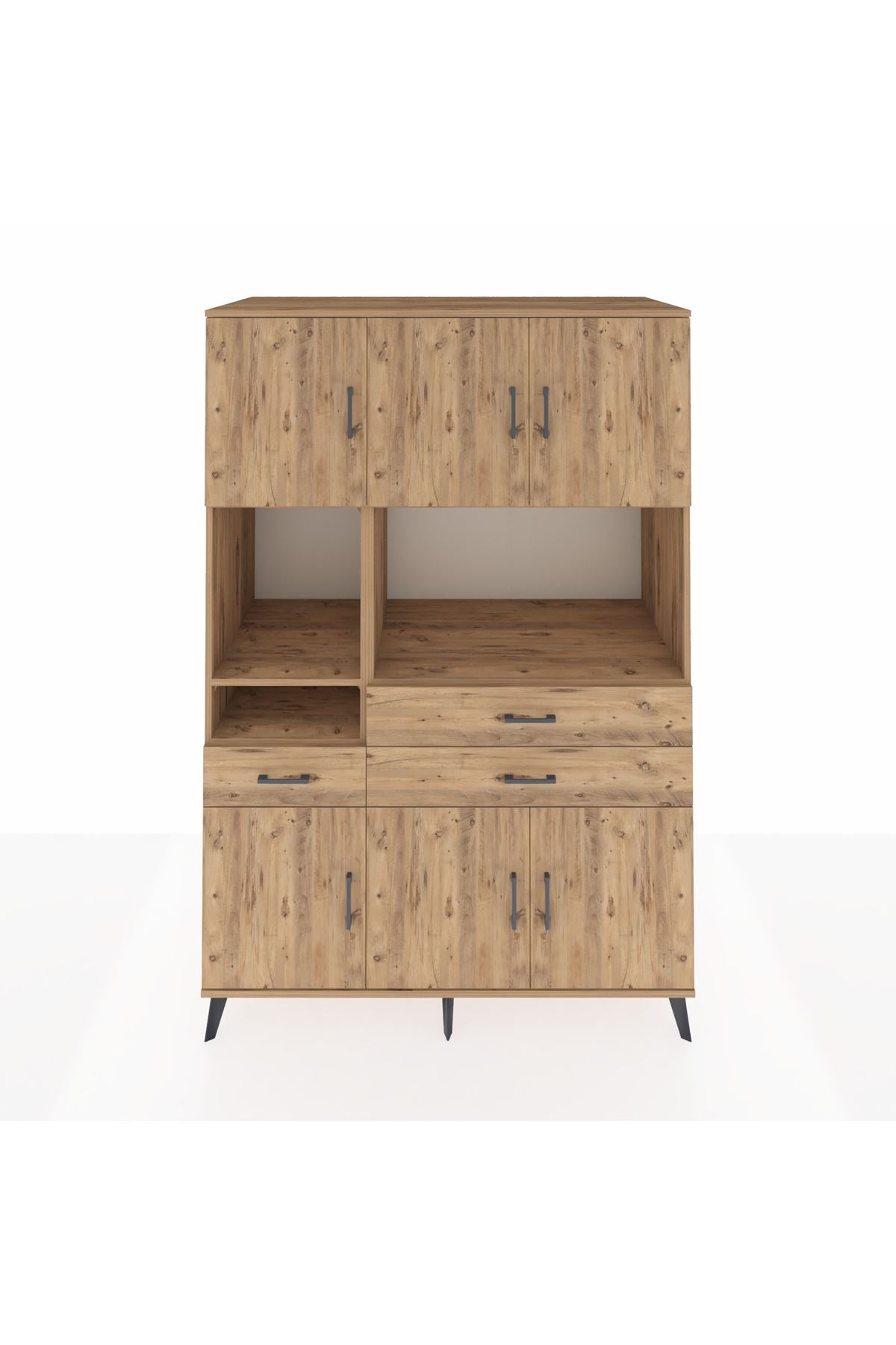 Kronos Dolap 9 Raflı 3 Çekmeceli 6 Kapaklı 132x59x195 Çam-Çam/Çam