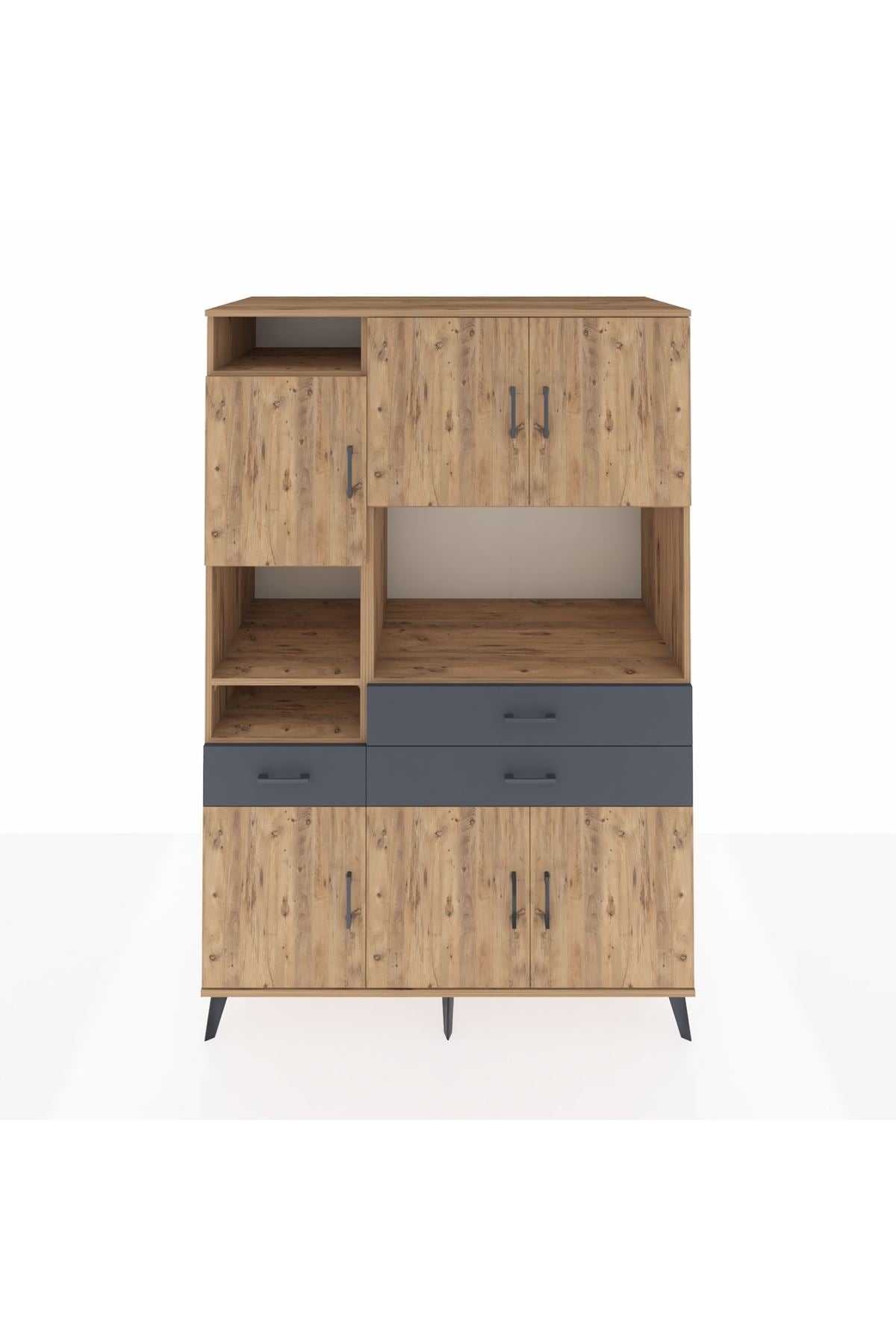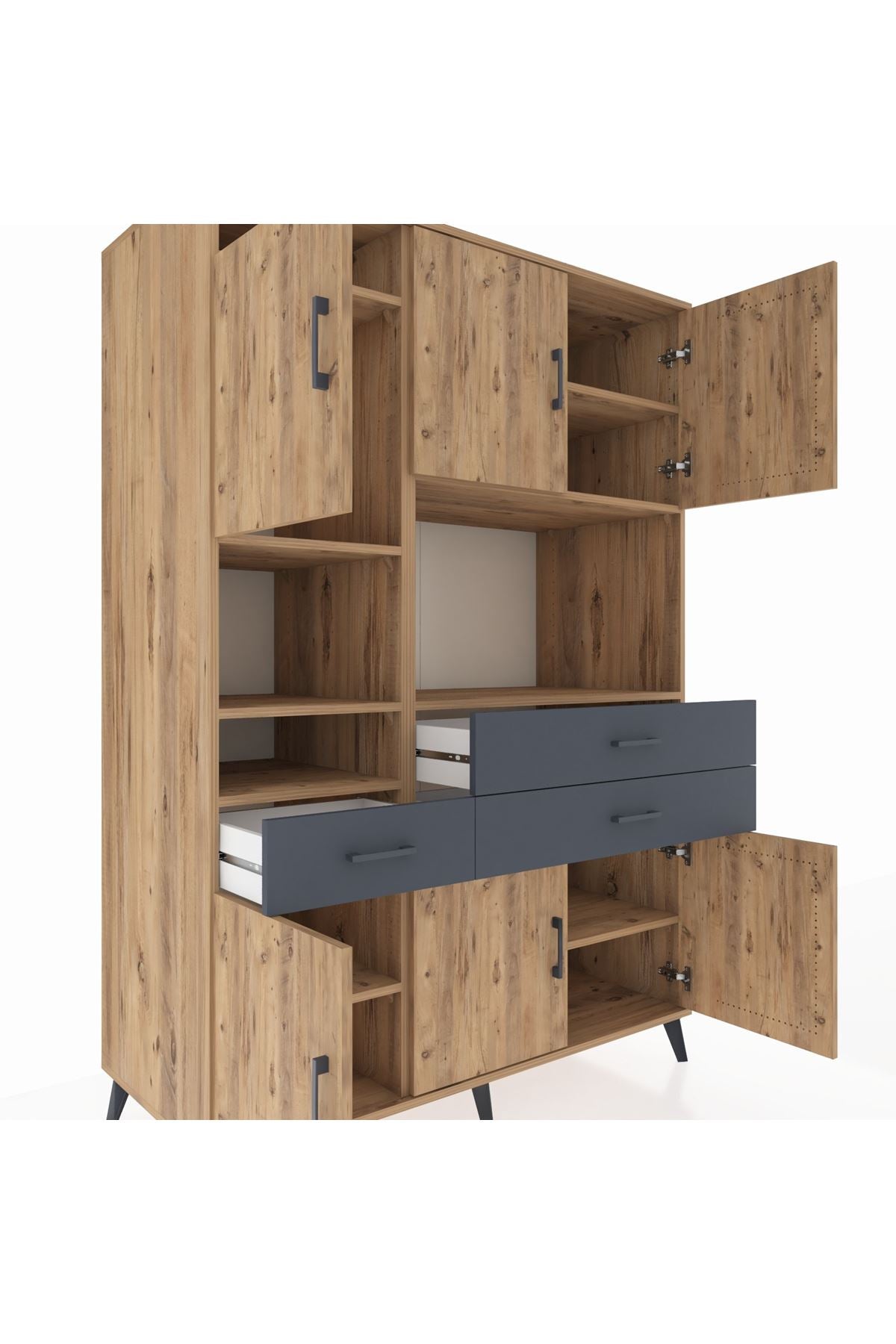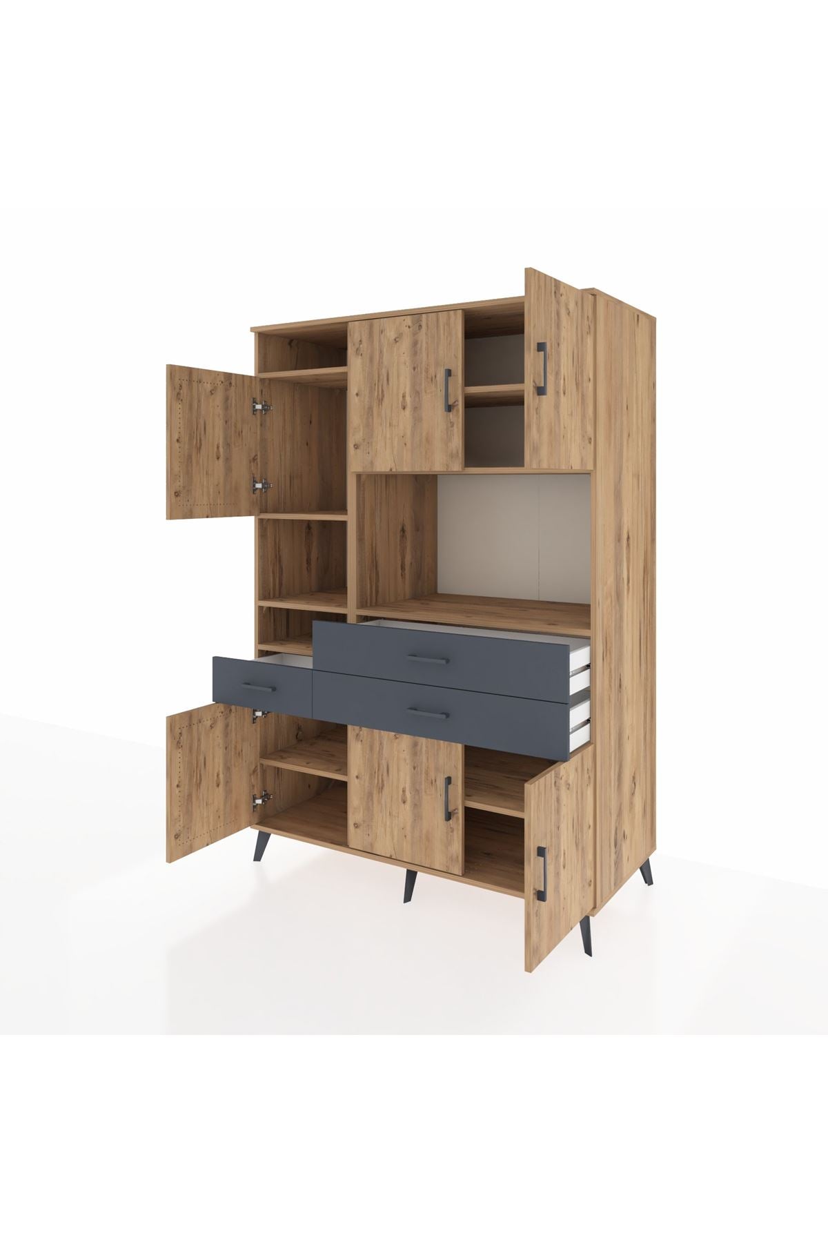 Kronos Dolap 9 Raflı 3 Çekmeceli 6 Kapaklı 132x59x195 Çam-Çam/Antrasit