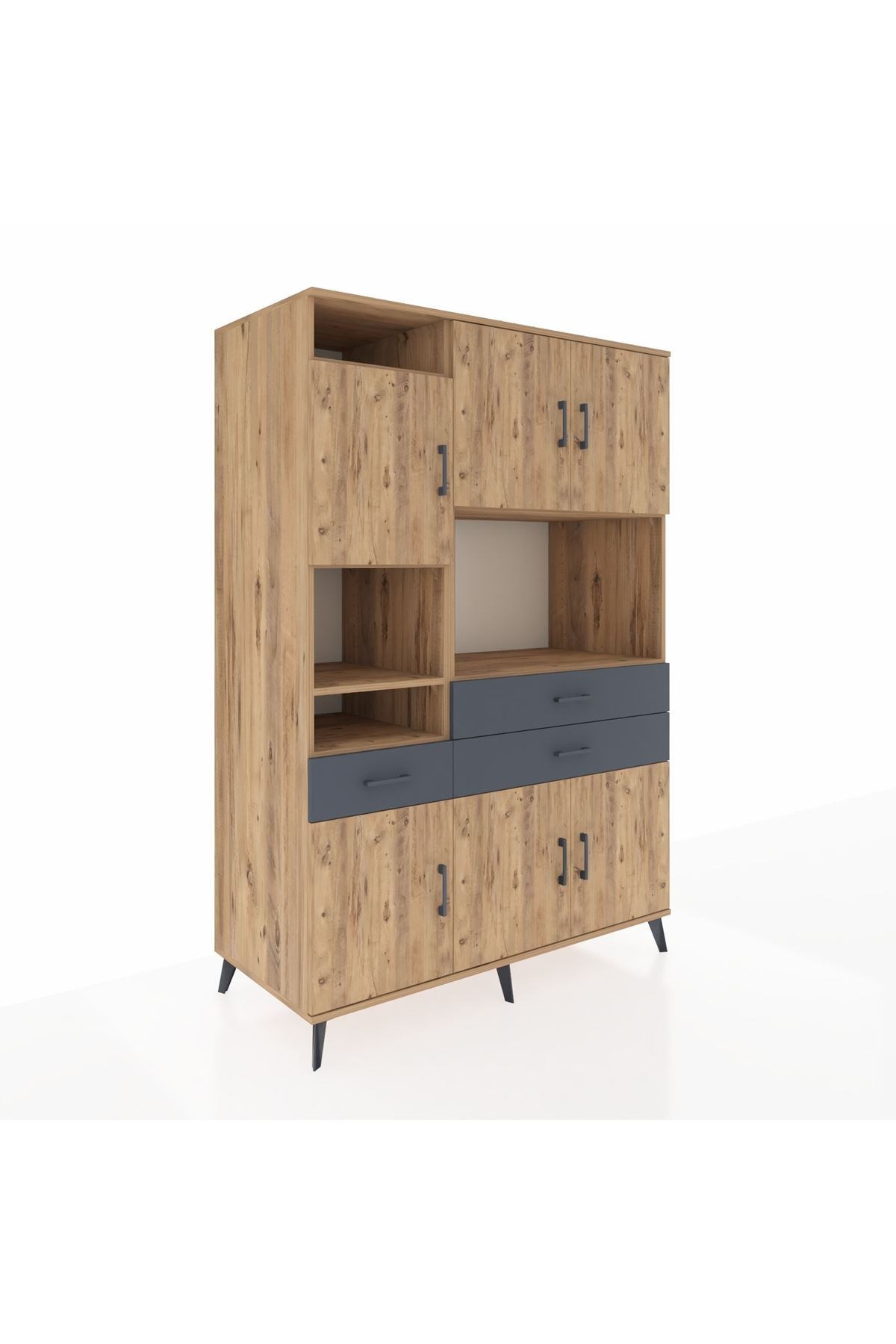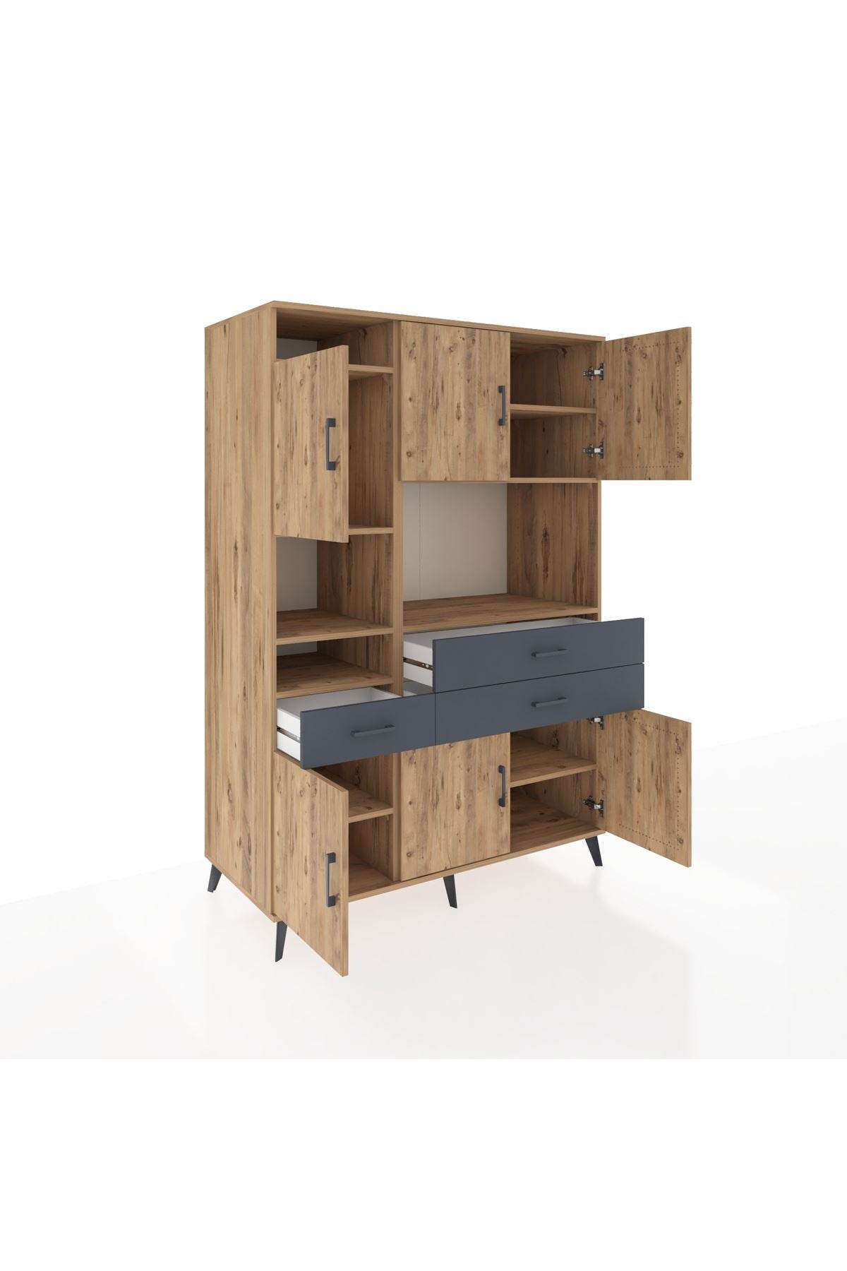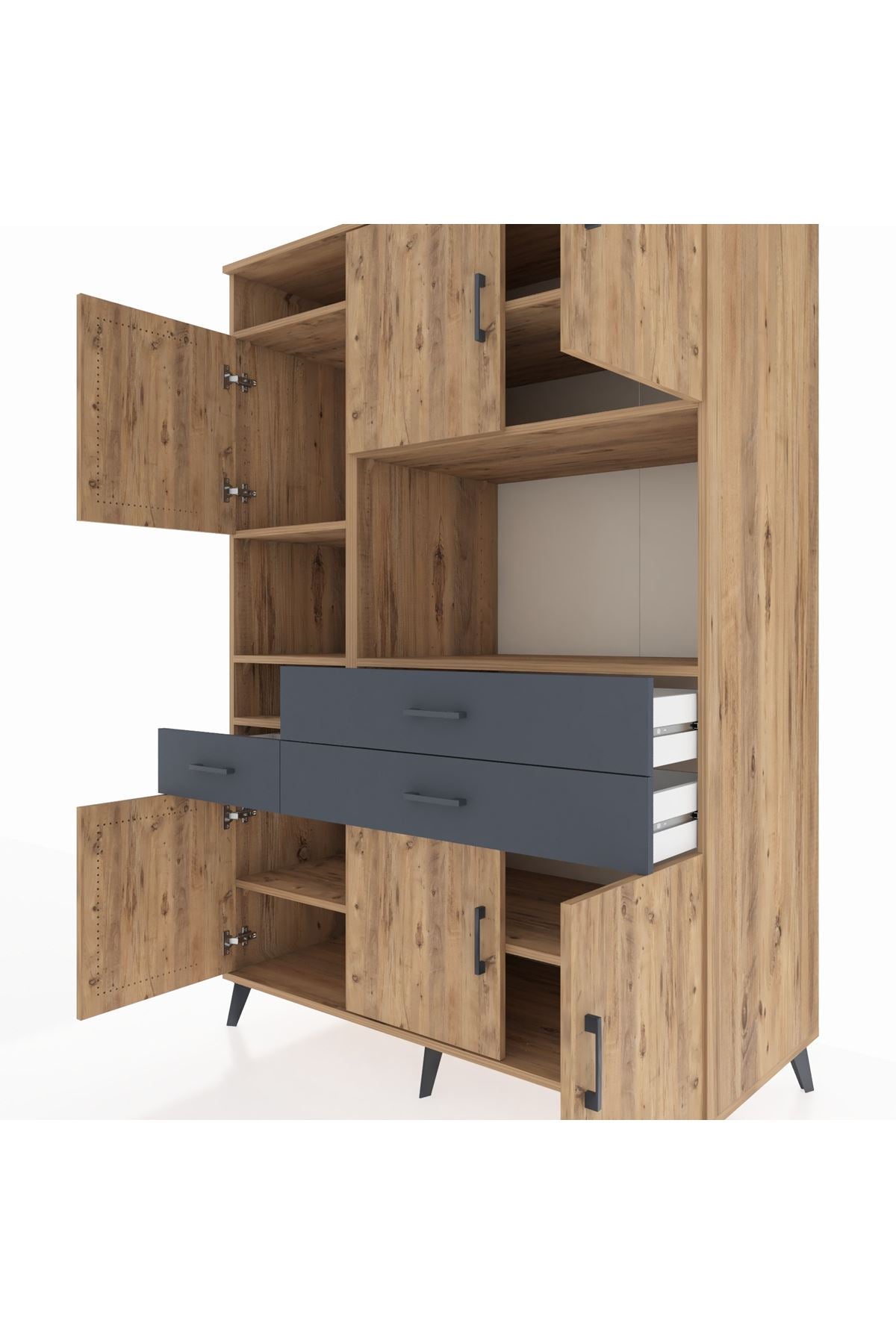 Kronos Dolap 9 Raflı 3 Çekmeceli 6 Kapaklı 132x59x195 Çam-Çam/Antrasit