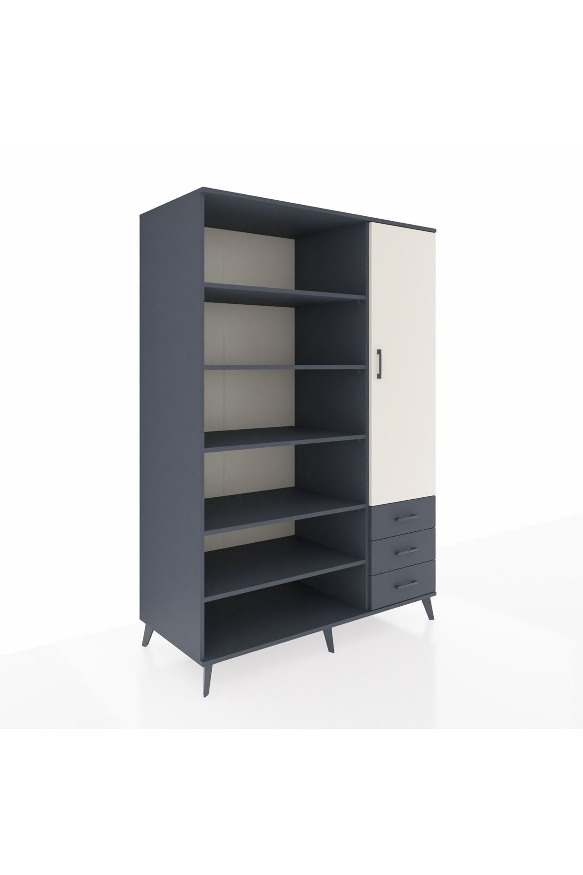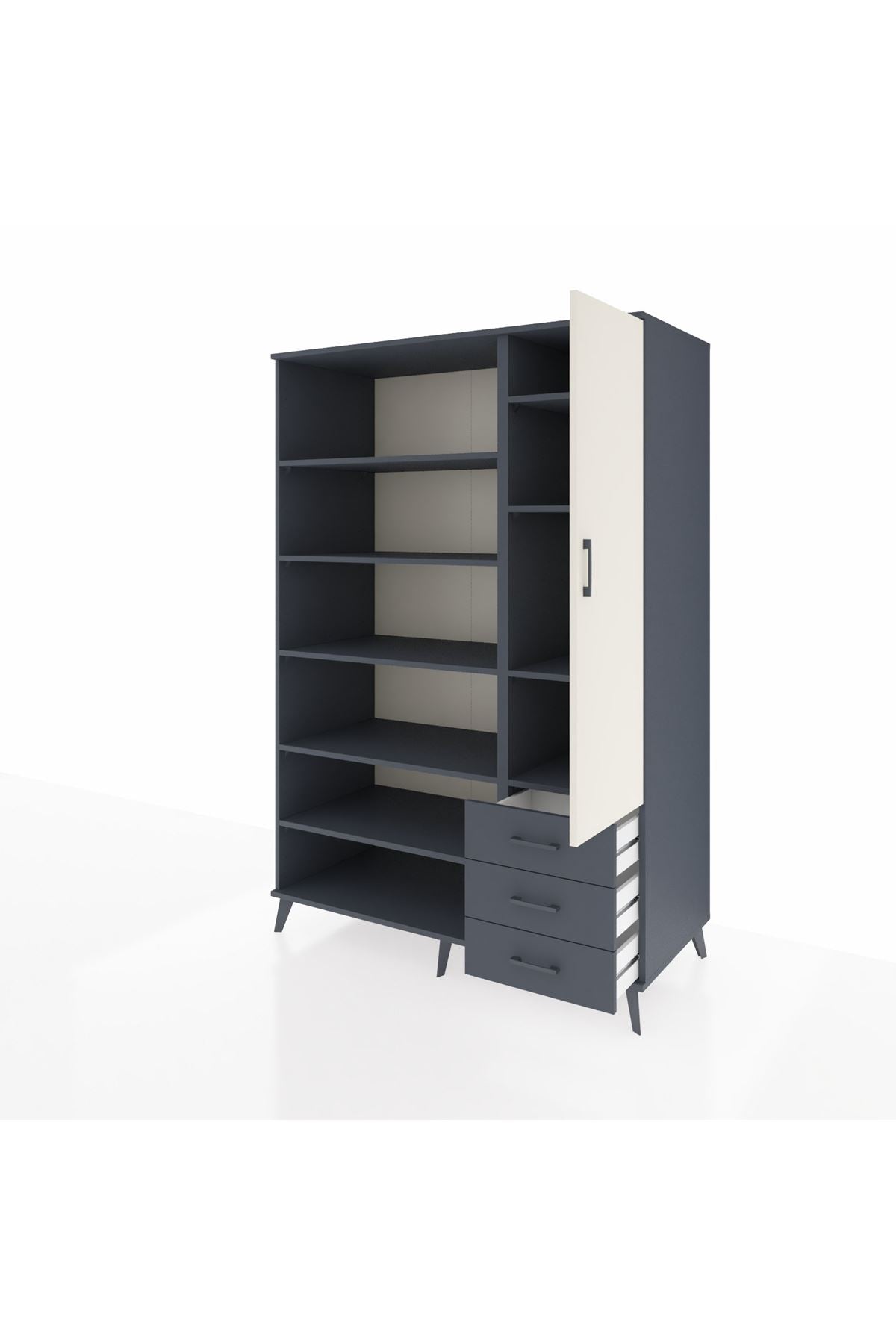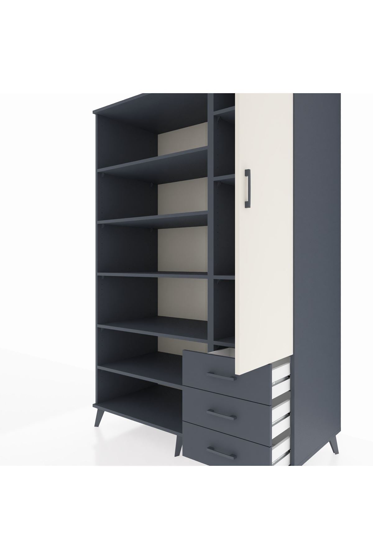 Kronos Dolap 9 Raflı 3 Çekmeceli Tek Kapaklı 132x59x195 Antrasit-Aytaşı/Antrasit