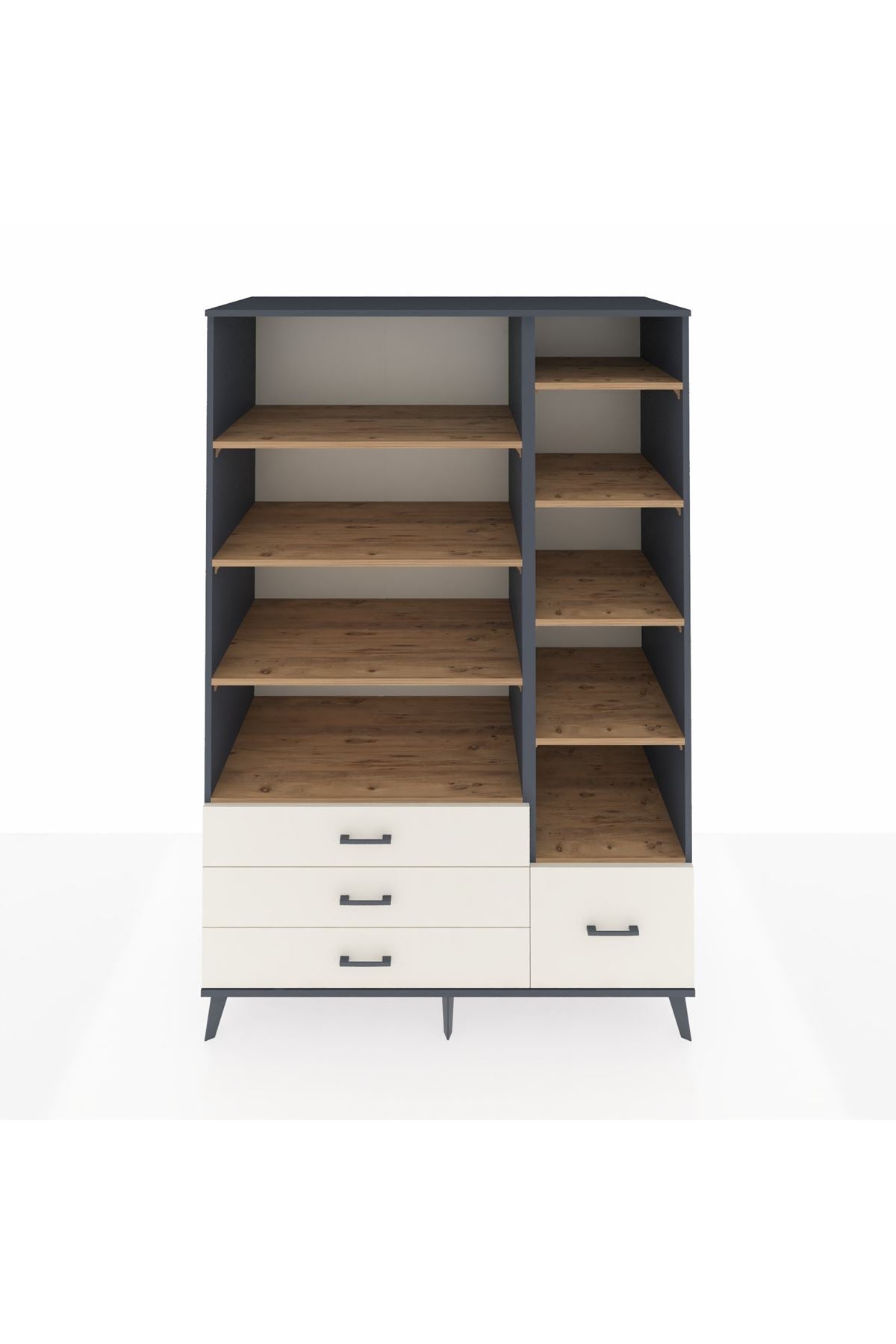 Kronos Dolap 9 Raflı 4 Çekmeceli 132x59x195 Antrasit-Çam/Aytaşı