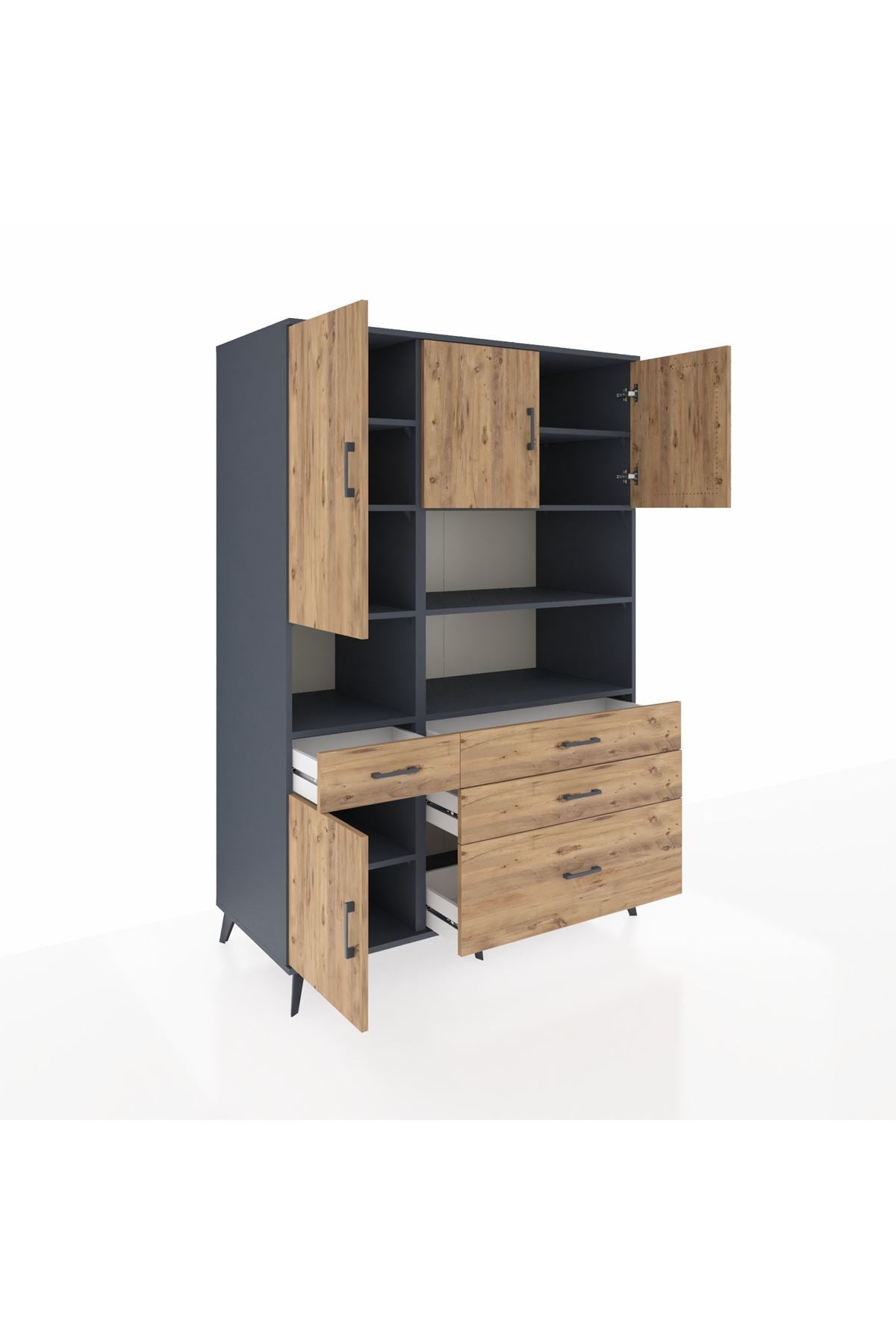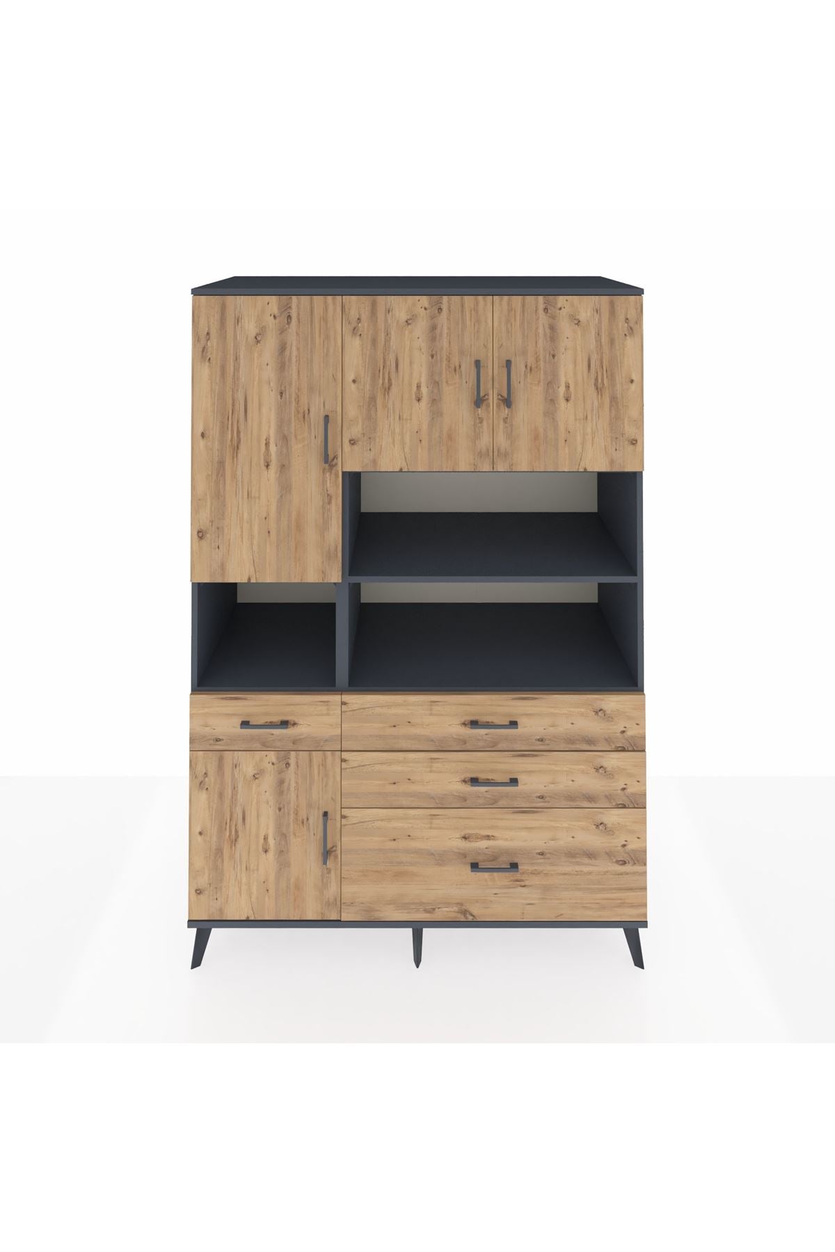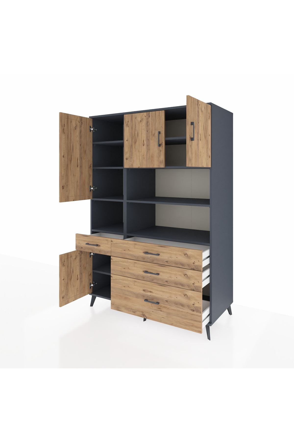 Kronos Dolap 9 Raflı 4 Çekmeceli 4 Kapaklı 132x59x195 Antrasit-Çam/Çam