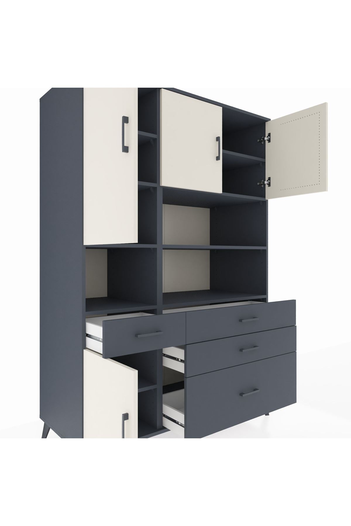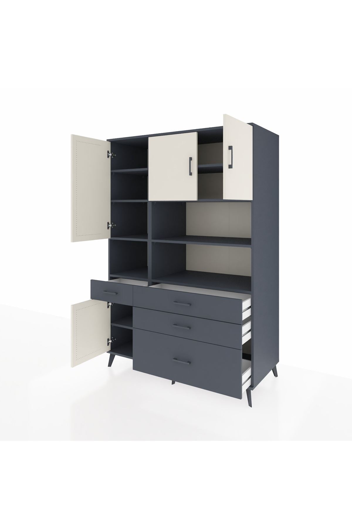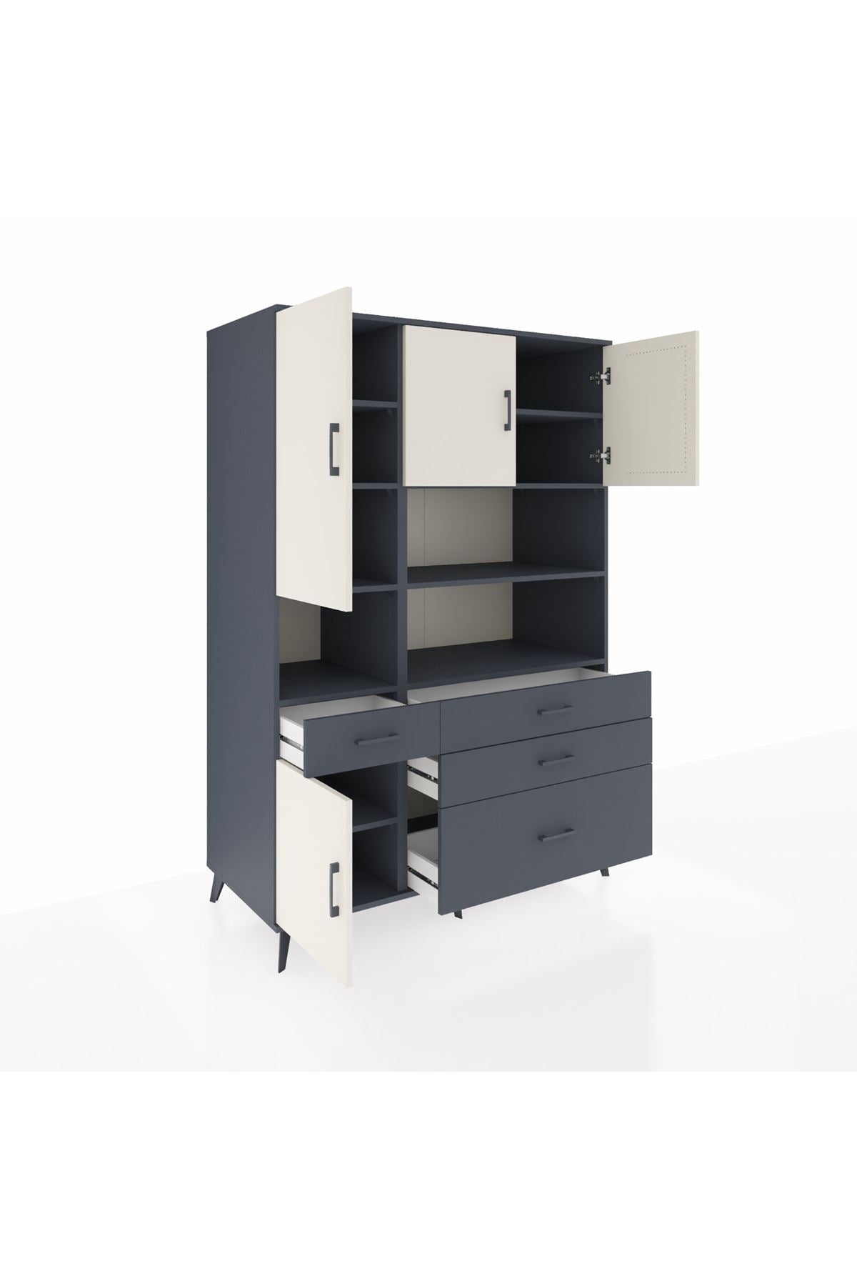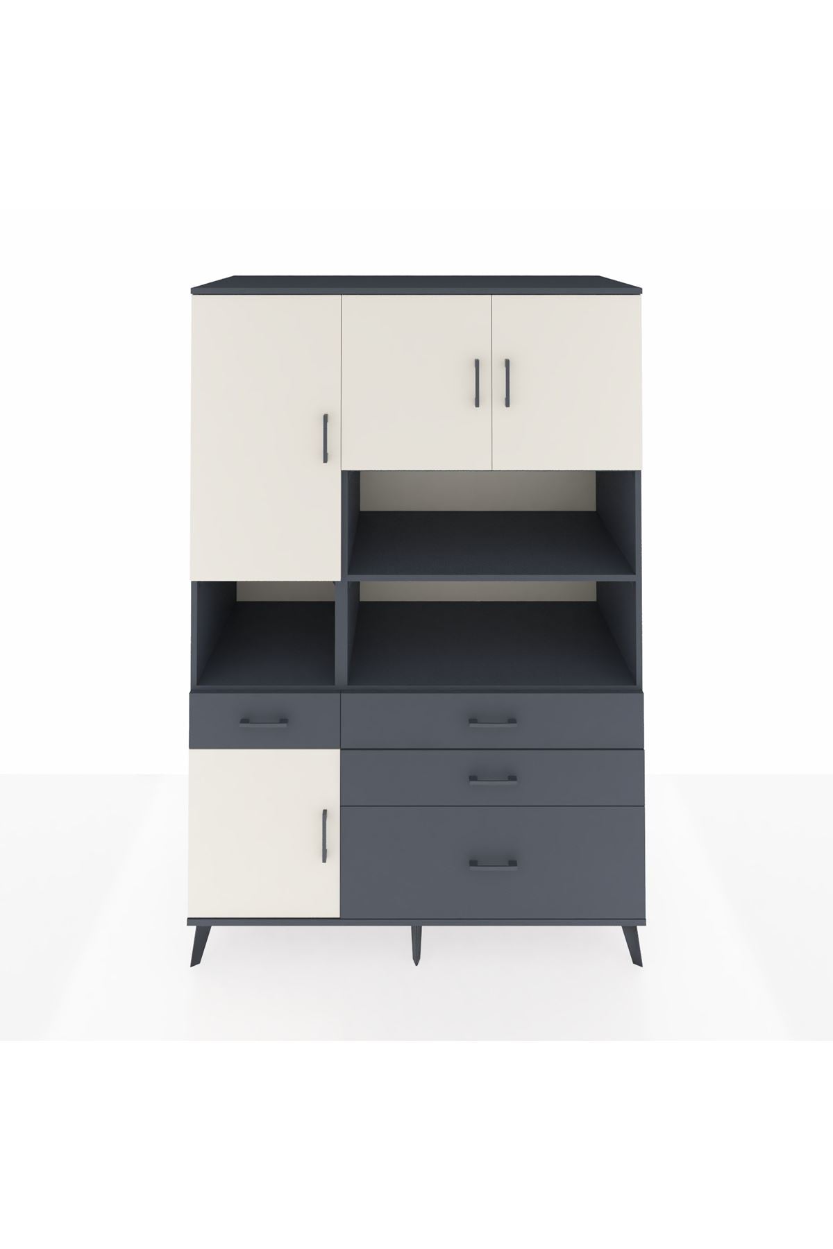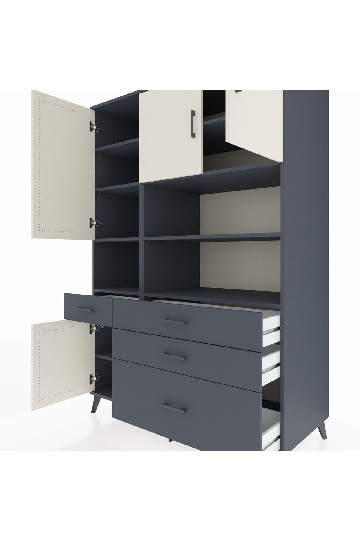 Kronos Dolap 9 Raflı 4 Çekmeceli 4 Kapaklı 132x59x195 Antrasit-Aytaşı/Antrasit