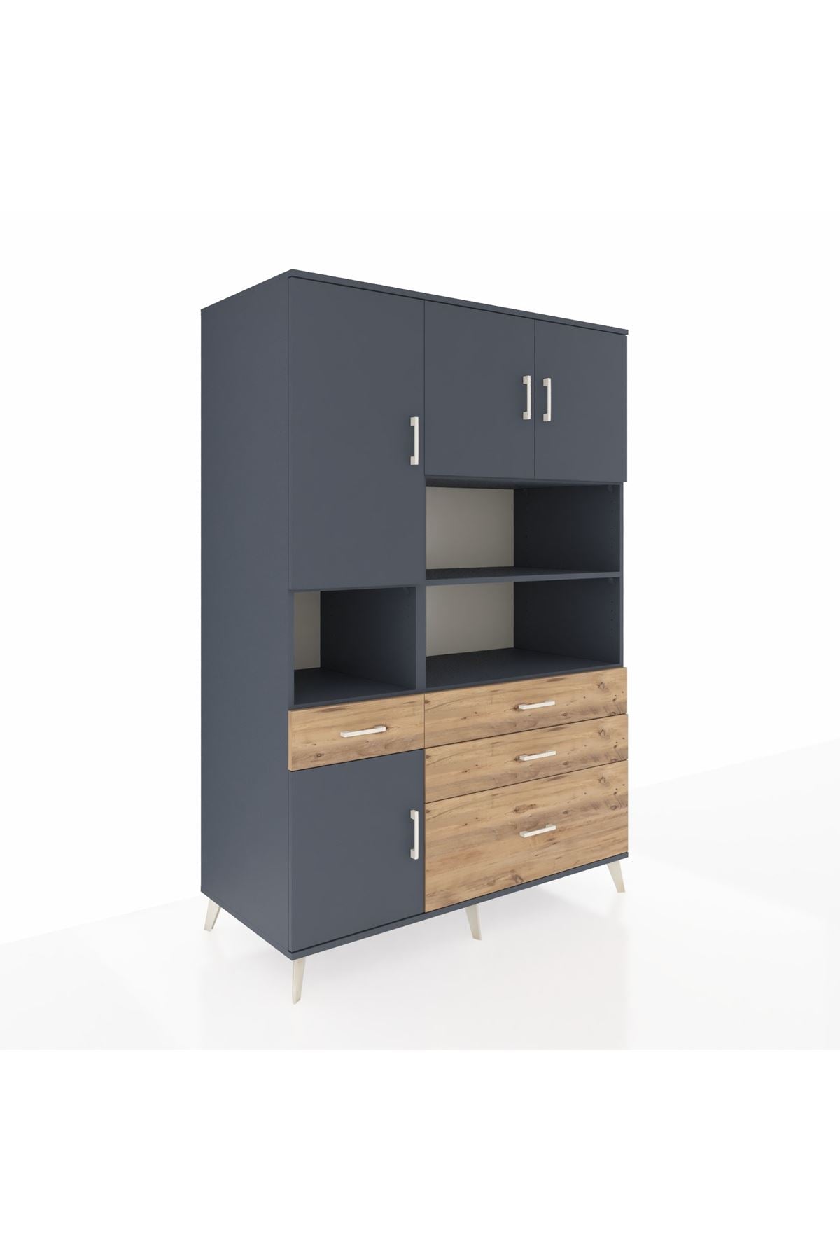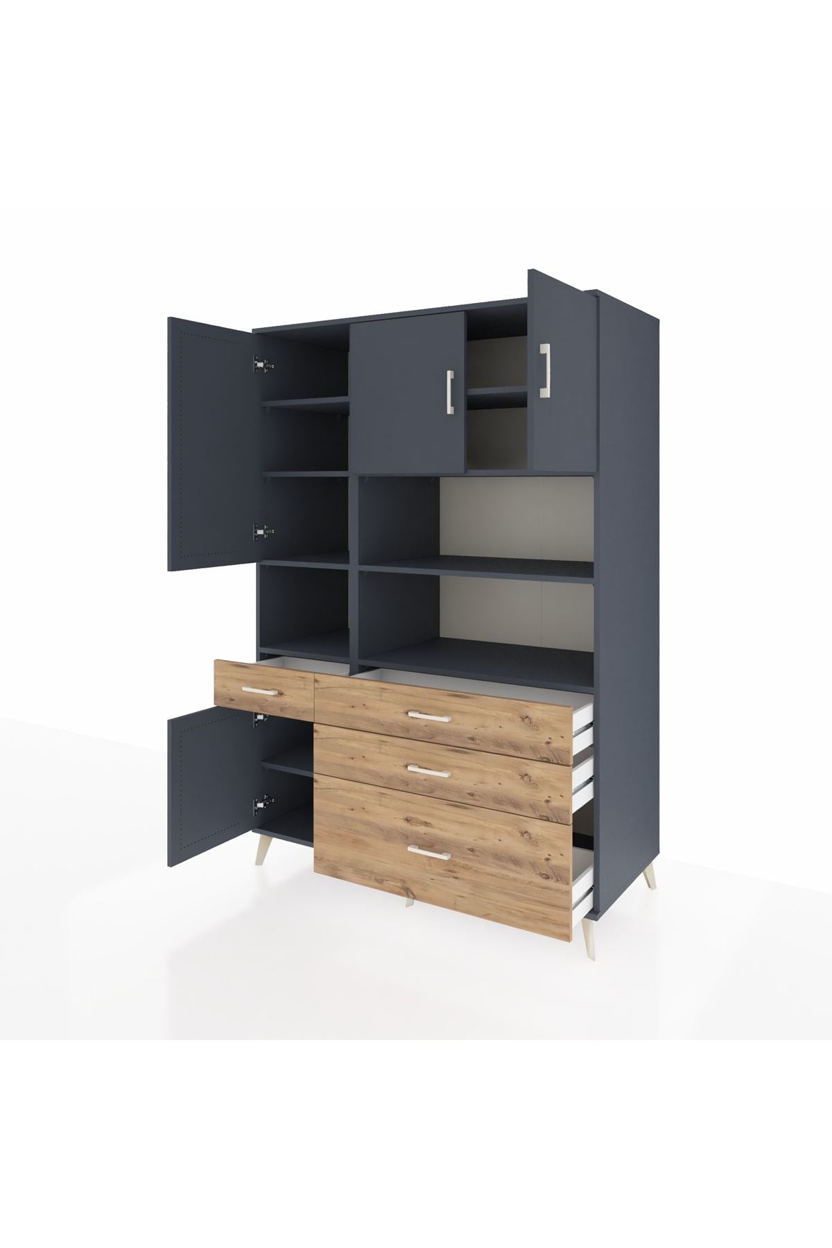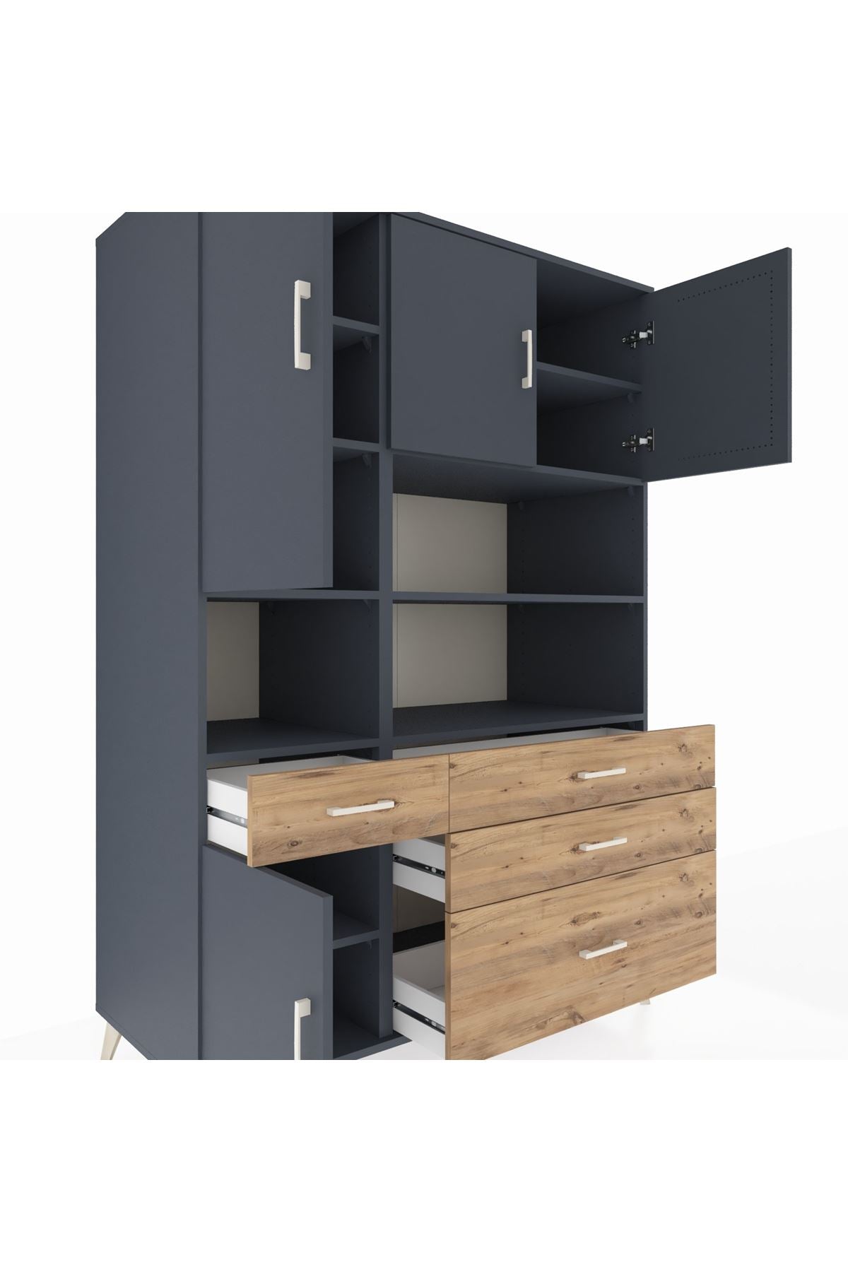 Kronos Dolap 9 Raflı 4 Çekmeceli 4 Kapaklı 132x59x195 Antrasit-Antrasit/Çam