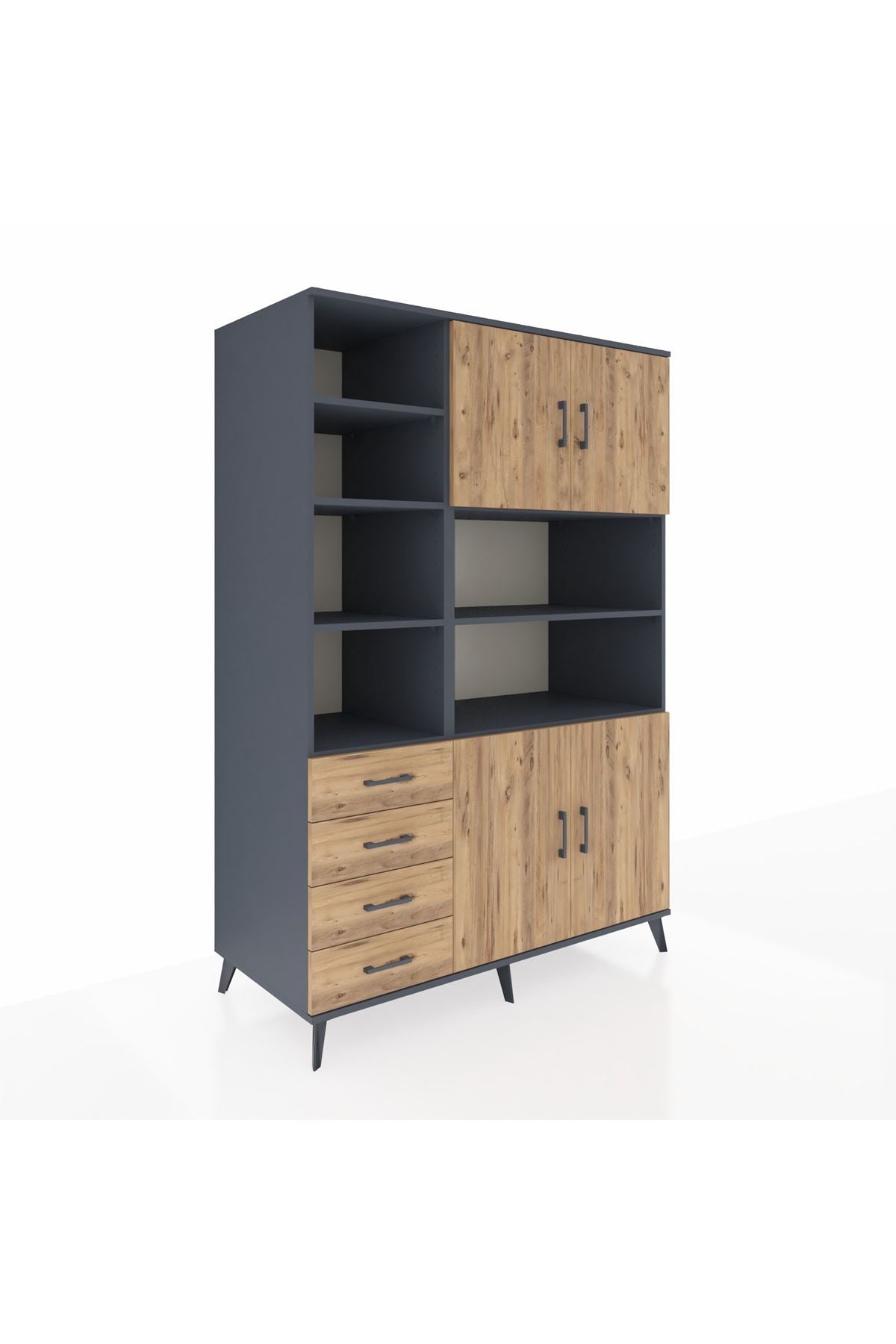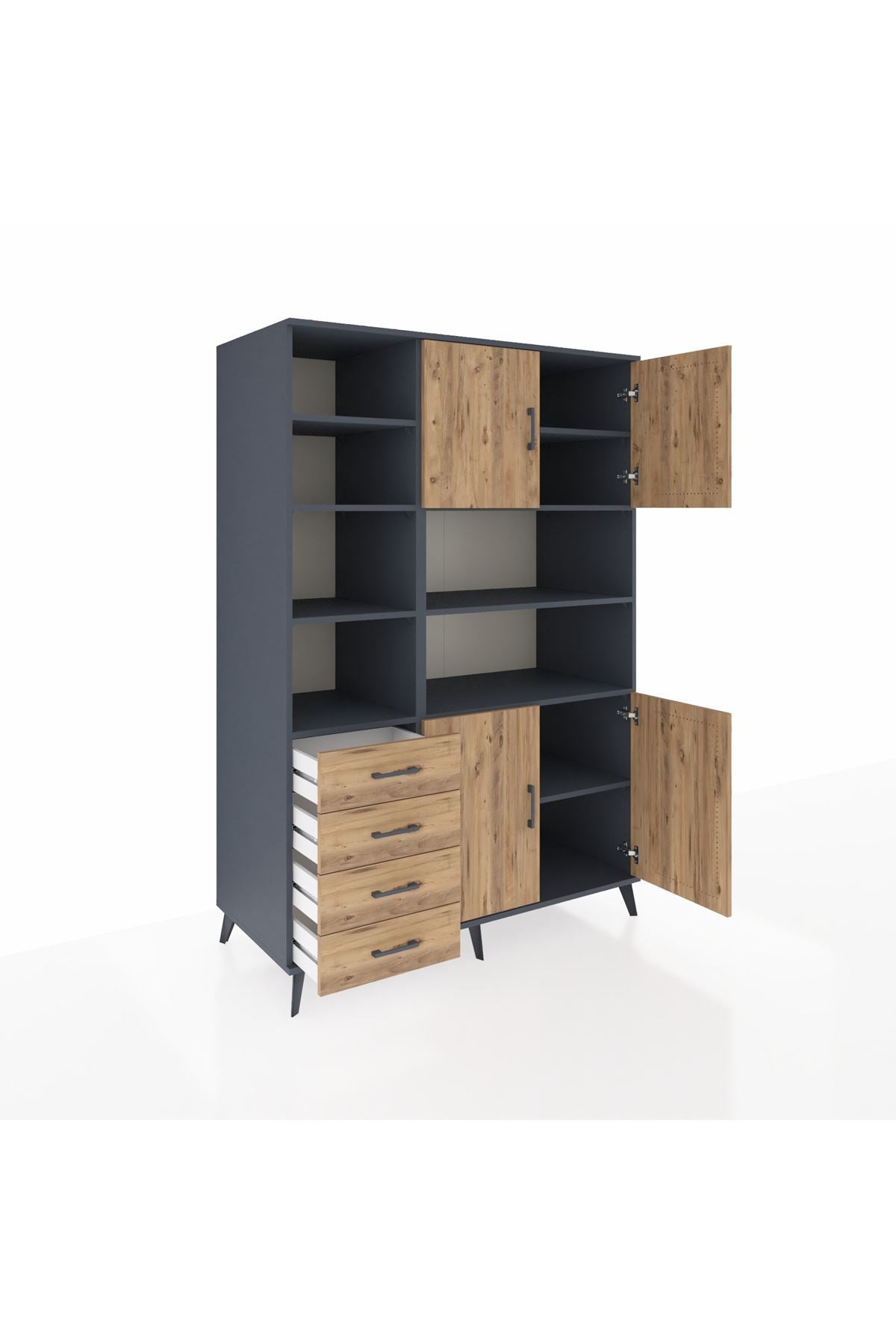 Kronos Dolap 9 Raflı 4 Çekmeceli 4 Kapaklı 132x59x195 Antrasit-Çam/Çam