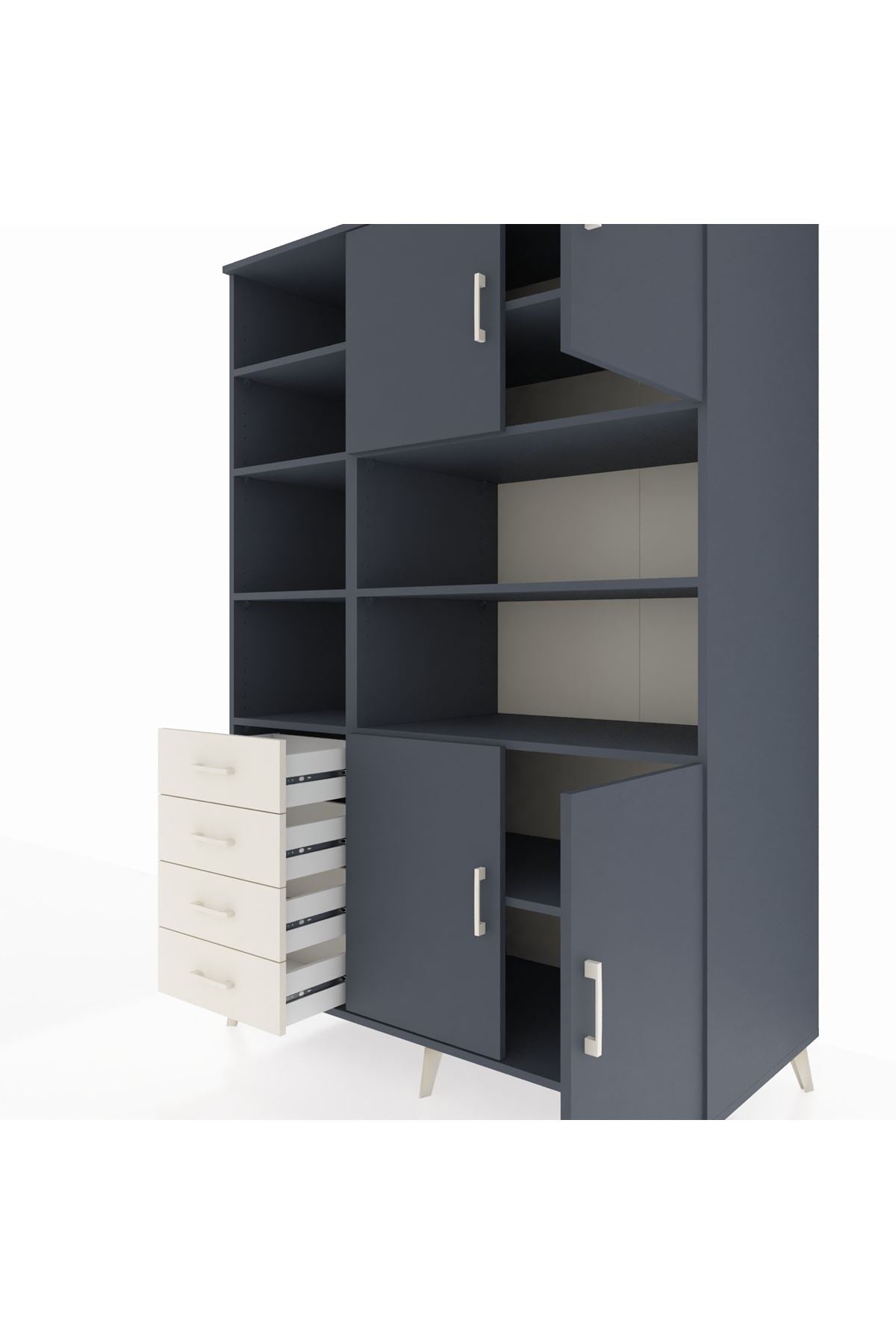 Kronos Dolap 9 Raflı 4 Çekmeceli 4 Kapaklı 132x59x195 Antrasit-Antrasit/Aytaşı