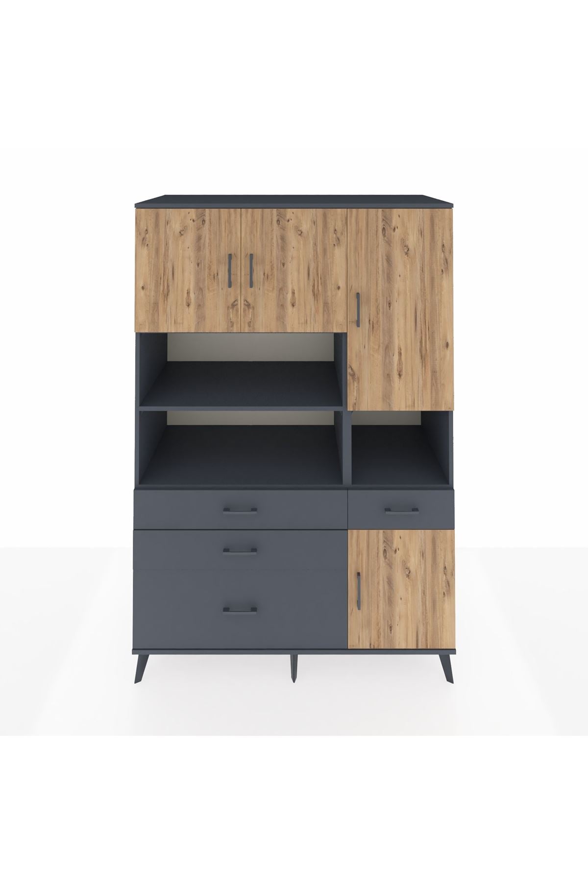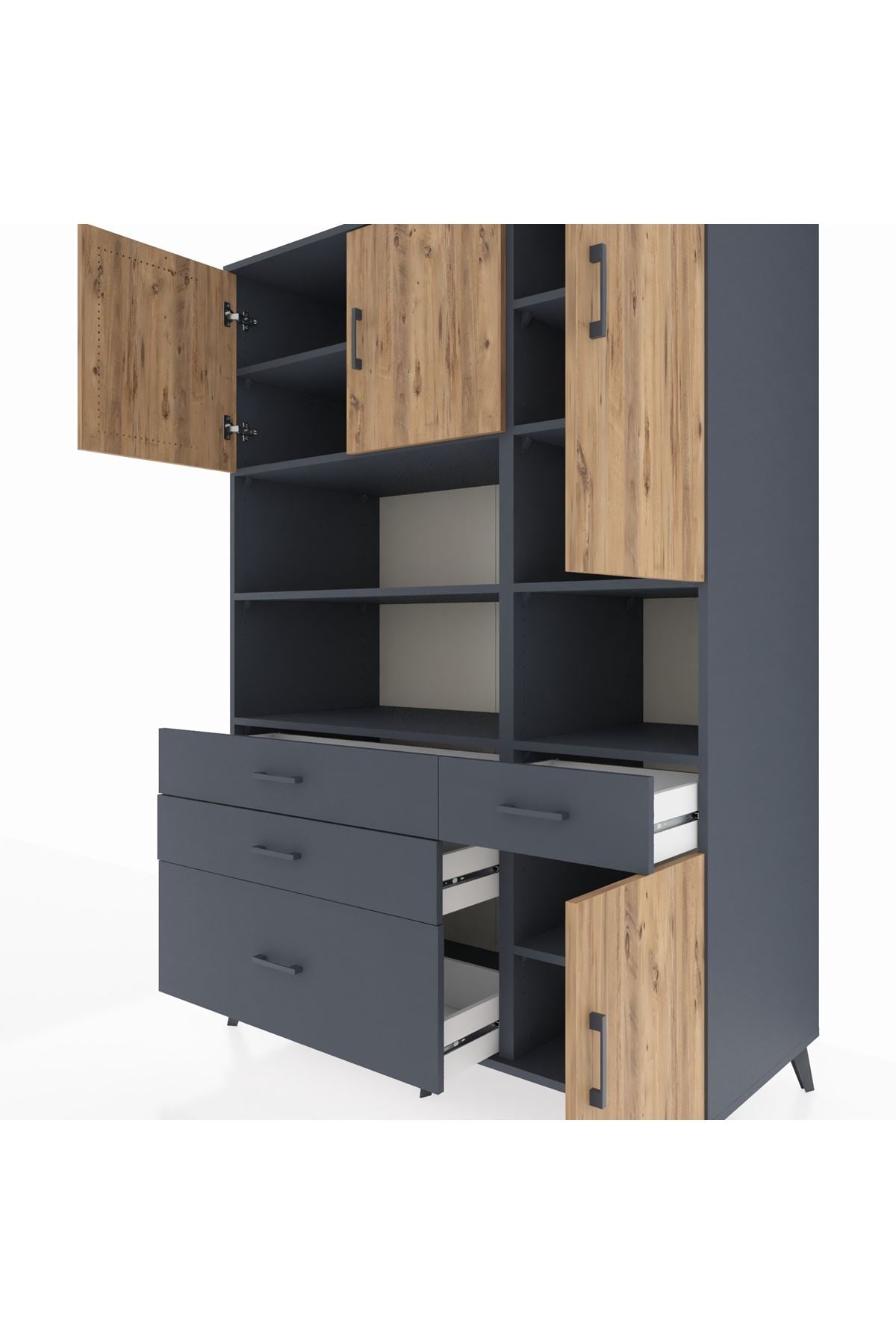 Kronos Dolap 9 Raflı 4 Çekmeceli 4 Kapaklı 132x59x195 Antrasit-Çam/Antrasit