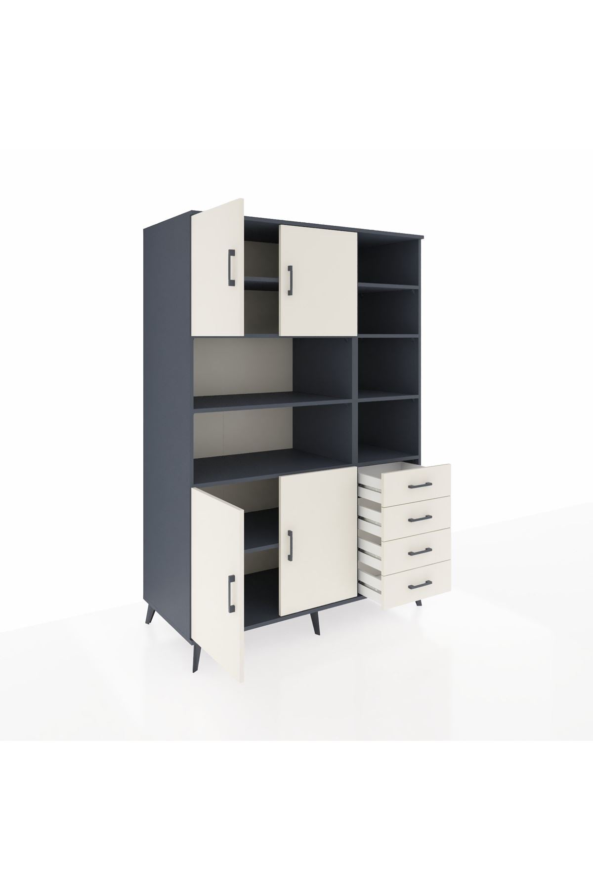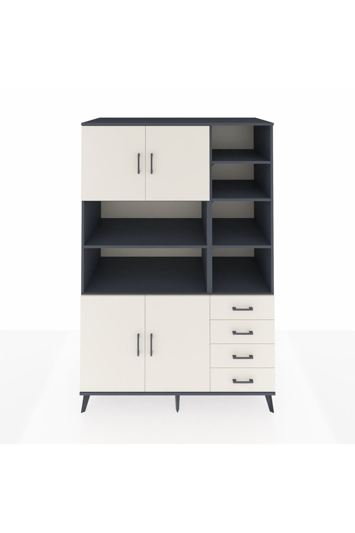 Kronos Dolap 9 Raflı 4 Çekmeceli 4 Kapaklı 132x59x195 Antrasit-Aytaşı/Aytaşı