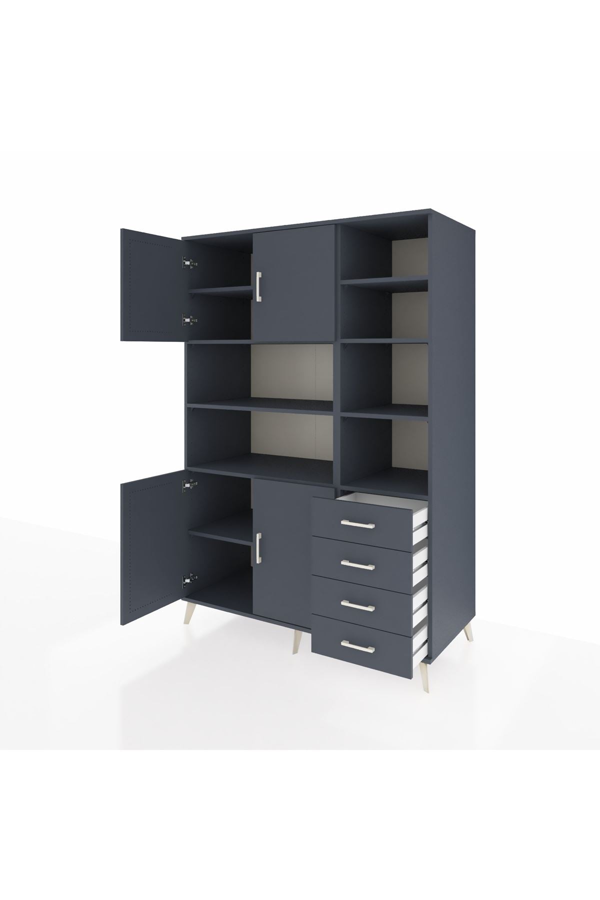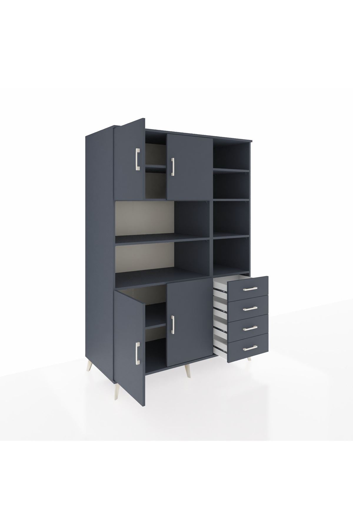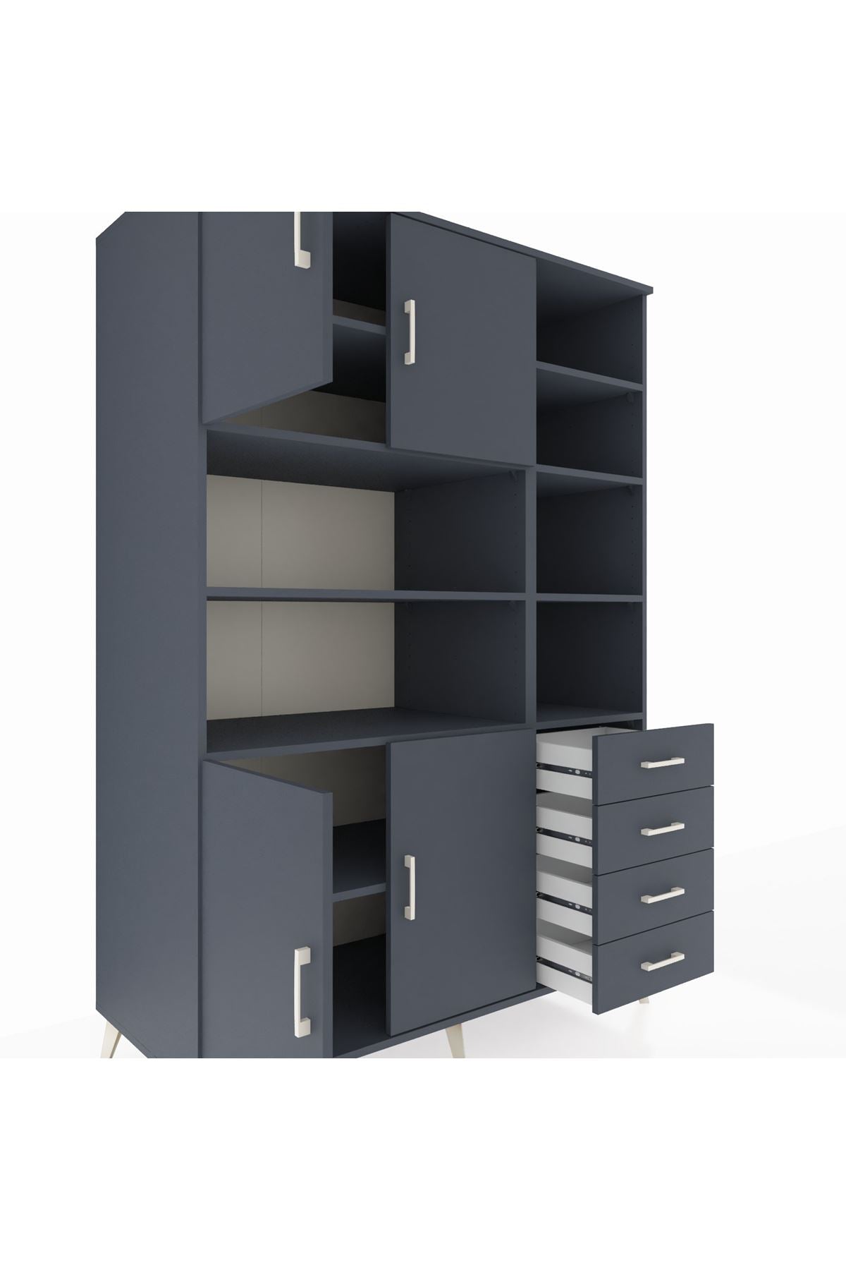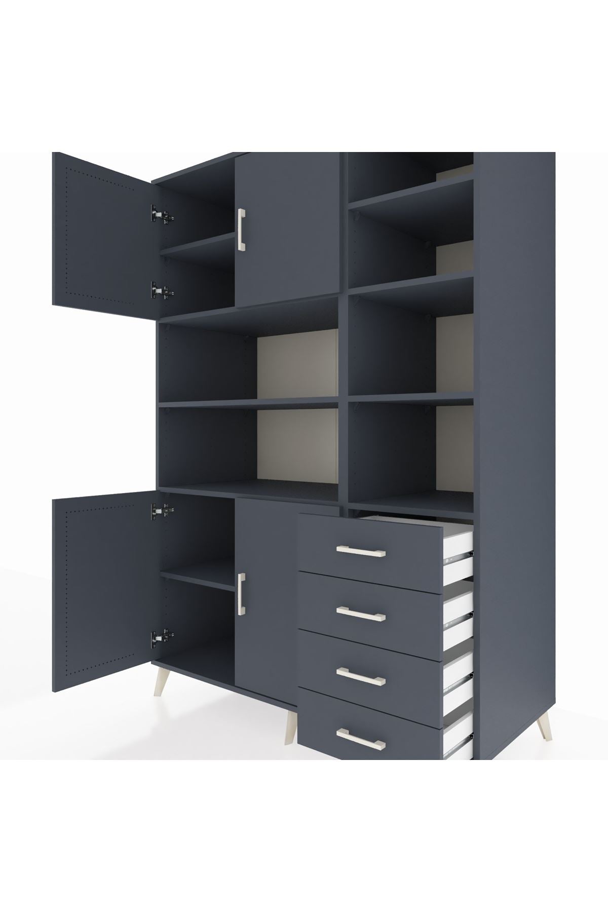 Kronos Dolap 9 Raflı 4 Çekmeceli 4 Kapaklı 132x59x195 Antrasit-Antrasit/Antrasit