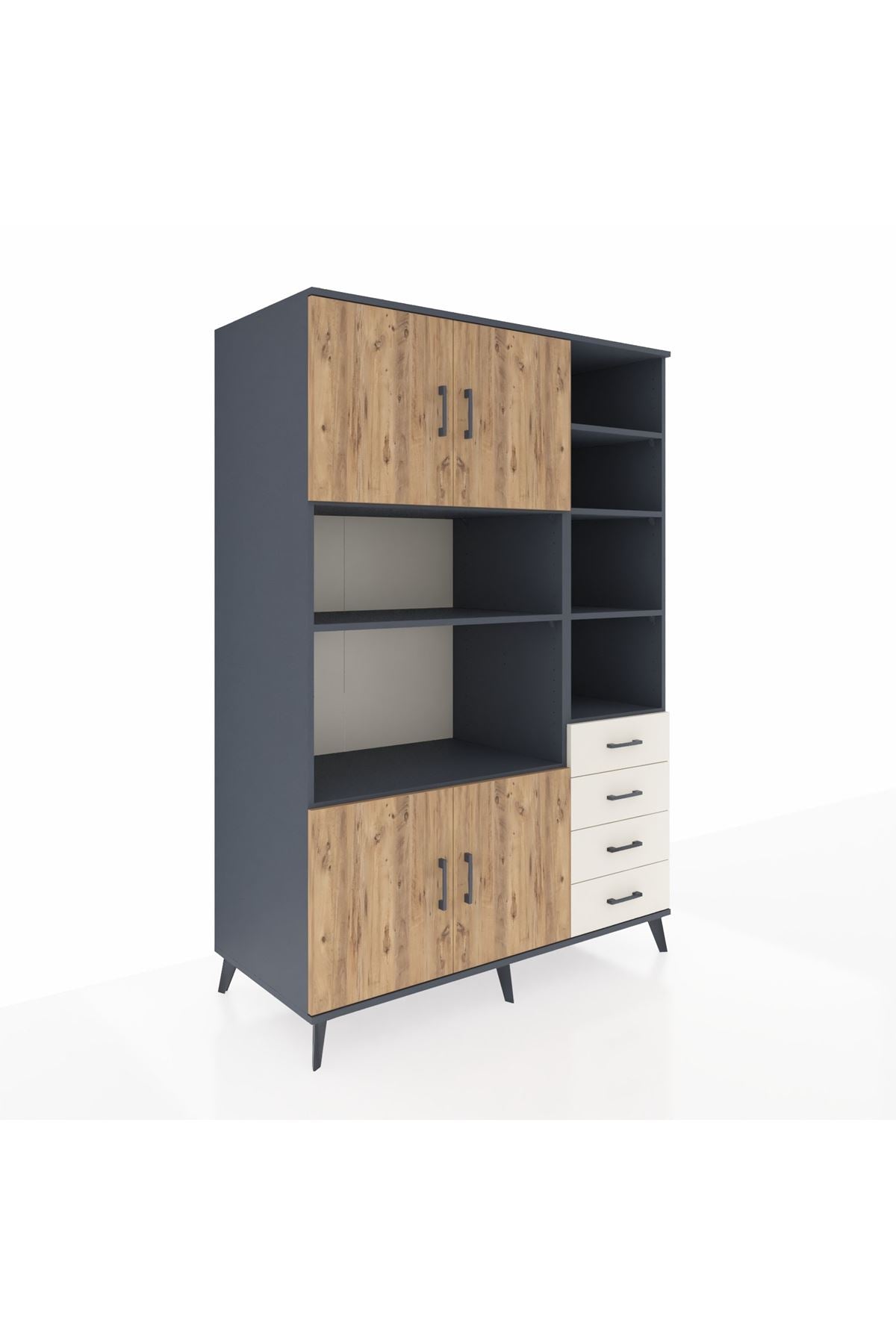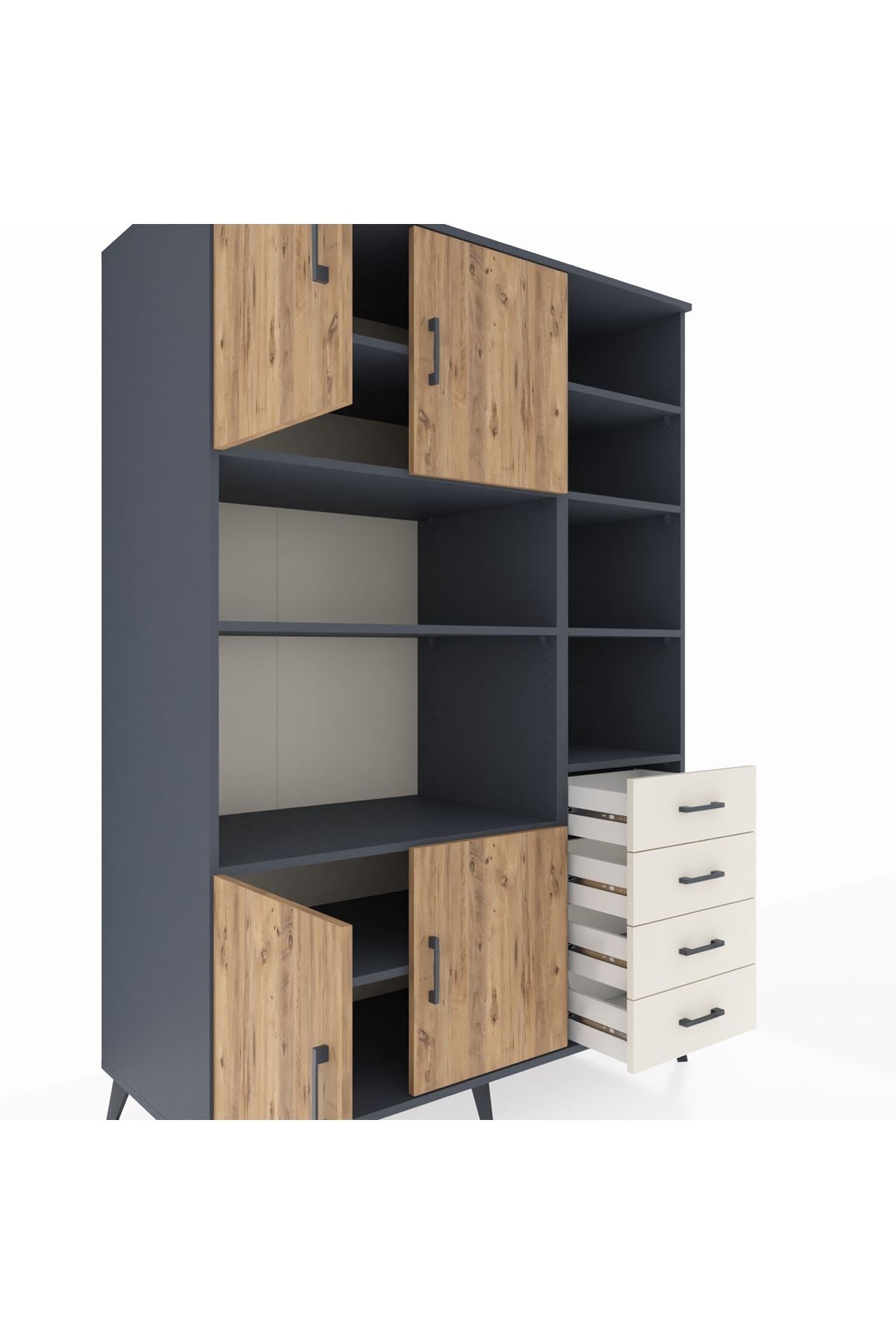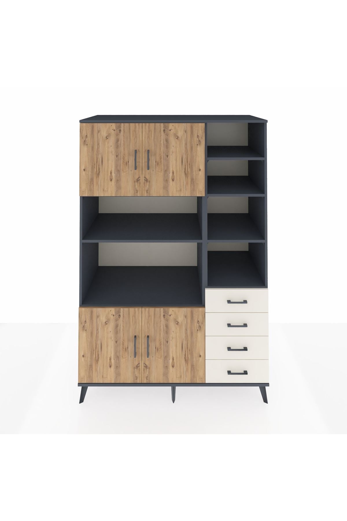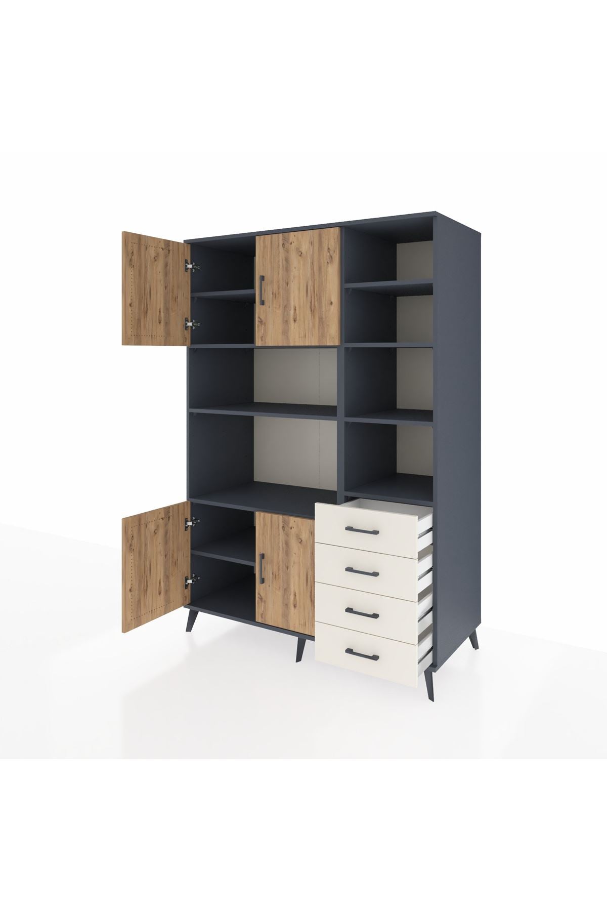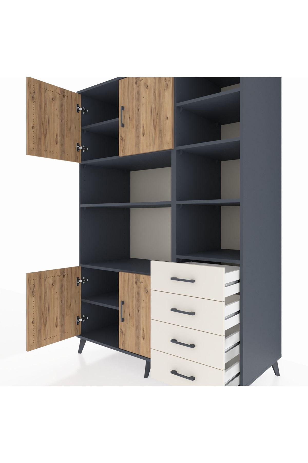 Kronos Dolap 9 Raflı 4 Çekmeceli 4 Kapaklı 132x59x195 Antrasit-Çam/Aytaşı