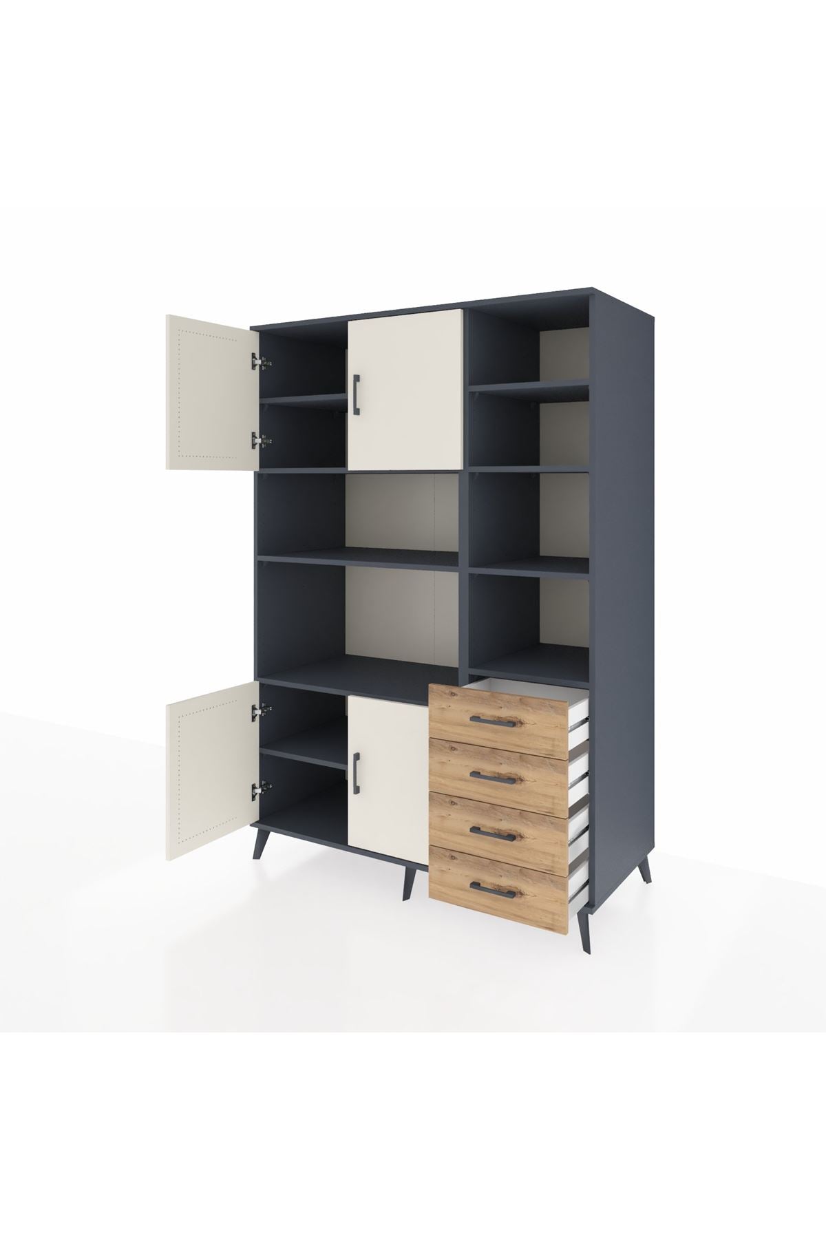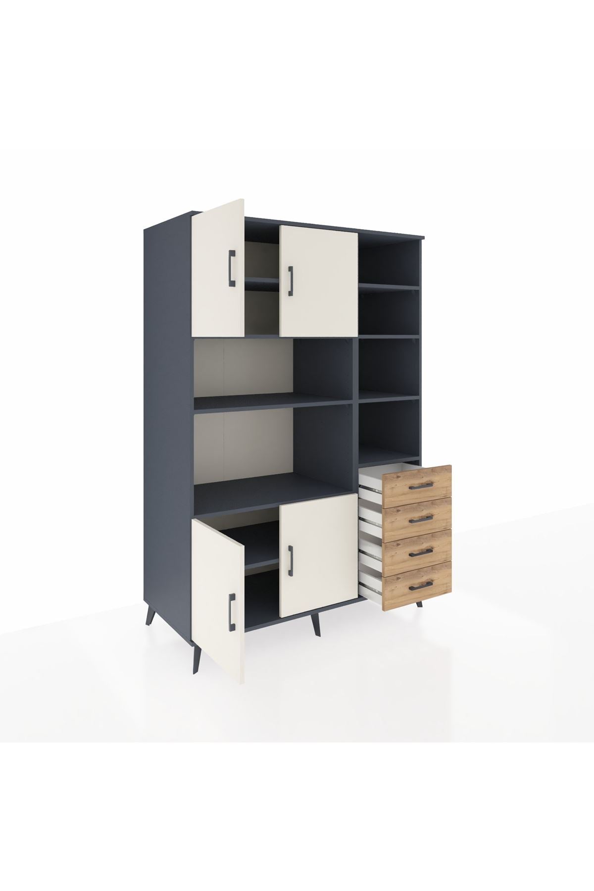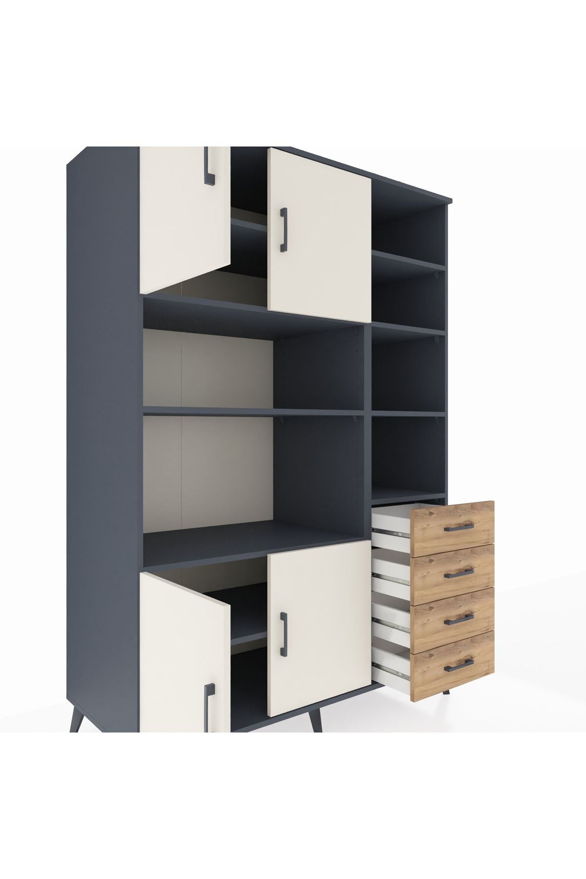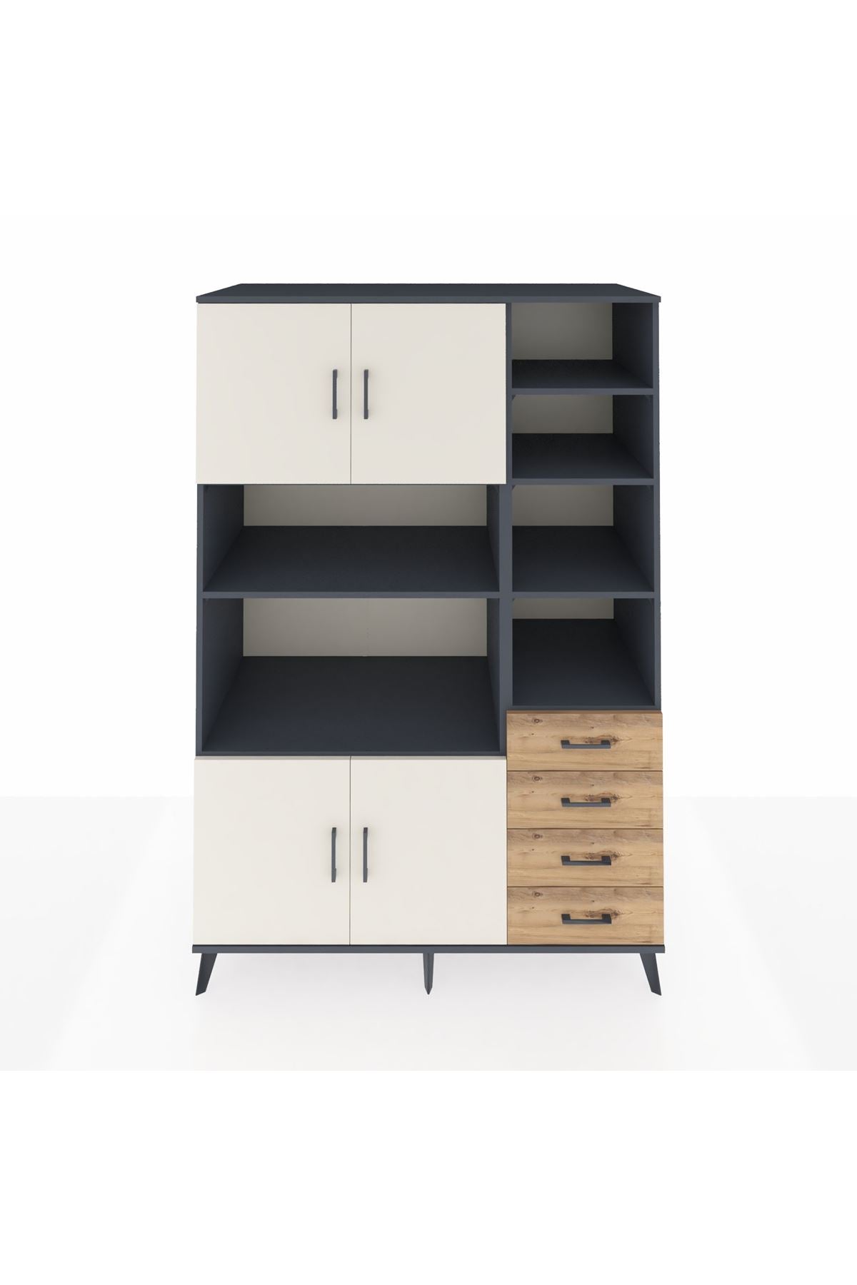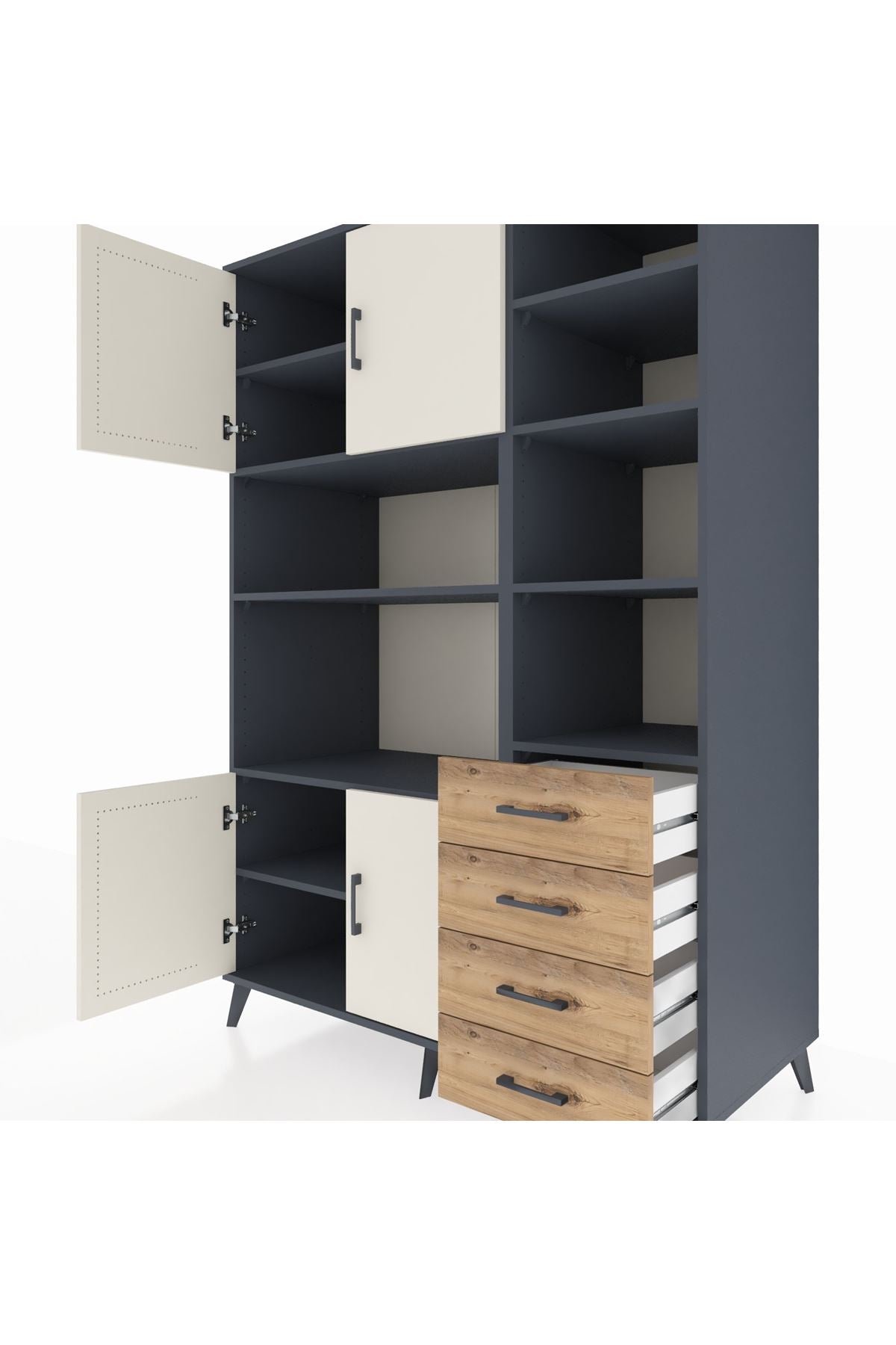 Kronos Dolap 9 Raflı 4 Çekmeceli 4 Kapaklı 132x59x195 Antrasit-Aytaşı/Çam
