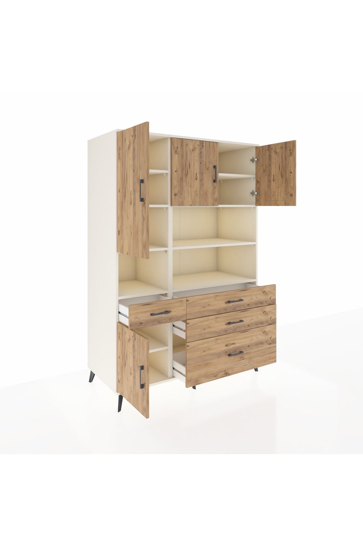 Türkiye’de üretilen bu çok amaçlı dolapta Kastamonu Entegre 1. sınıf suntalam kullanılmıştır. Metal ayaklar ve metal kulplar ile dayanıklılık ve modernlik öne çıkar. Benzer ürünlerin aksine, 1.2 mm kalınlığında kenar bantları ekstra sağlamlık ve uzun ömür sunar.