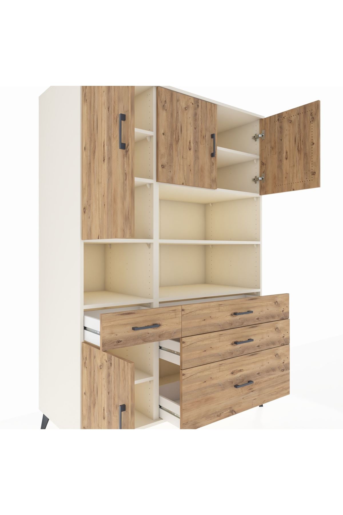 Kronos Dolap 9 Raflı 4 Çekmeceli 4 Kapaklı 132x59x195 Aytaşı-Çam/Çam