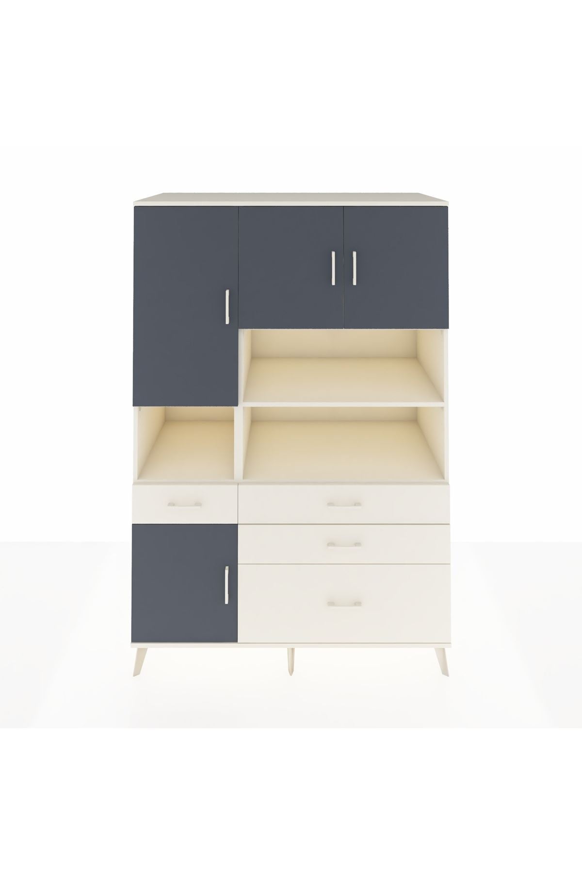 Ürün Adı: Kronos Dolap 9 Raflı 4 Çekmeceli 4 Kapaklı 132x59x195 Aytaşı-Antrasit/Aytaşı