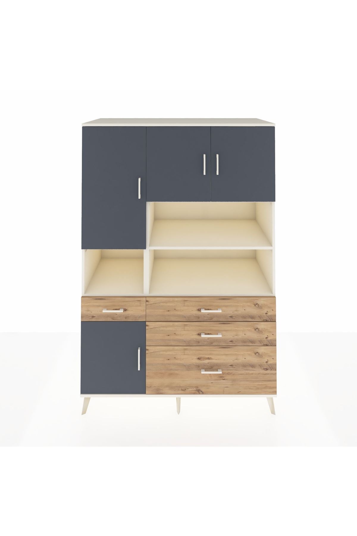 Metal ayak ve metal kulplarıyla hem şıklığı hem dayanıklılığı bir arada sunar 💪 Kastamonu Entegre 1. sınıf suntalam gövdesi, 1.2 mm kalınlığında kenar bandı ile uzun yıllar formunu korur 🛡️ Aytaşı ve antrasit/çam renk kombinasyonu sayesinde bulunduğu ortama modern bir hava kazandırır 🎨