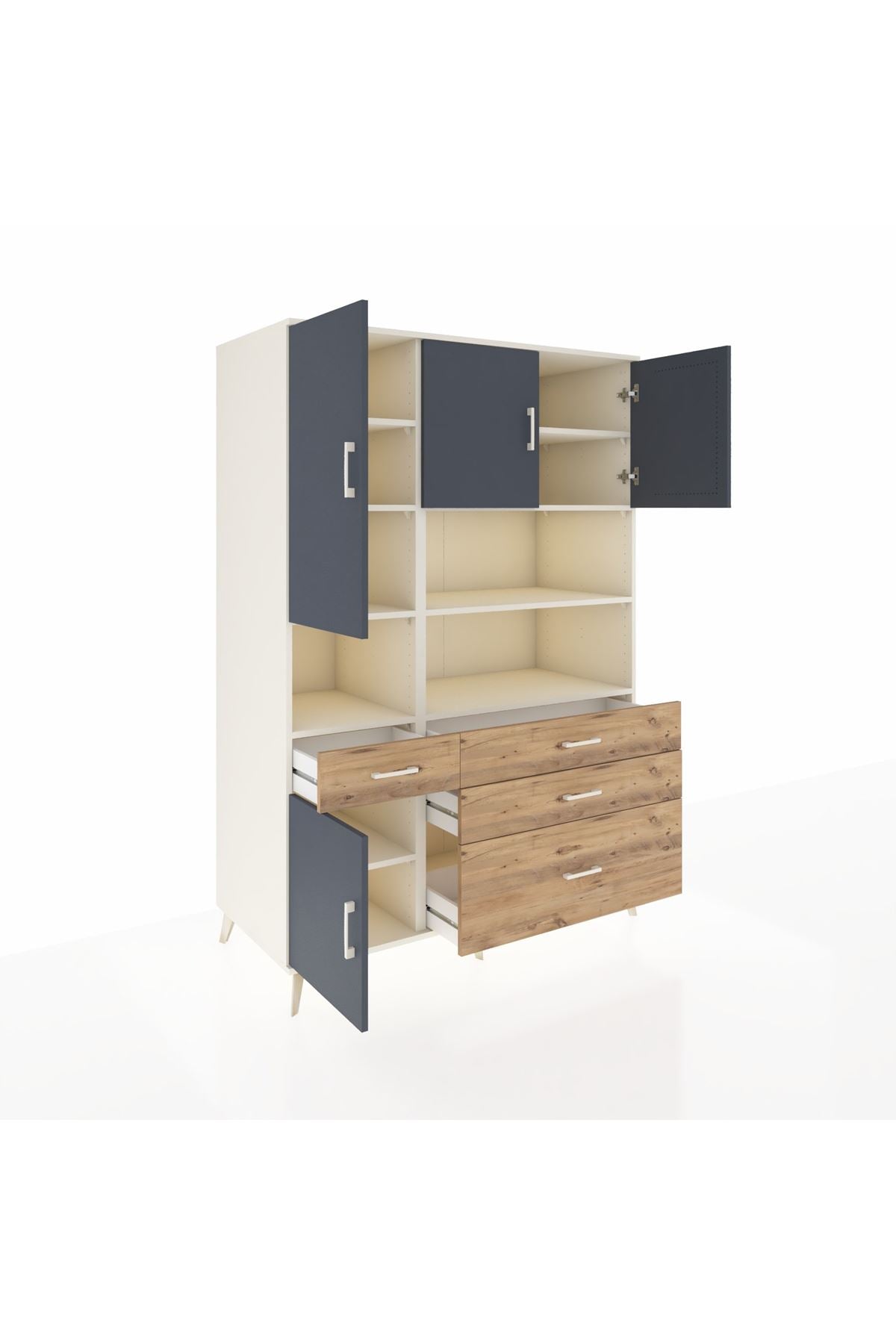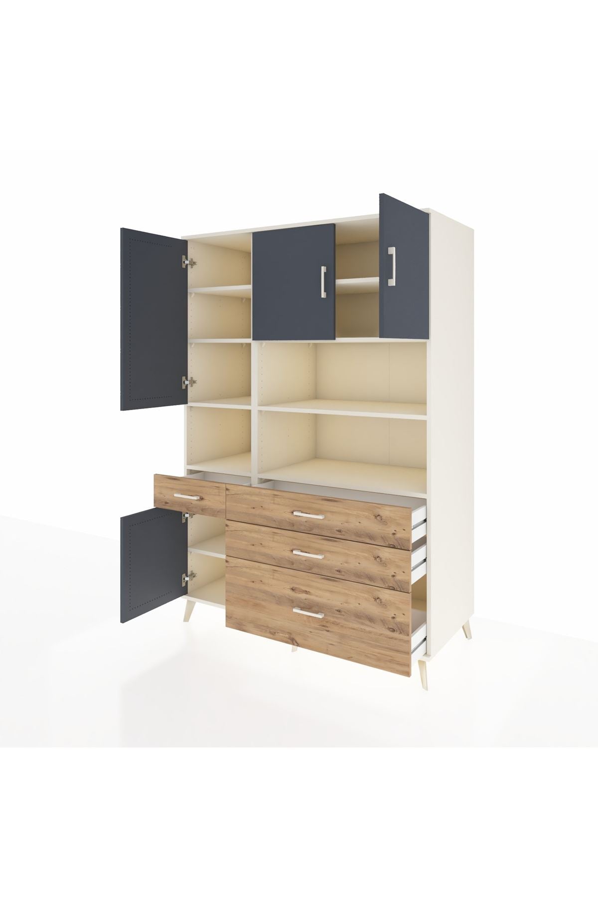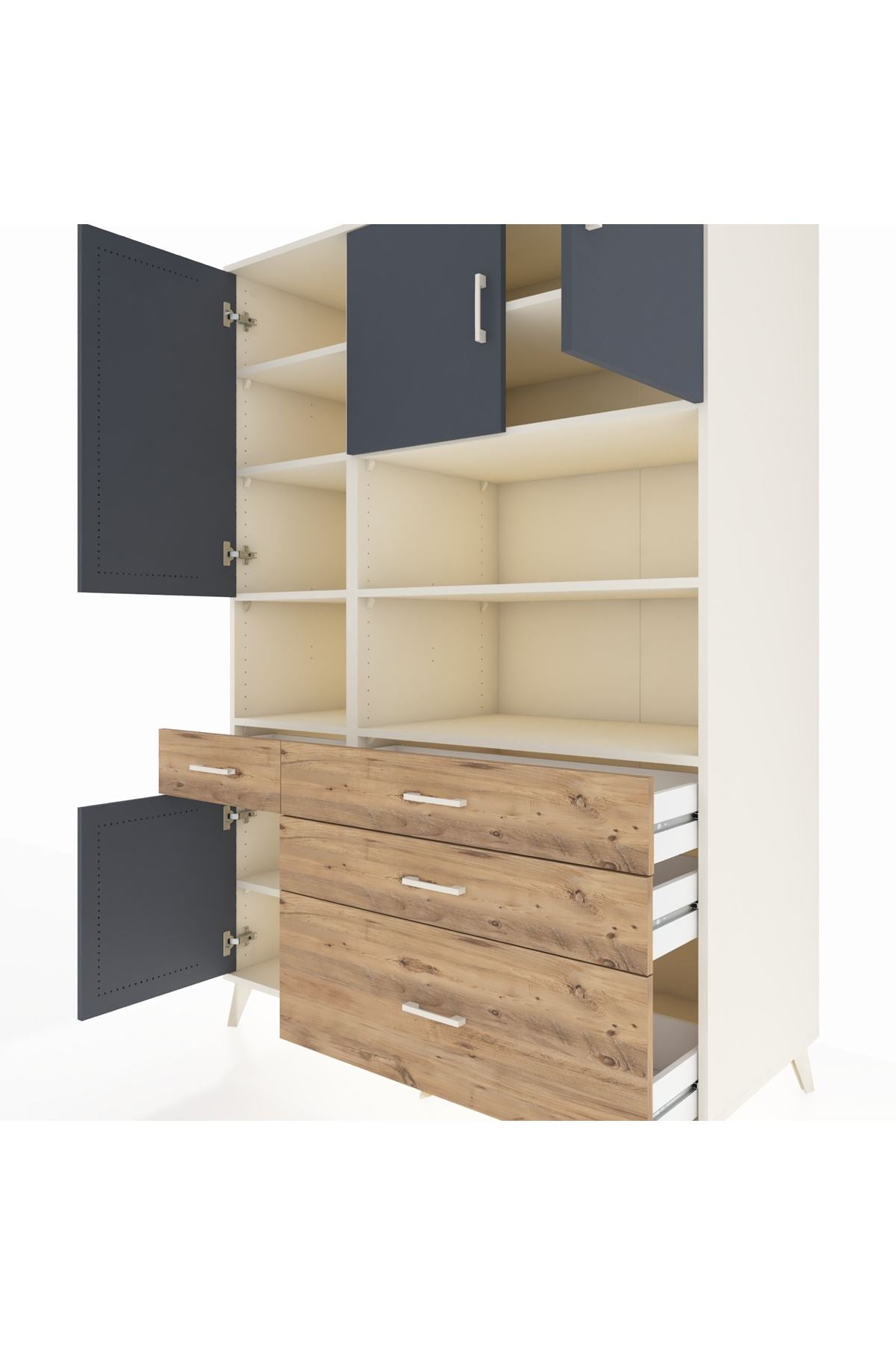 Kronos Dolap 9 Raflı 4 Çekmeceli 4 Kapaklı 132x59x195 Aytaşı-Antrasit/Çam