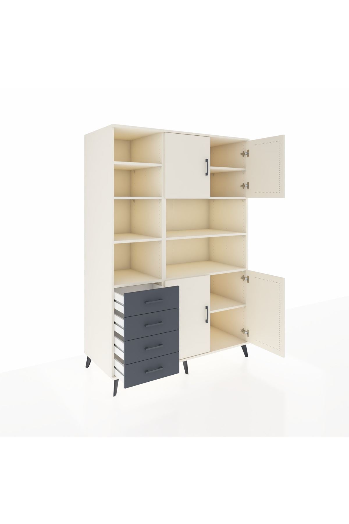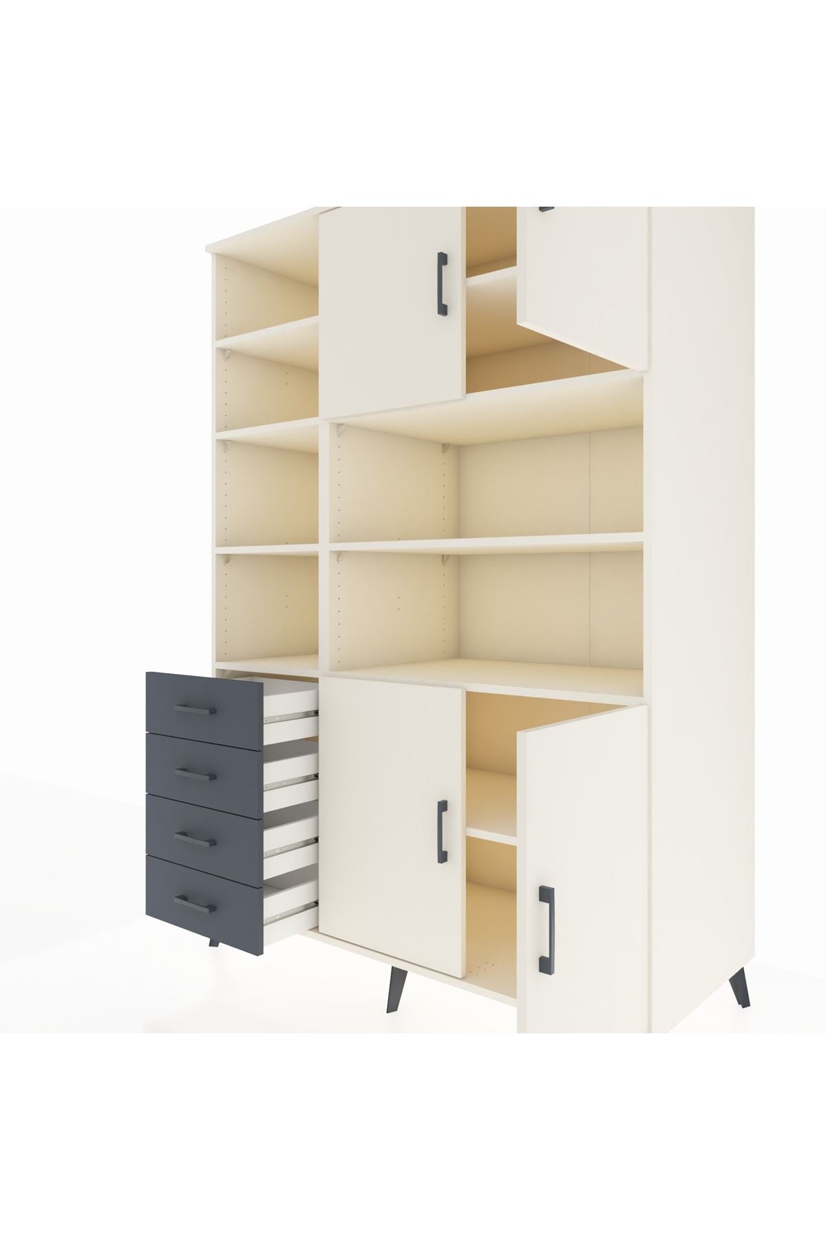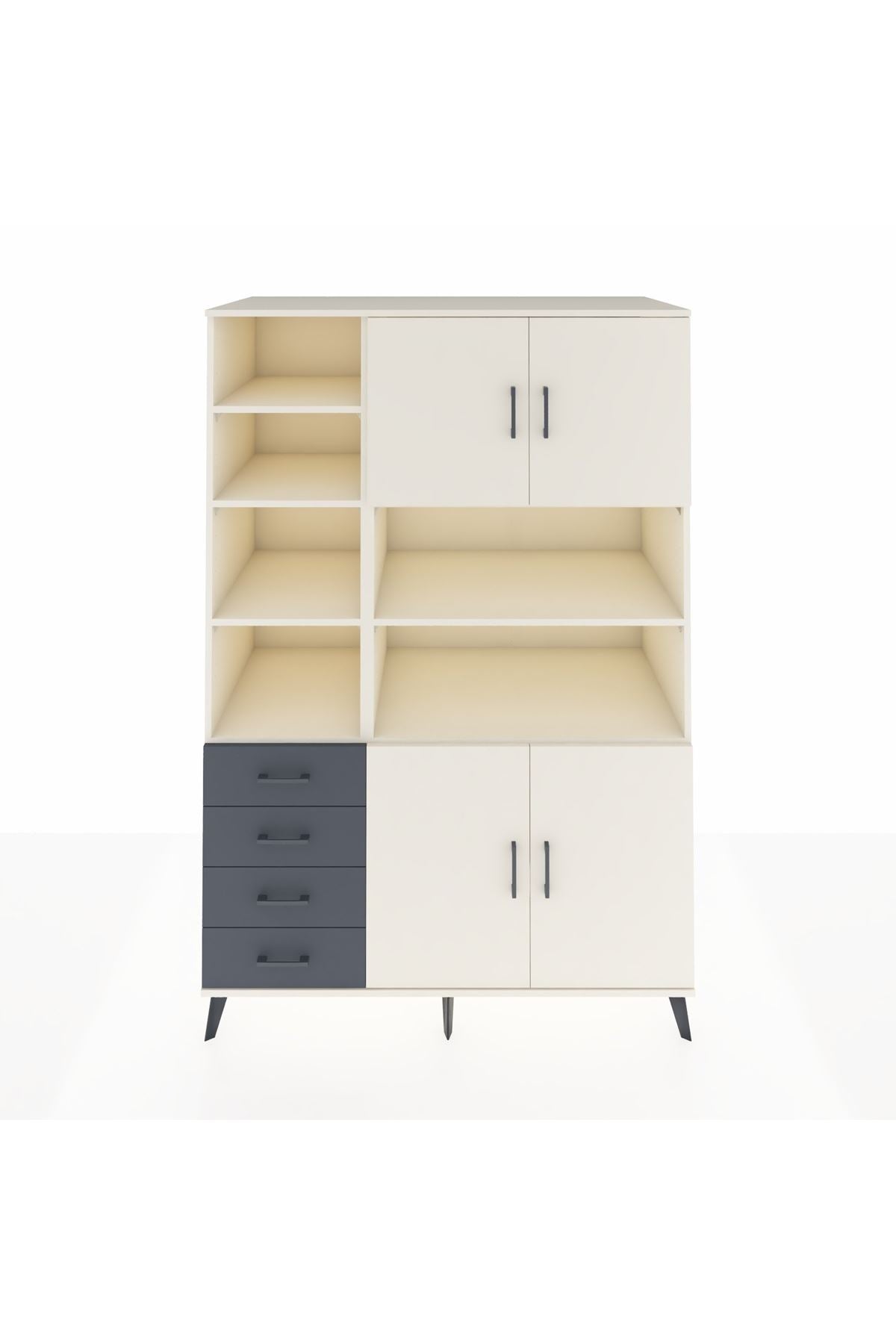 9 raf, 4 çekmece ve 4 kapaklı tasarımıyla her türlü ihtiyacınıza cevap verir Kıyafet, ev tekstili, ofis malzemeleri ya da mutfak eşyalarınızı düzenli ve erişilebilir şekilde saklamanızı sağlar 🧥📚 Metal ayaklar ve metal kulplar hem sağlamlık hem de estetik bir görünüm sunar 🦾