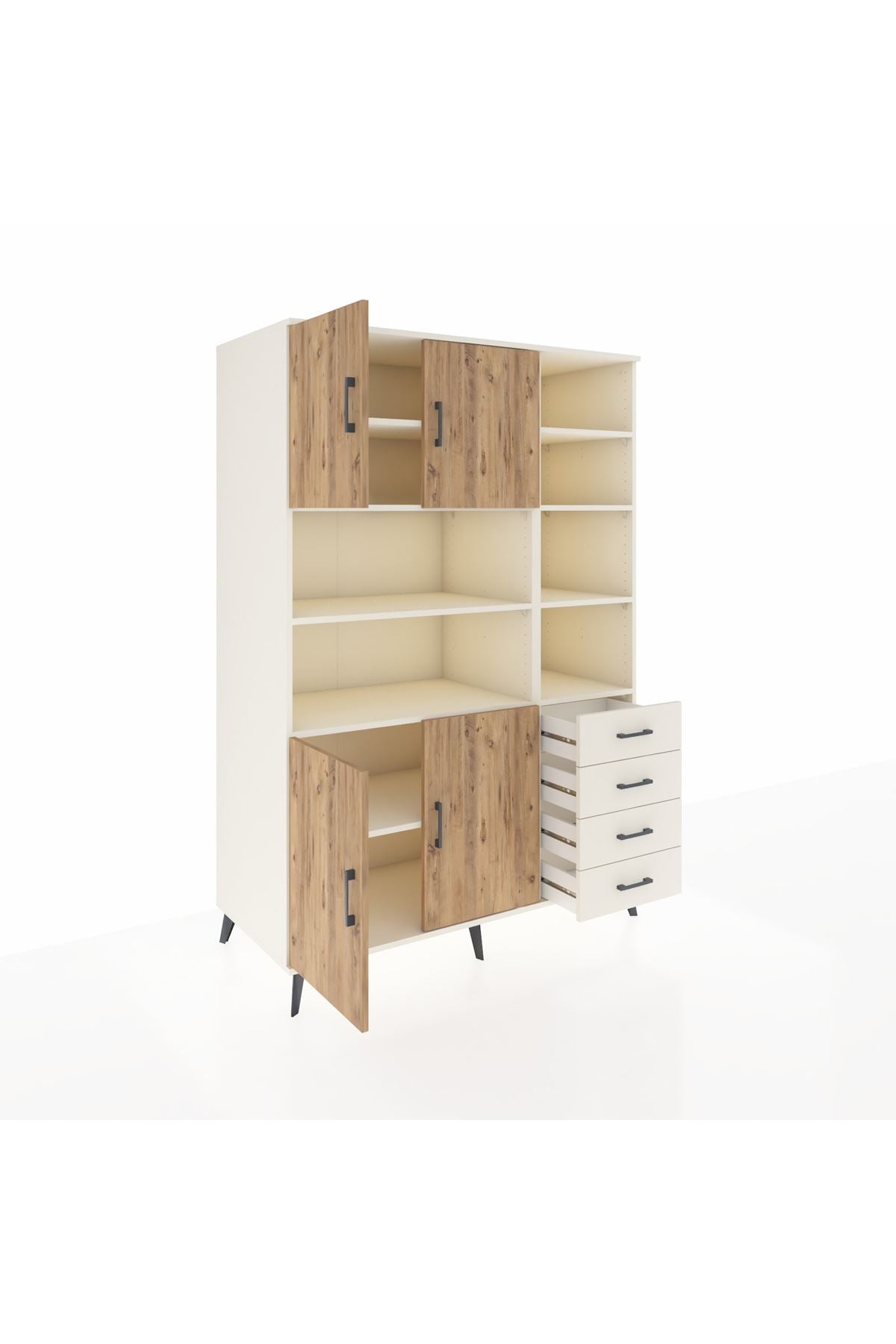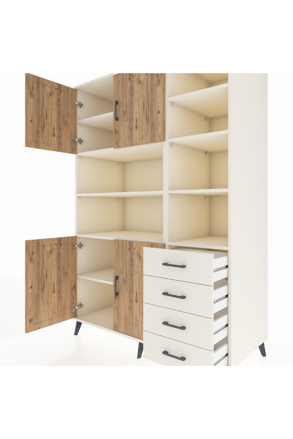 Kronos Dolap 9 Raflı 4 Çekmeceli 4 Kapaklı 132x59x195 Aytaşı-Çam/Aytaşı