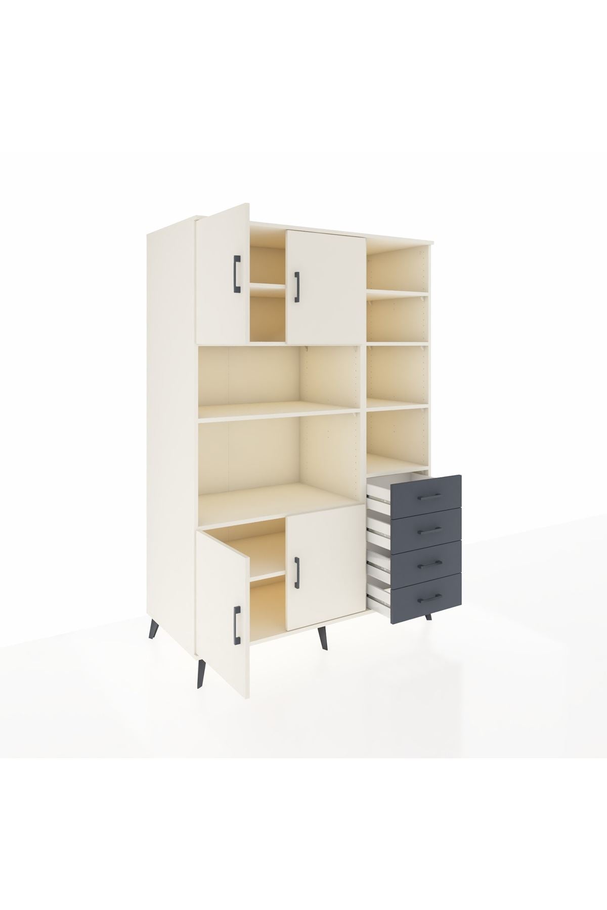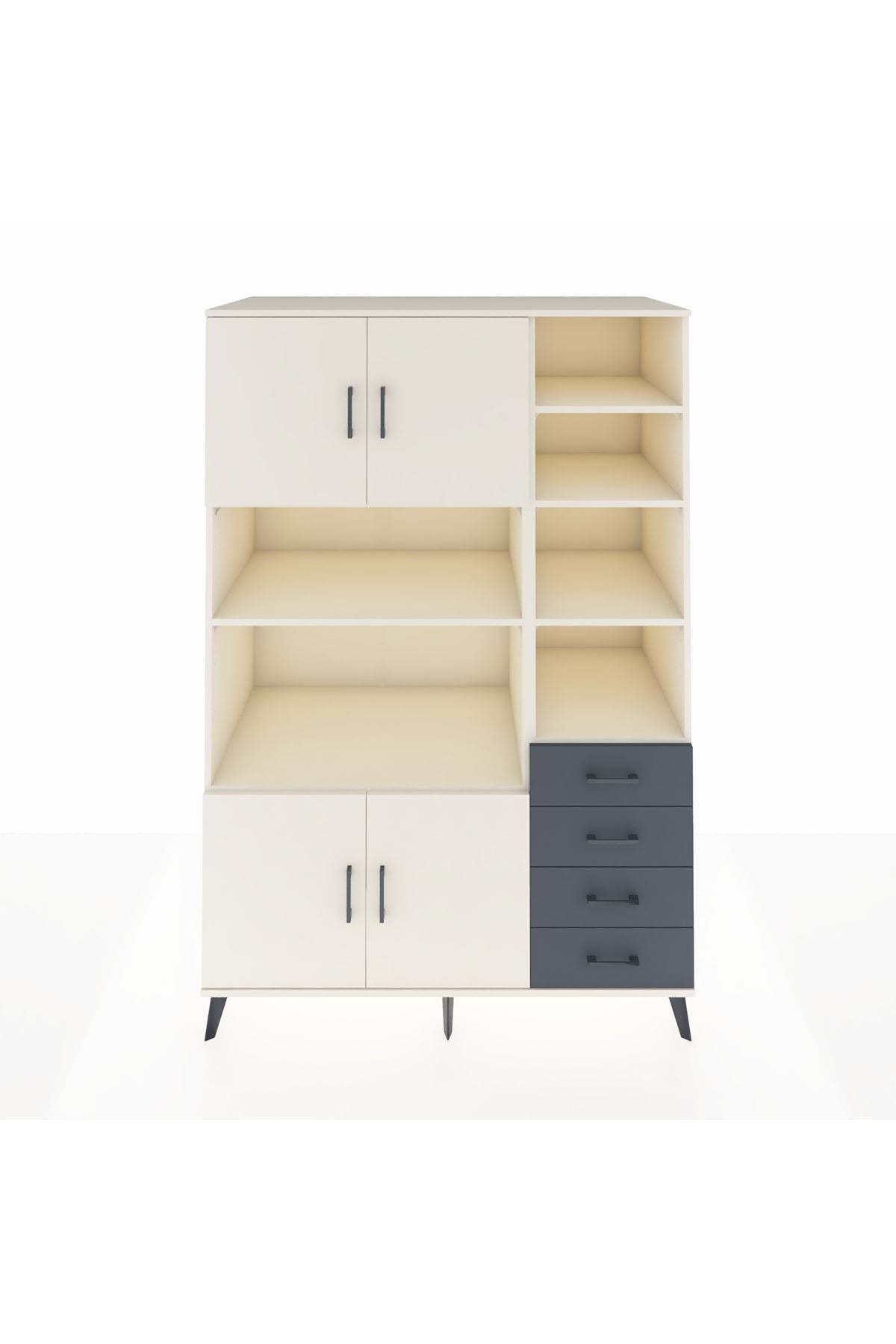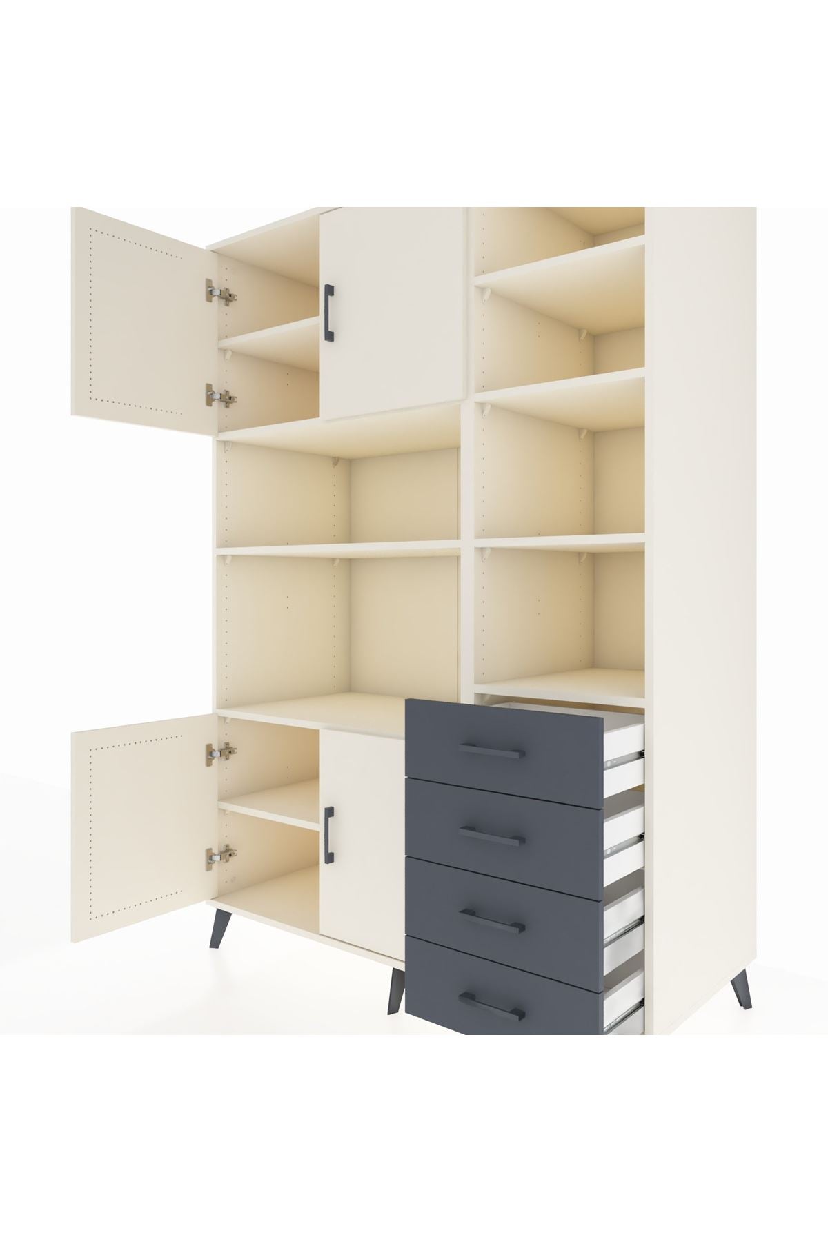 Kronos Dolap 9 Raflı 4 Çekmeceli 4 Kapaklı 132x59x195 Aytaşı-Aytaşı/Antrasit