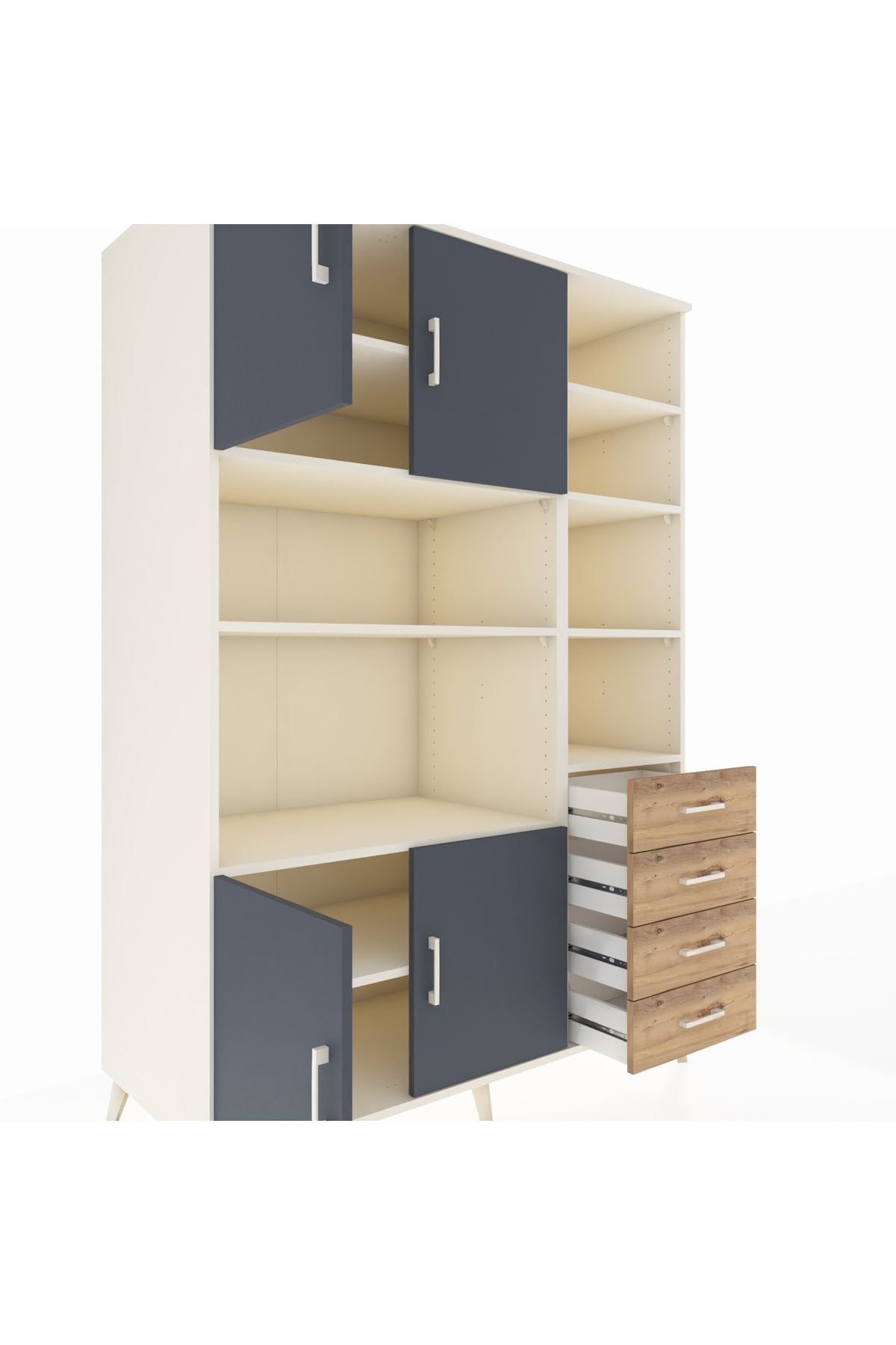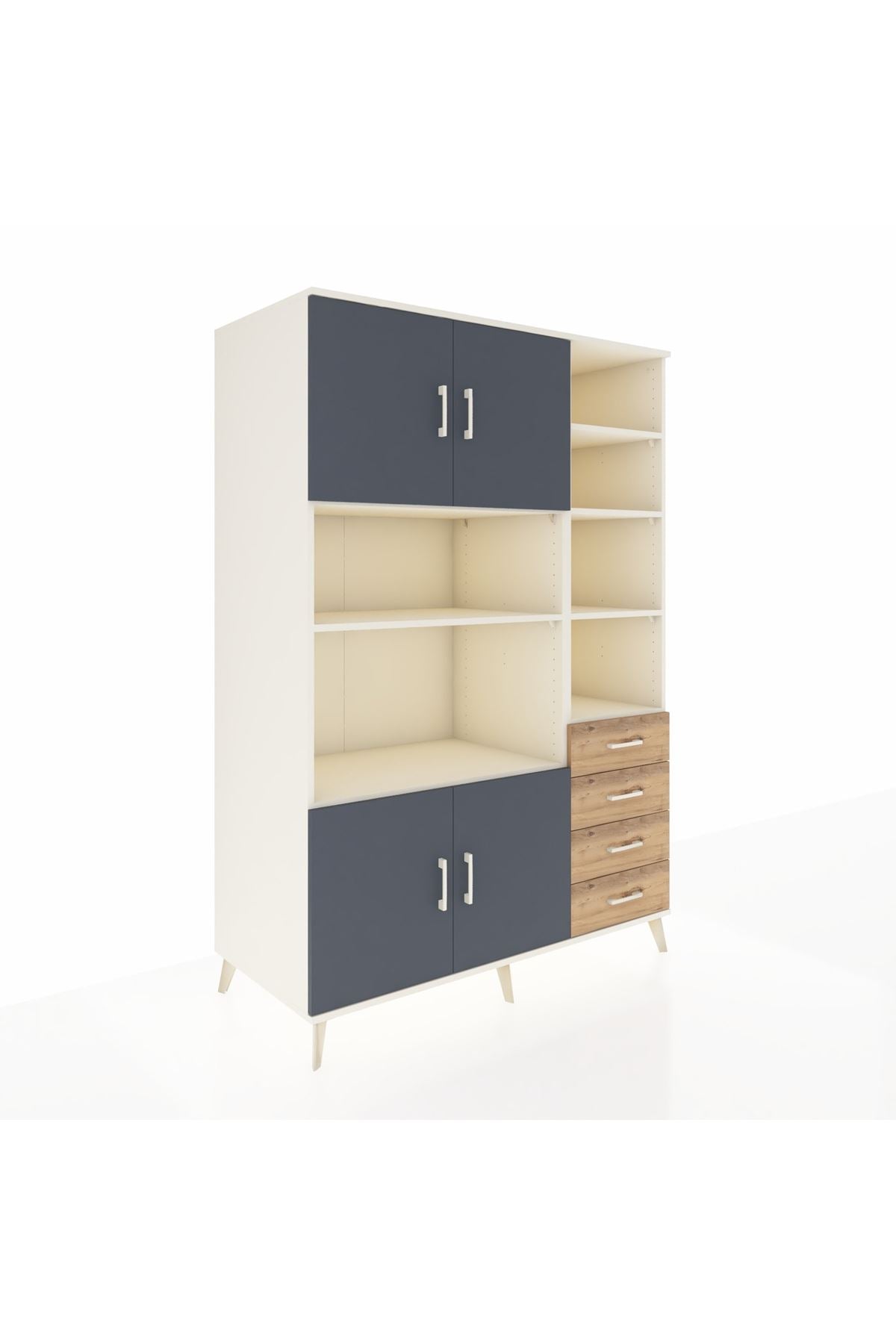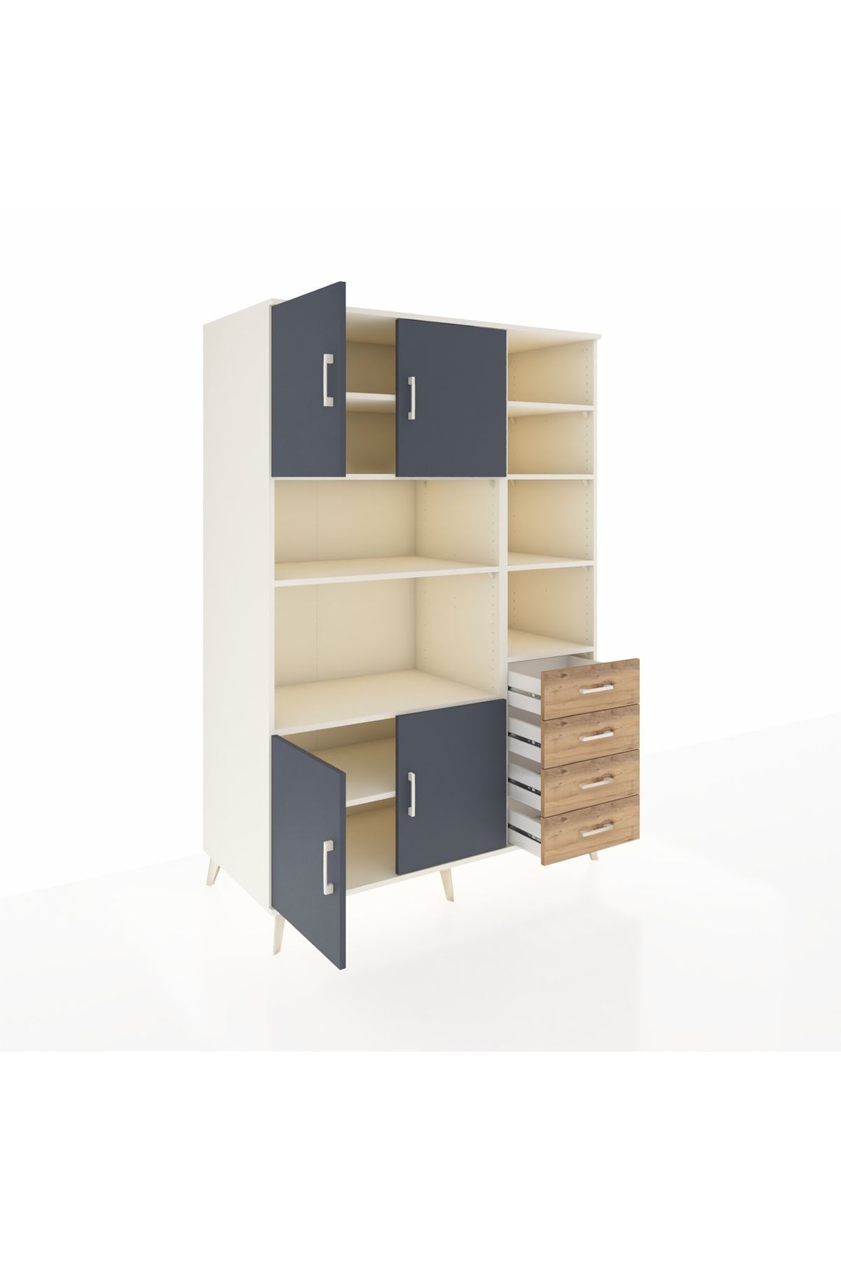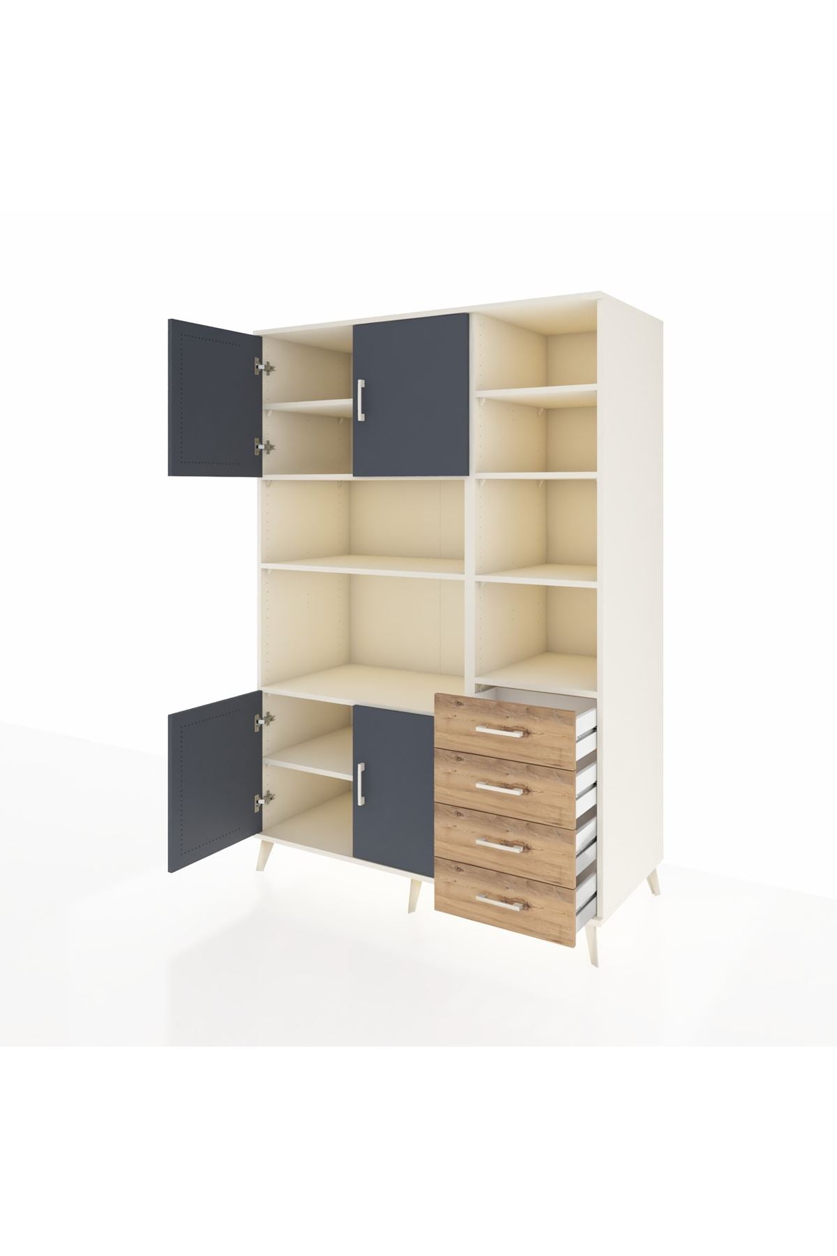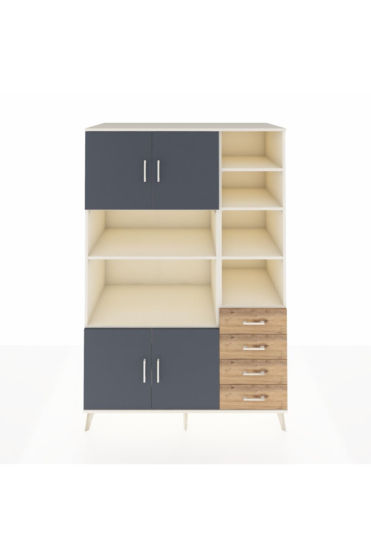 Kronos Dolap 9 Raflı 4 Çekmeceli 4 Kapaklı 132x59x195 Aytaşı-Antrasit/Çam