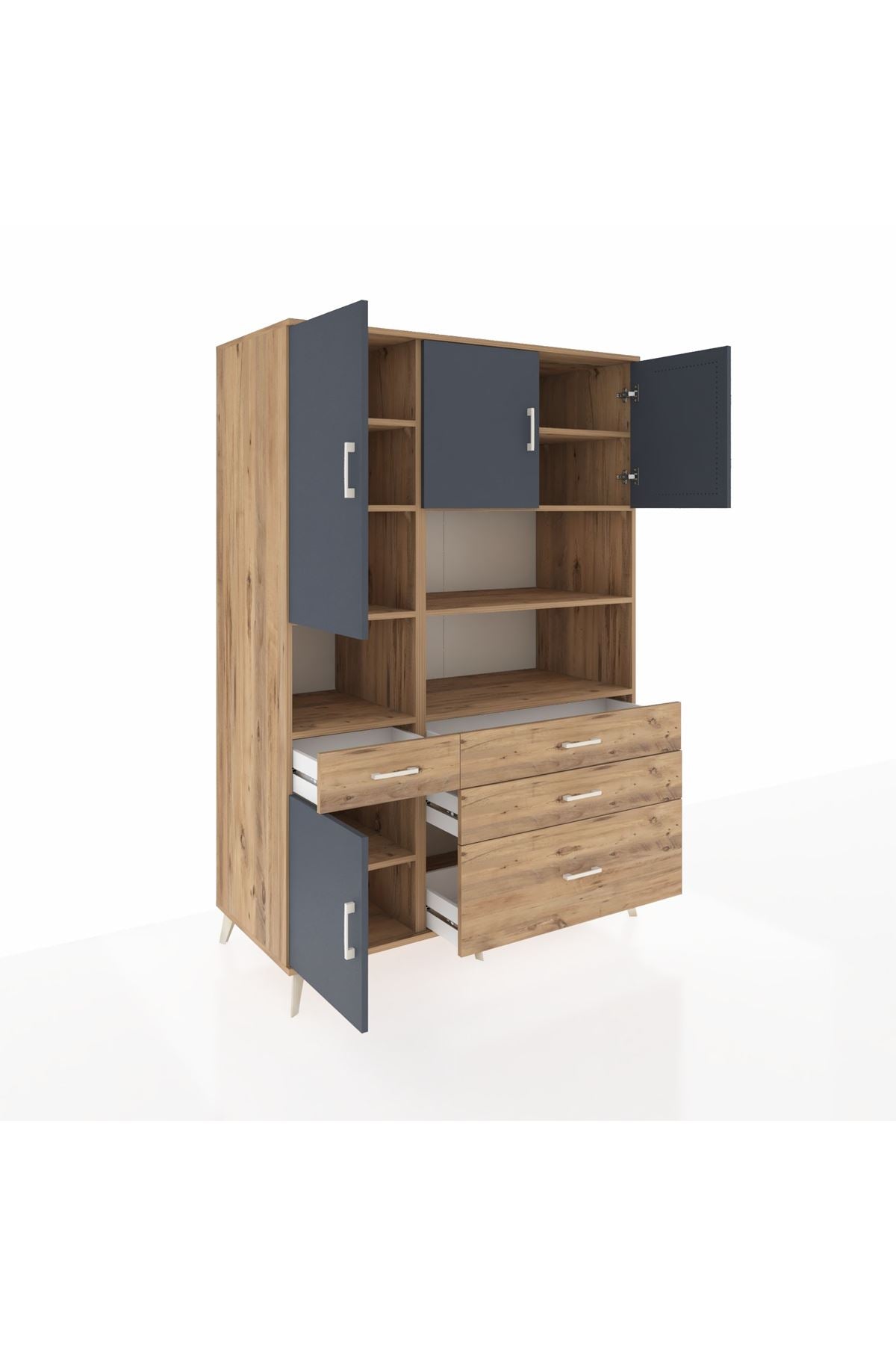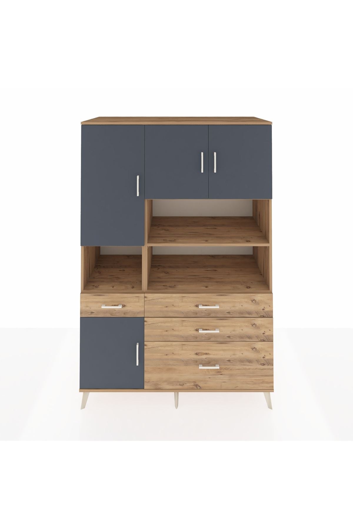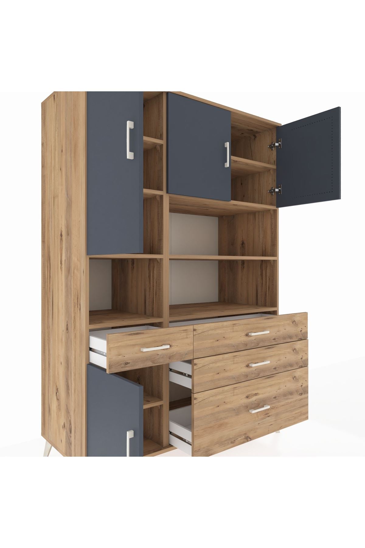 9 adet geniş rafı, 4 kullanışlı çekmecesi ve 4 kapaklı bölümü ile hem düzen hem de estetik bir arada 🗄️