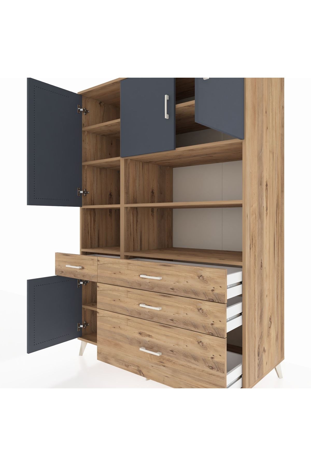 Kronos Dolap 9 Raflı 4 Çekmeceli 4 Kapaklı 132x59x195 Çam-Antrasit/Çam