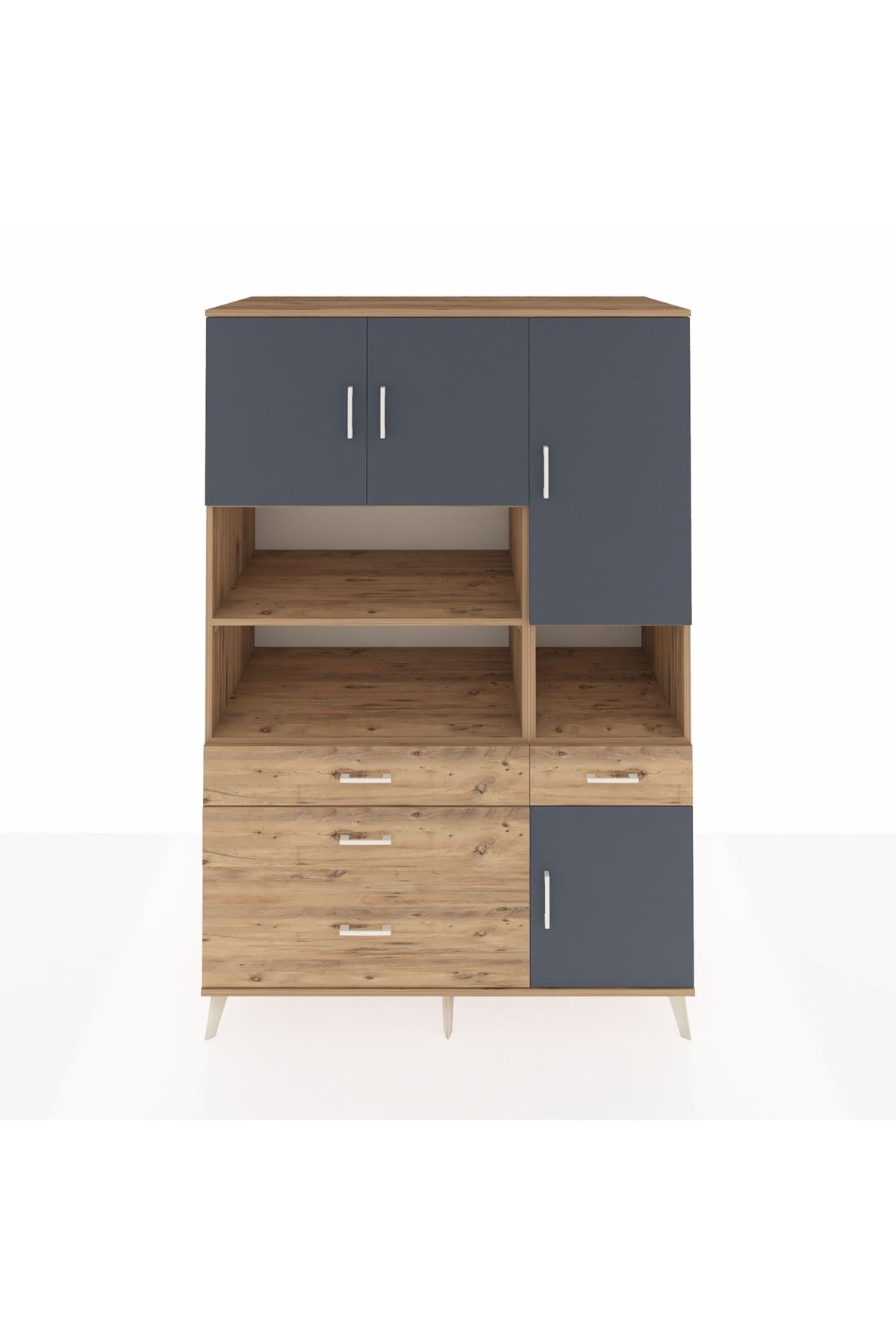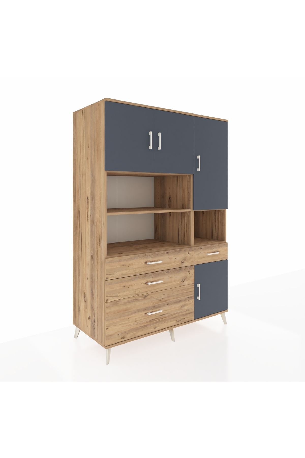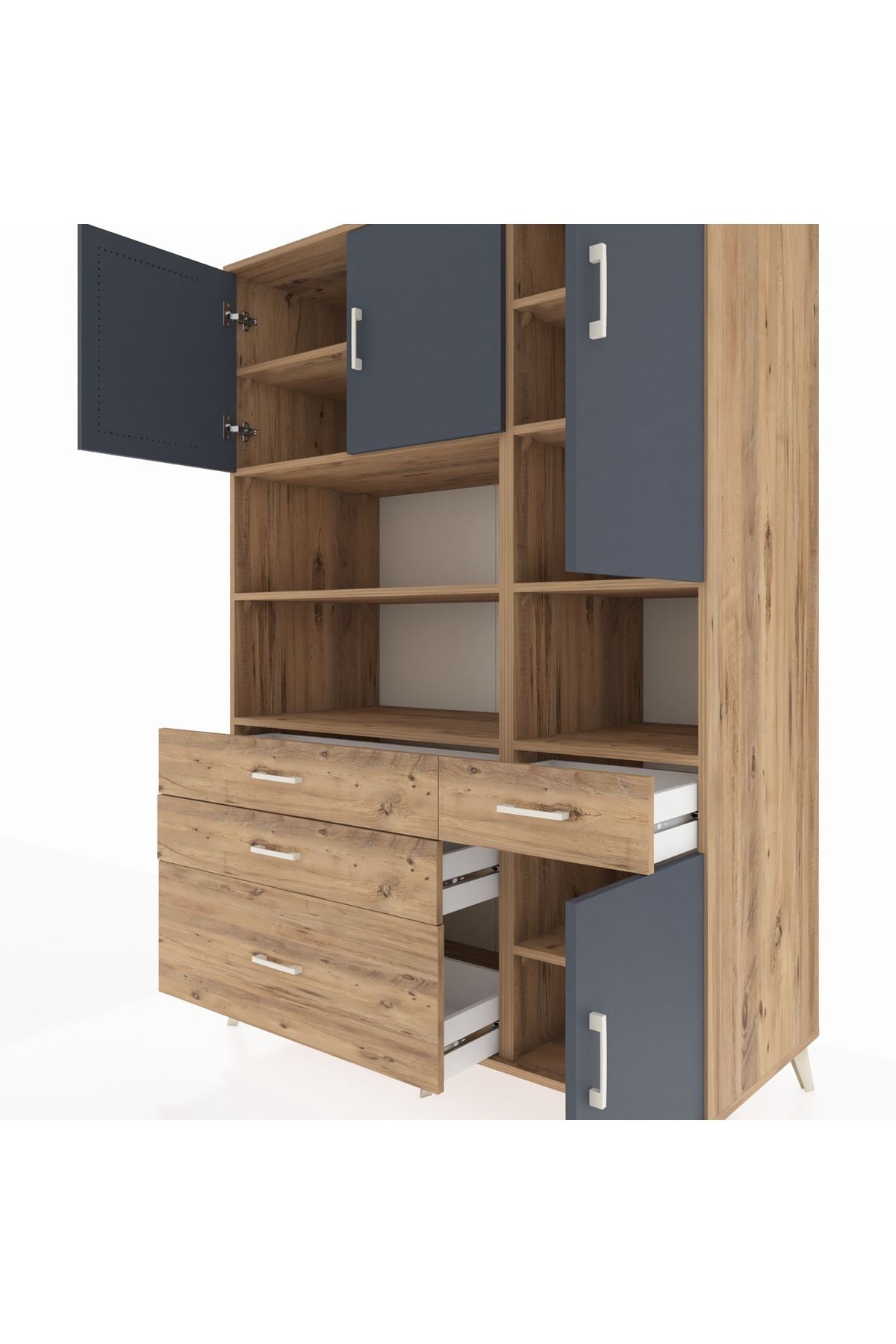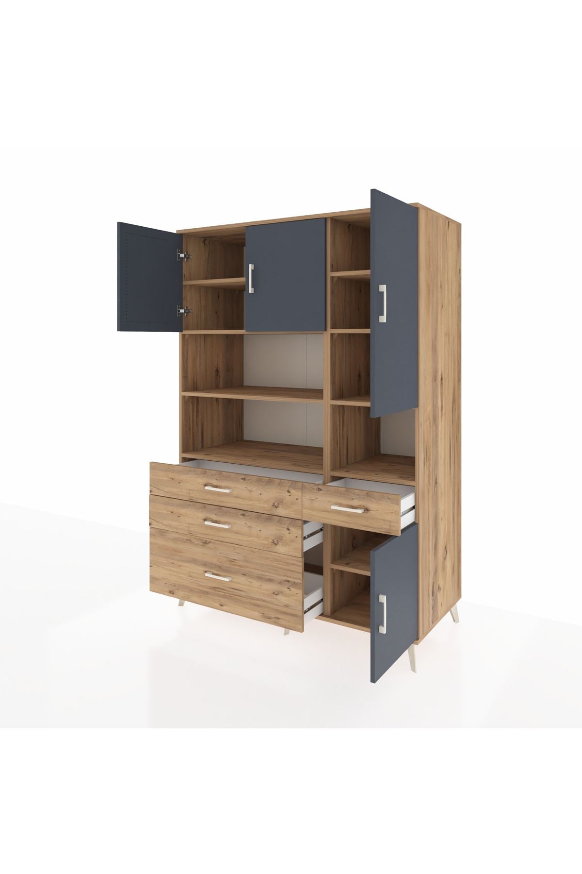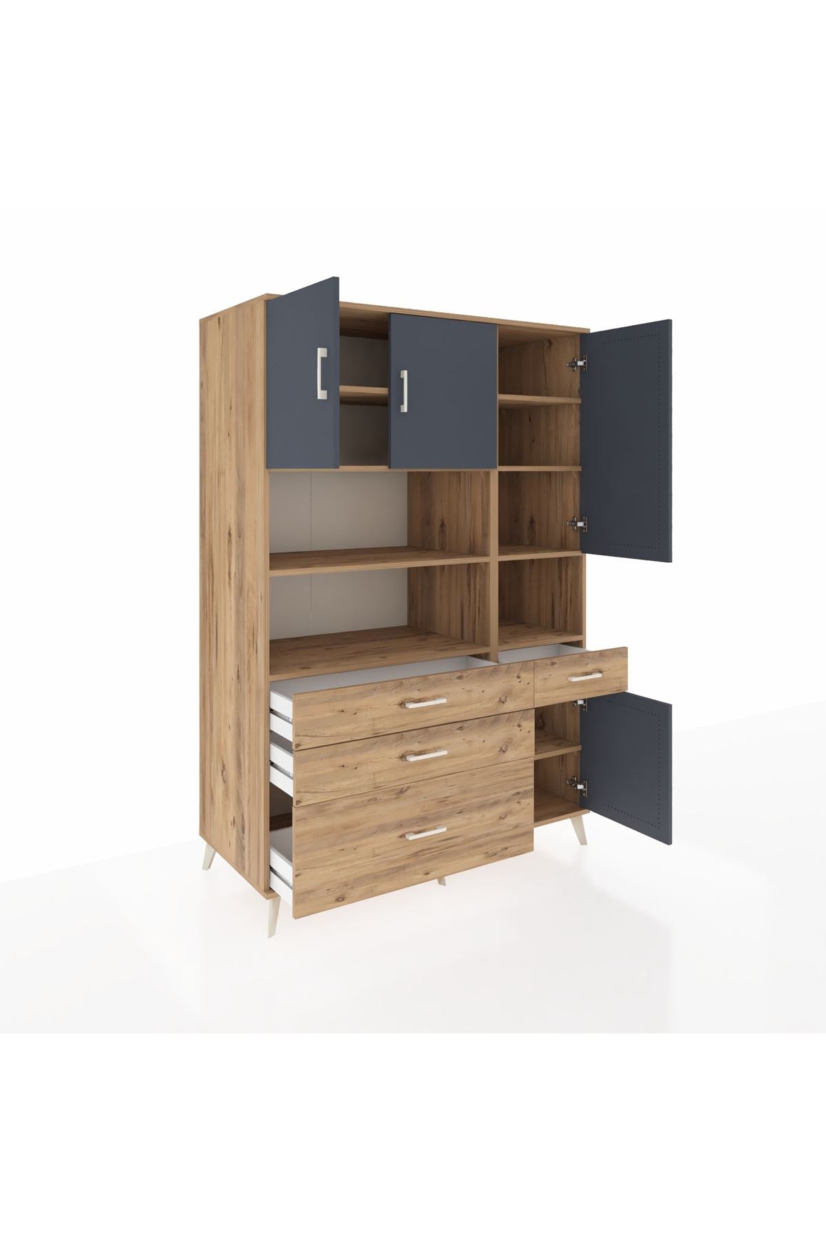 Kronos Dolap 9 Raflı 4 Çekmeceli 4 Kapaklı 132x59x195 Çam-Antrasit/Çam