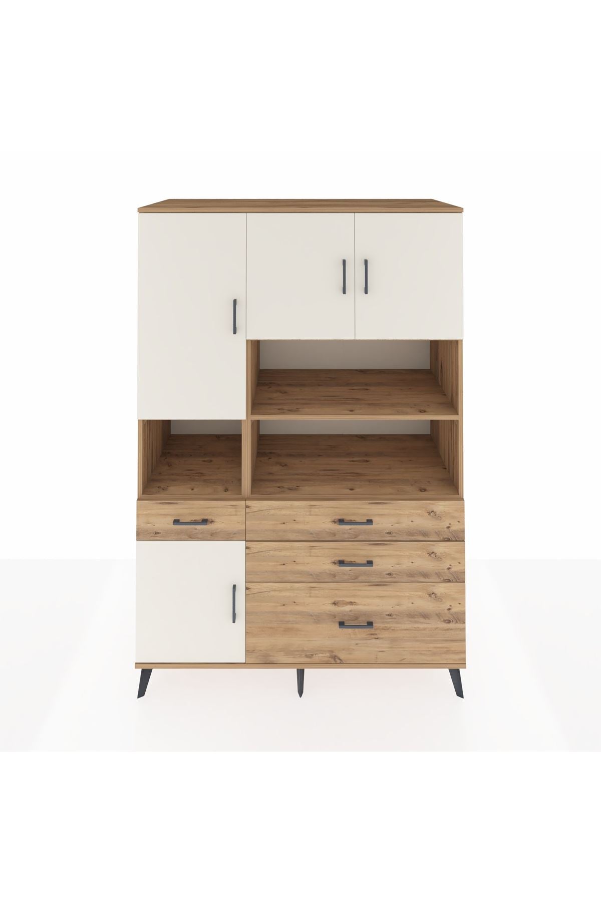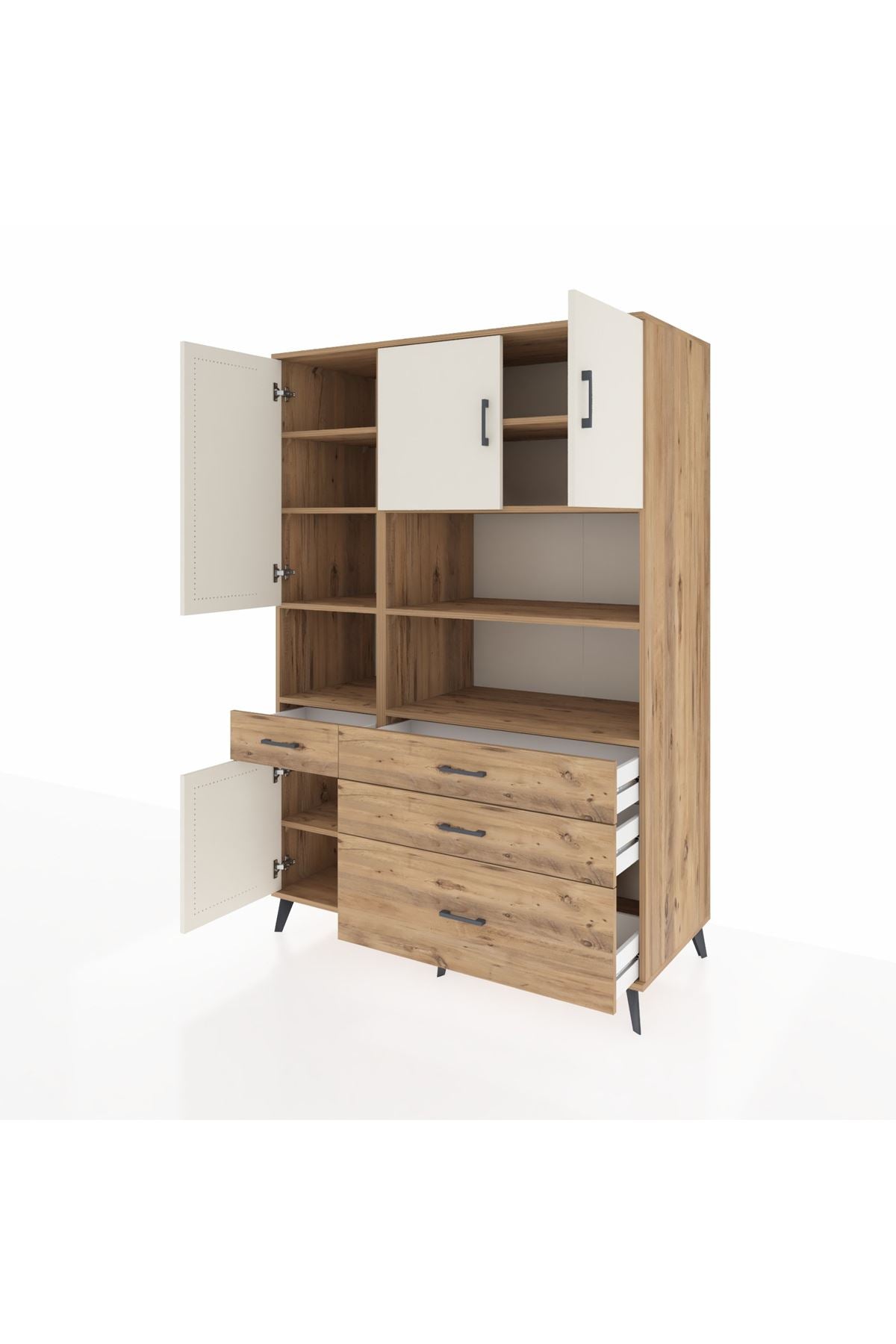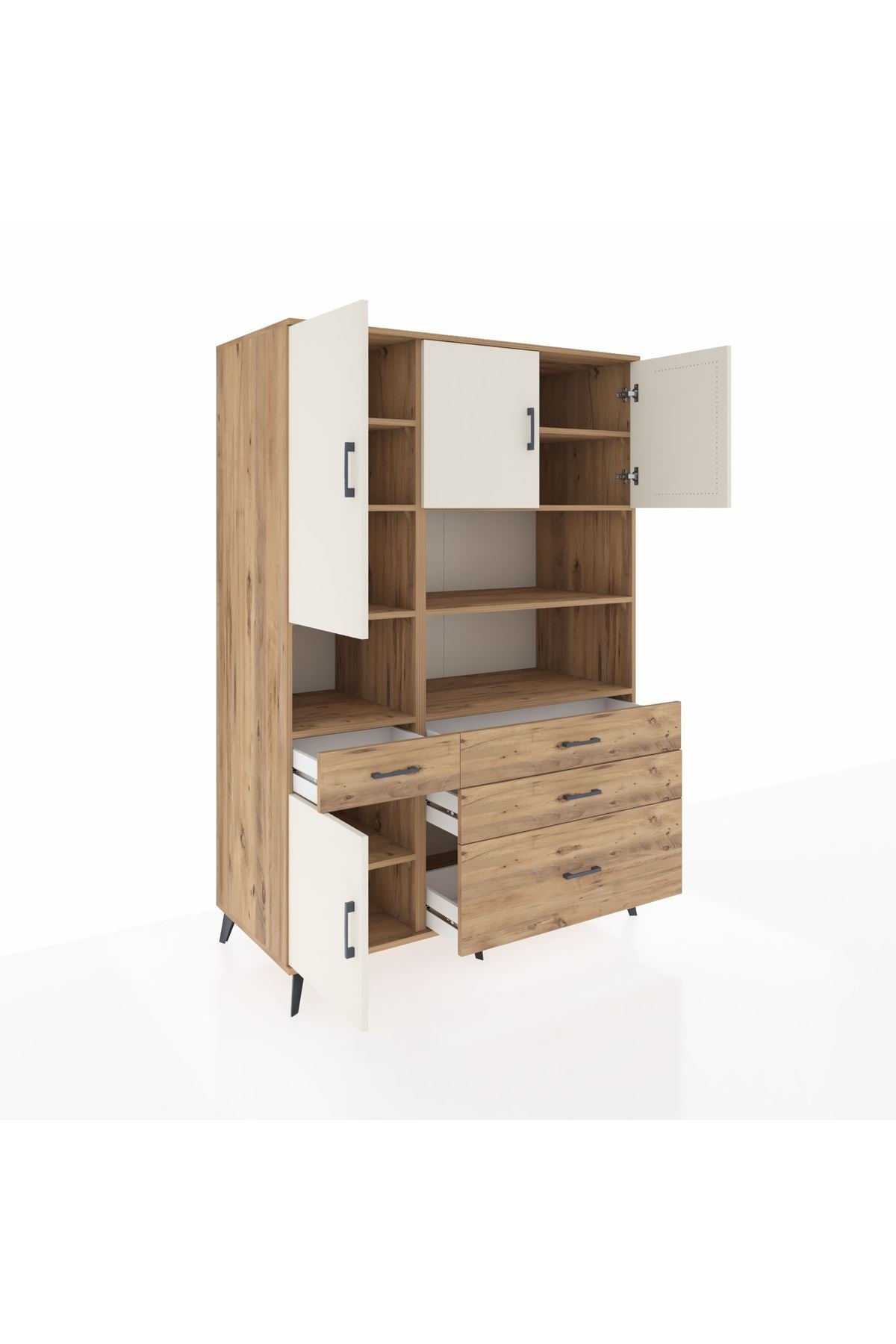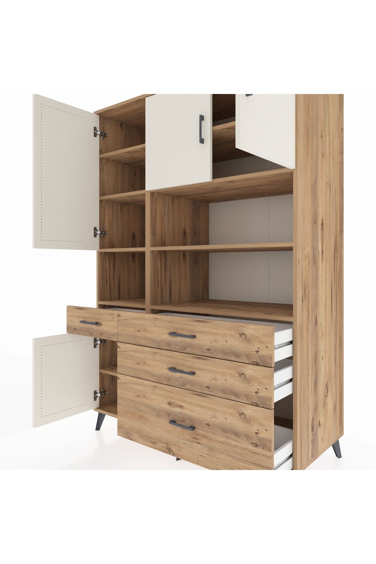 Kronos Dolap 9 Raflı 4 Çekmeceli 4 Kapaklı 132x59x195 Çam-Aytaşı/Çam