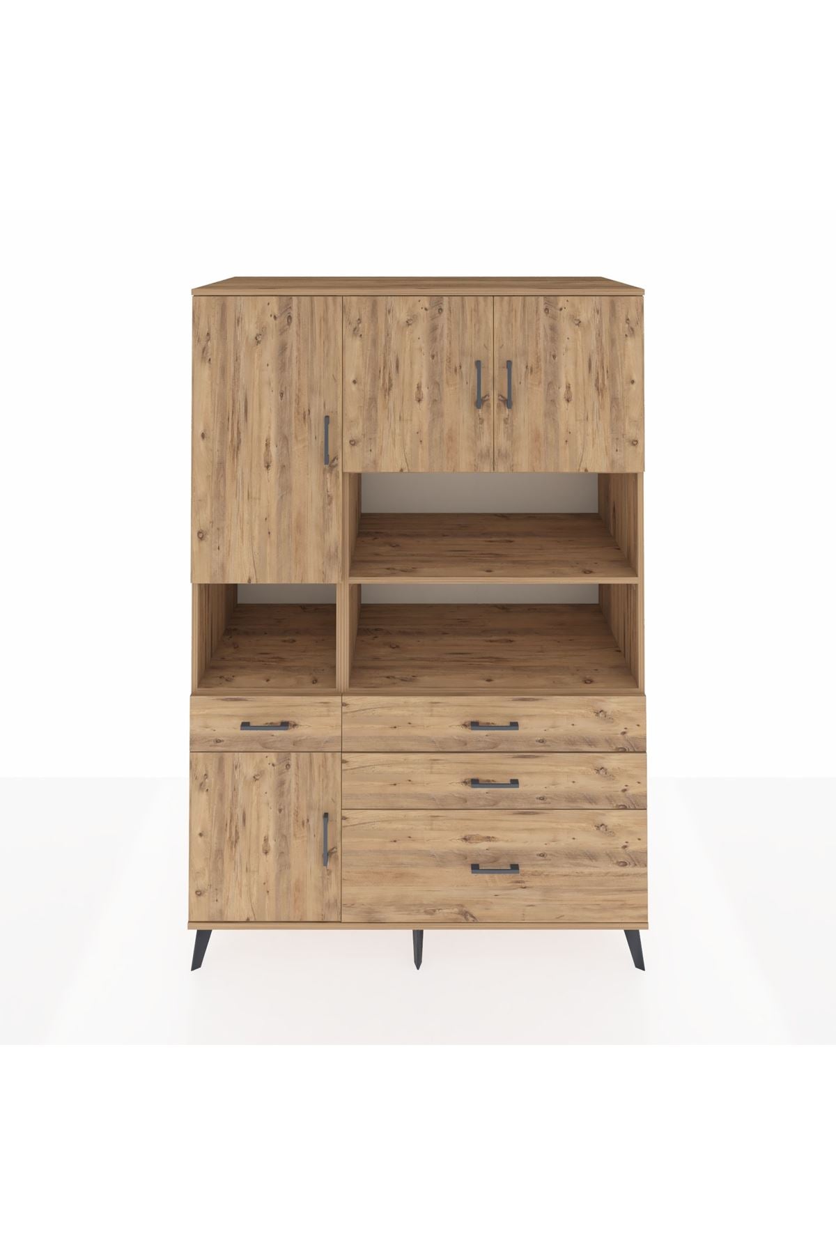 Kronos Dolap 9 Raflı 4 Çekmeceli 4 Kapaklı 132x59x195 Çam-Çam/Çam