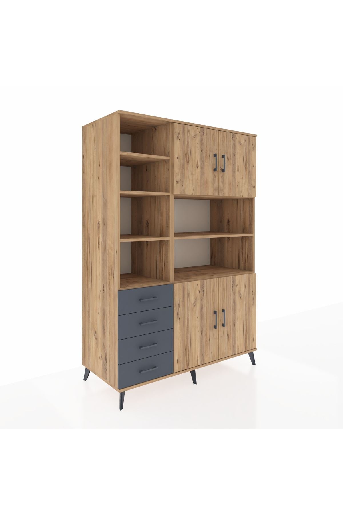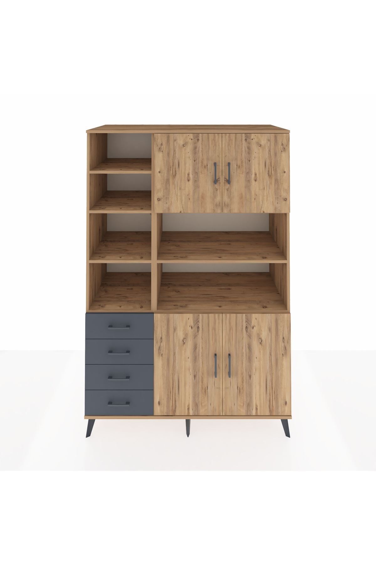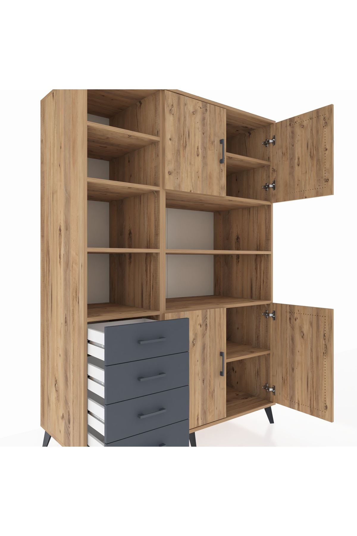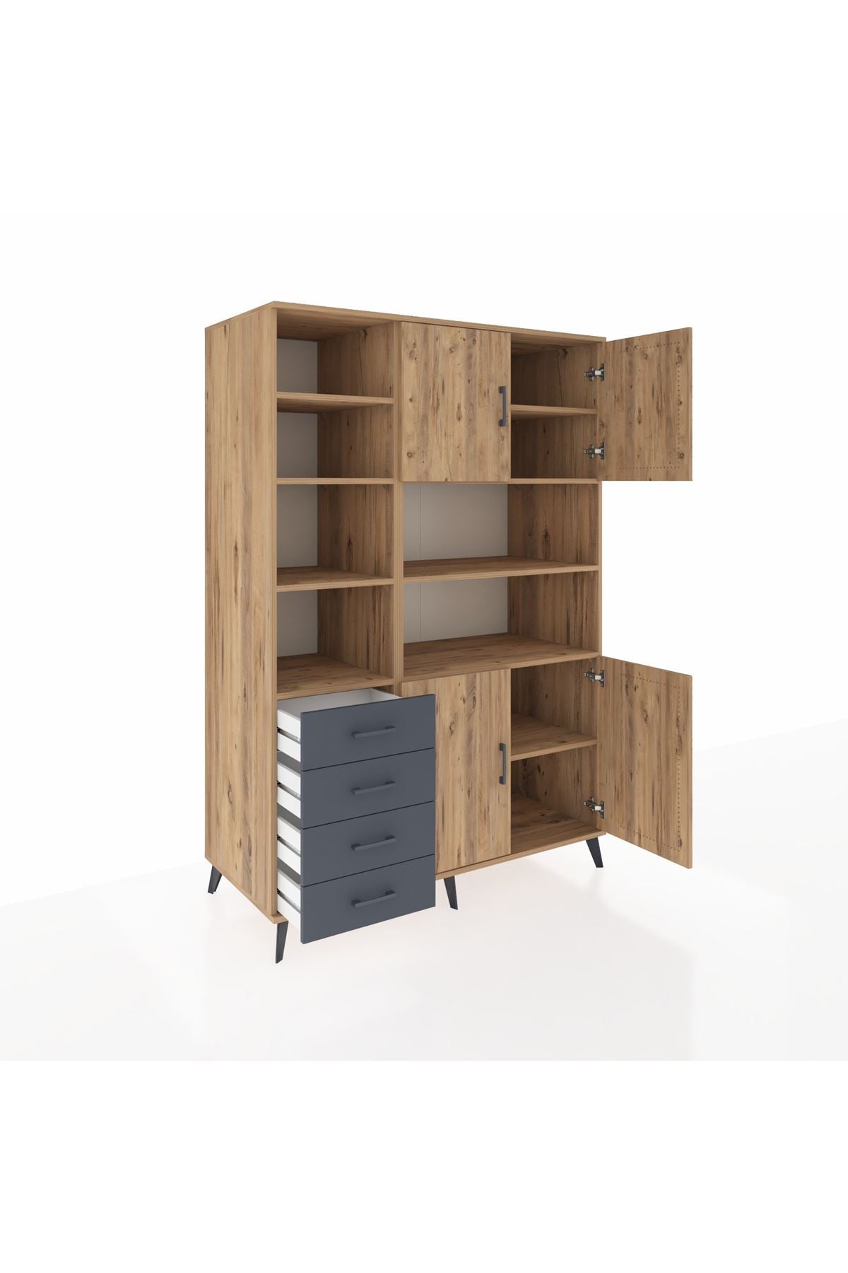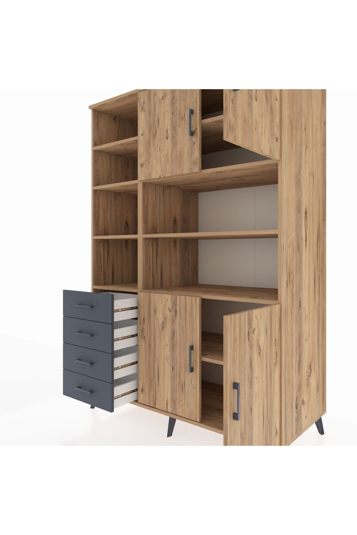 Kronos Dolap 9 Raflı 4 Çekmeceli 4 Kapaklı 132x59x195 Çam-Çam/Antrasit