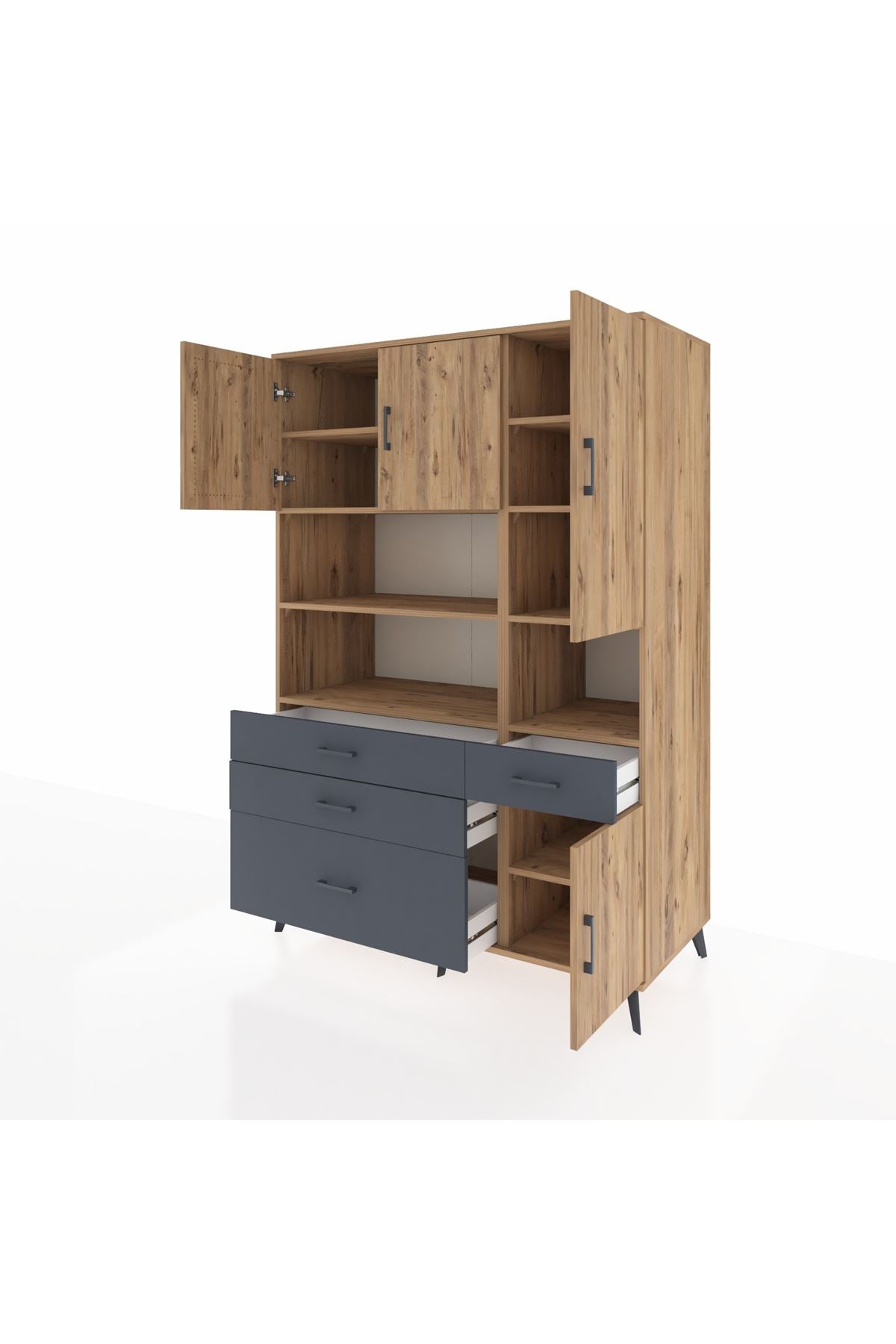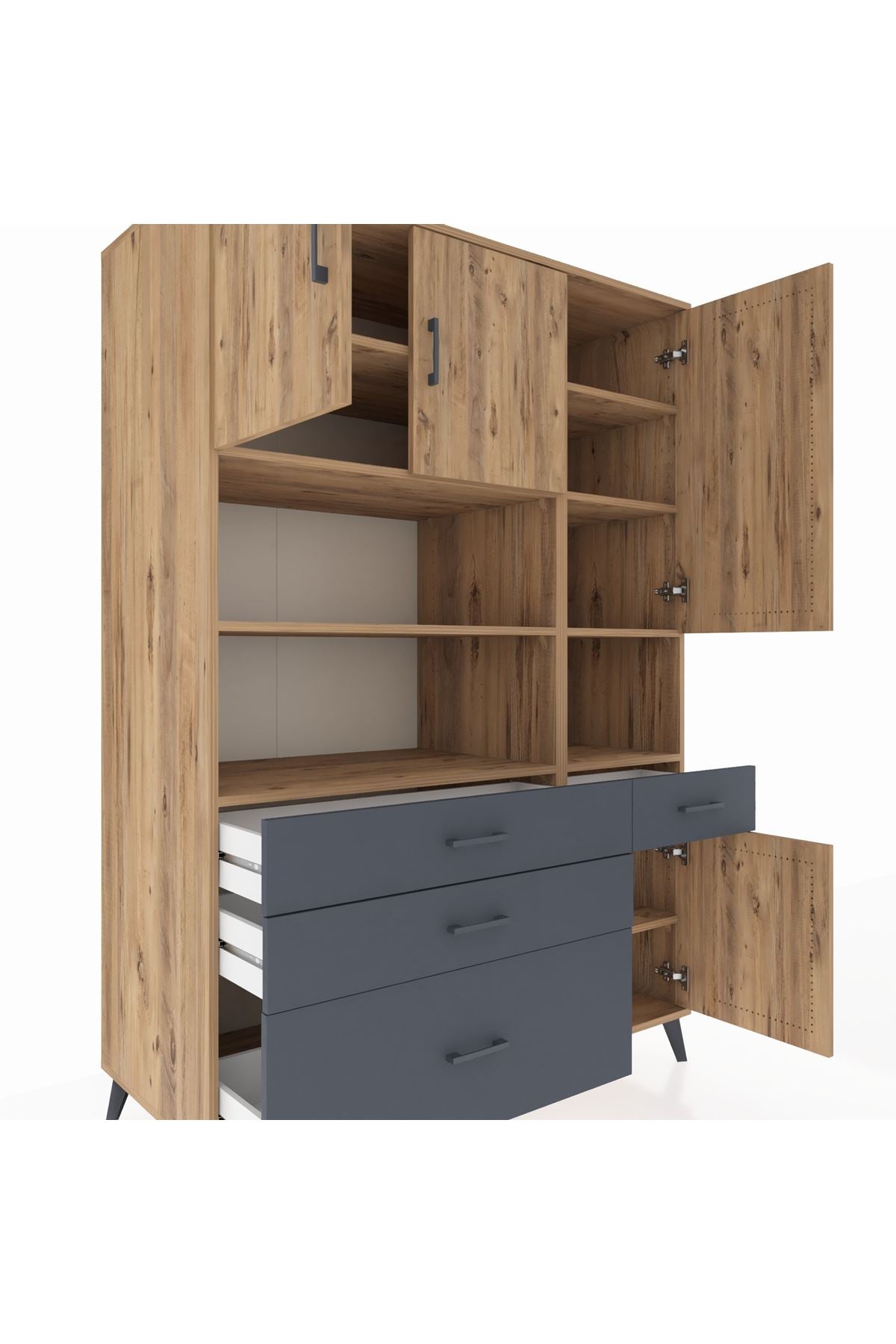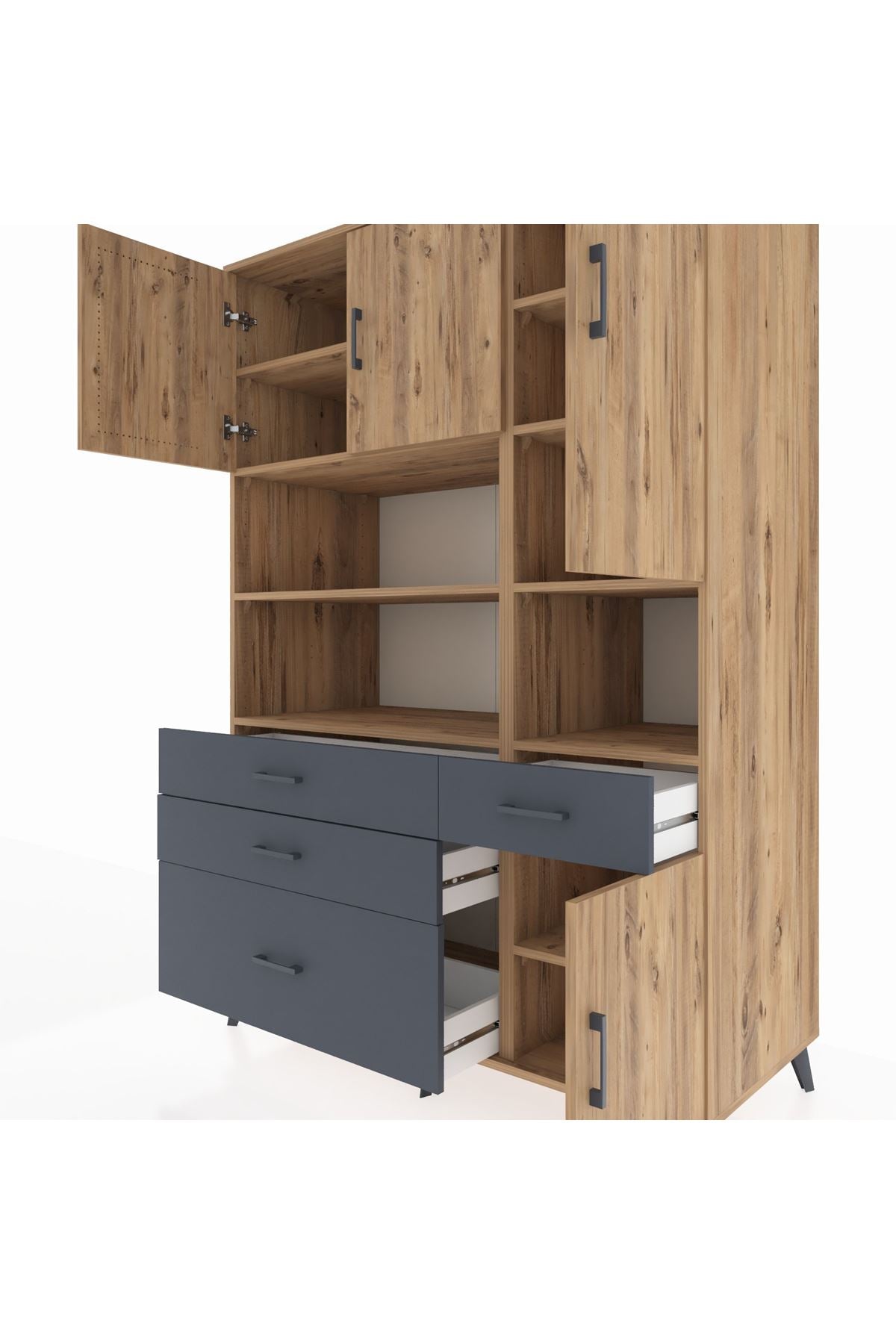 Kronos Dolap 9 Raflı 4 Çekmeceli 4 Kapaklı 132x59x195 Çam-Çam/Antrasit