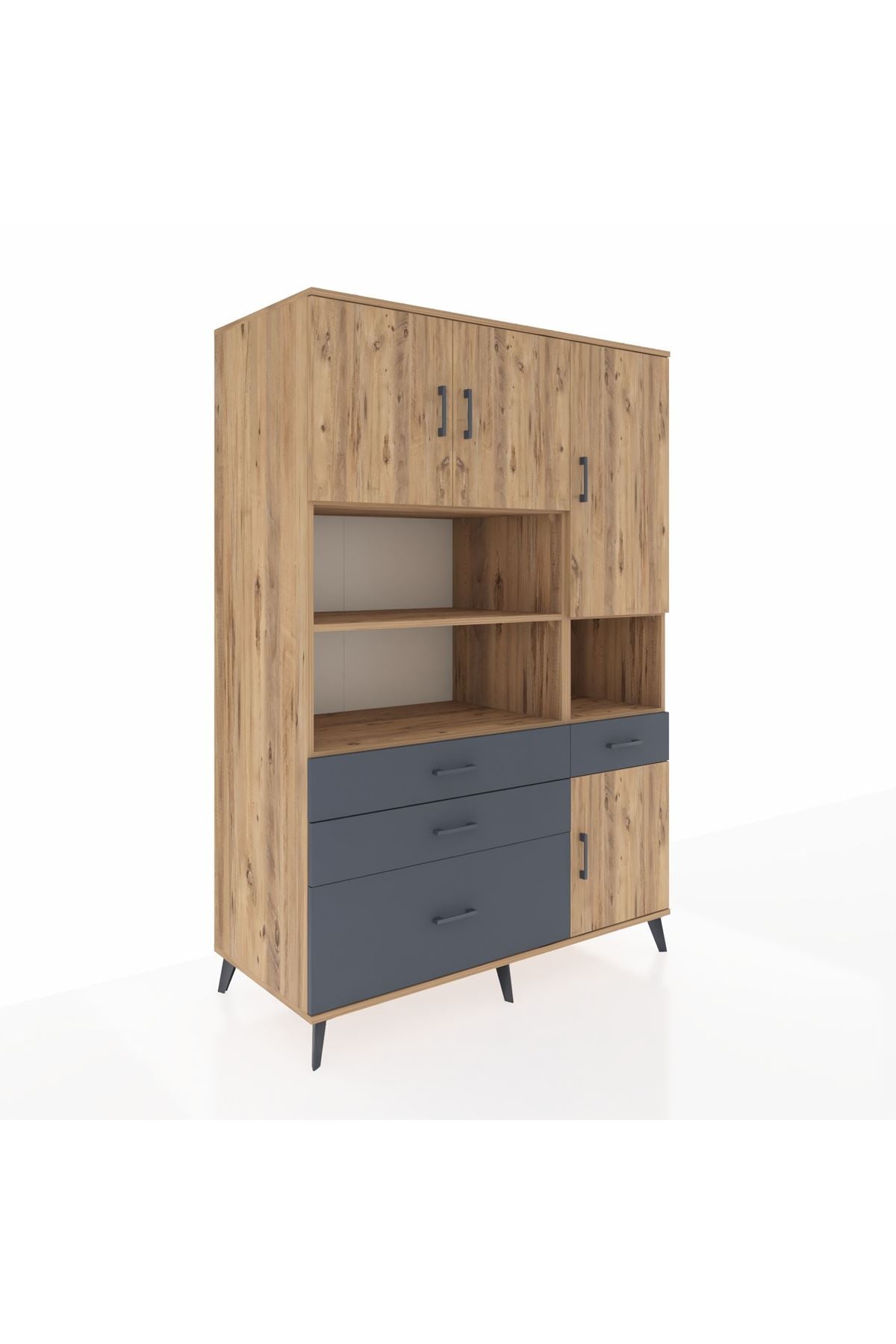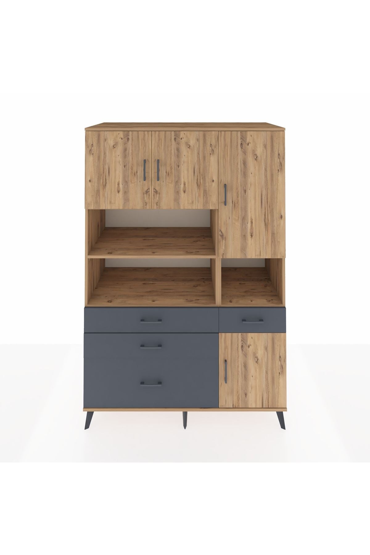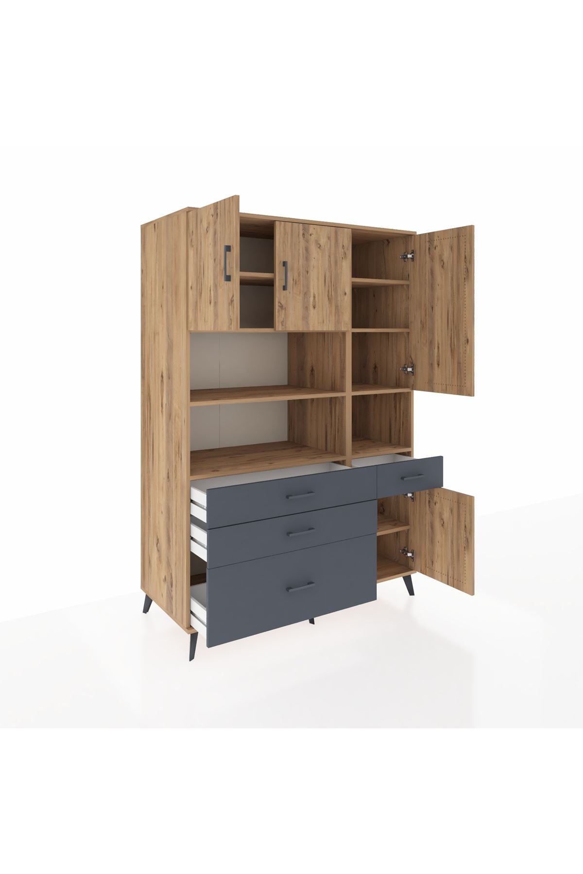 Kronos Dolap 9 Raflı 4 Çekmeceli 4 Kapaklı 132x59x195 Çam-Çam/Antrasit