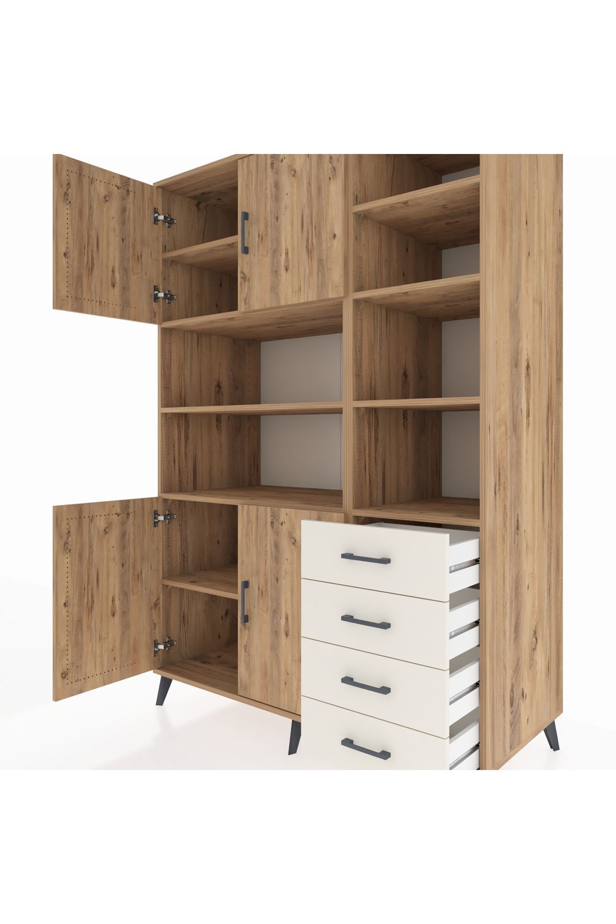 Kronos Dolap 9 Raflı 4 Çekmeceli 4 Kapaklı 132x59x195 Çam-Çam/Aytaşı